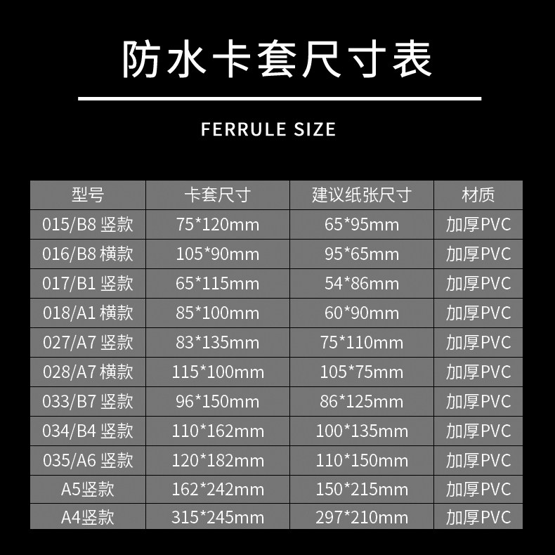 颜色分类 017卡套,018卡套,015卡套,016卡套,027卡套,028卡套,033卡套,033横款卡套,034卡套,034横款卡套,035卡套,035横款卡套,B6卡套,B6横款卡套,A5卡套横款,A5卡套竖款,A4卡套横款,A4卡套竖款,铁夹,塑料夹,直升扣1cm宽,普通一体扣1cm宽,普通一体扣1.5cm宽,加厚一体扣加厚1.5cm宽,普通优和扣1.5cm宽,加厚优和扣1.5cm宽,蛋钩1cm宽,龙虾钩1.5cm宽,通用内芯