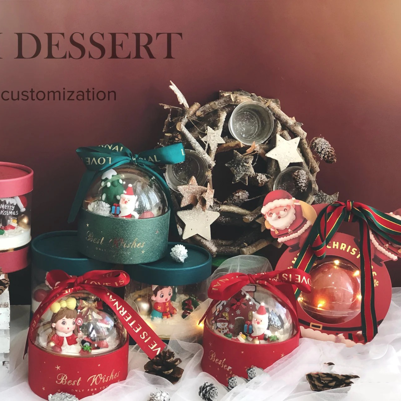 Christmas Mousse Ball Cake Decoration Portable Transparent Packaging Box Baking Christmas Eve Gift Crystal Ball Hug Bucket