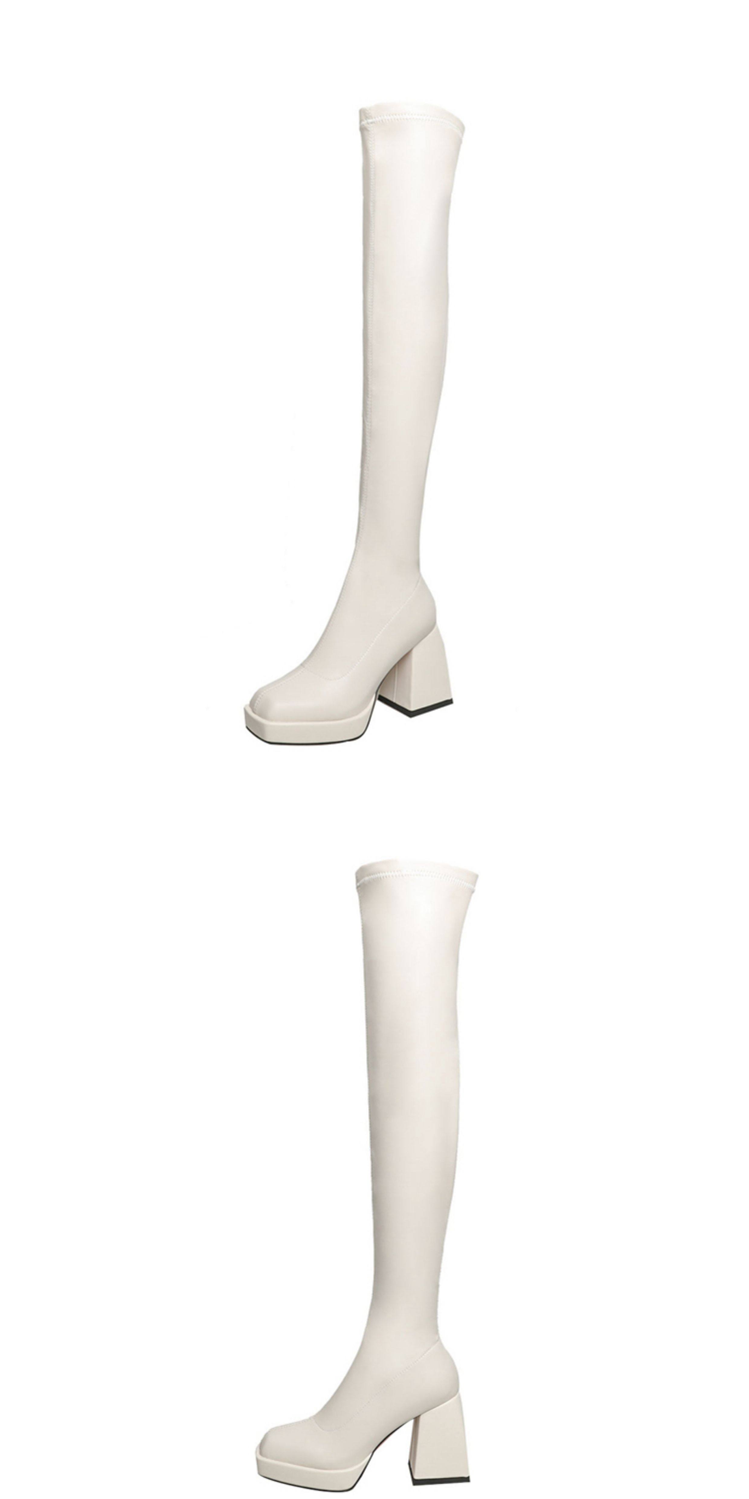 HOTSPOT~弹力靴过膝长靴女防水台厚底瘦瘦靴高跟皮靴高筒骑士靴女