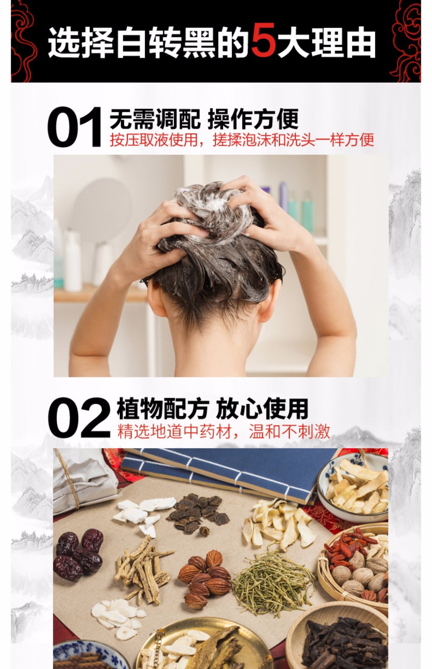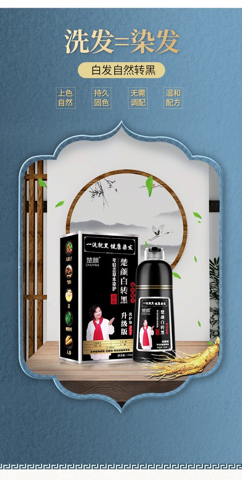 白转黑一洗黑染发剂植物天然无刺激遮白发正品品牌自己在家染发膏