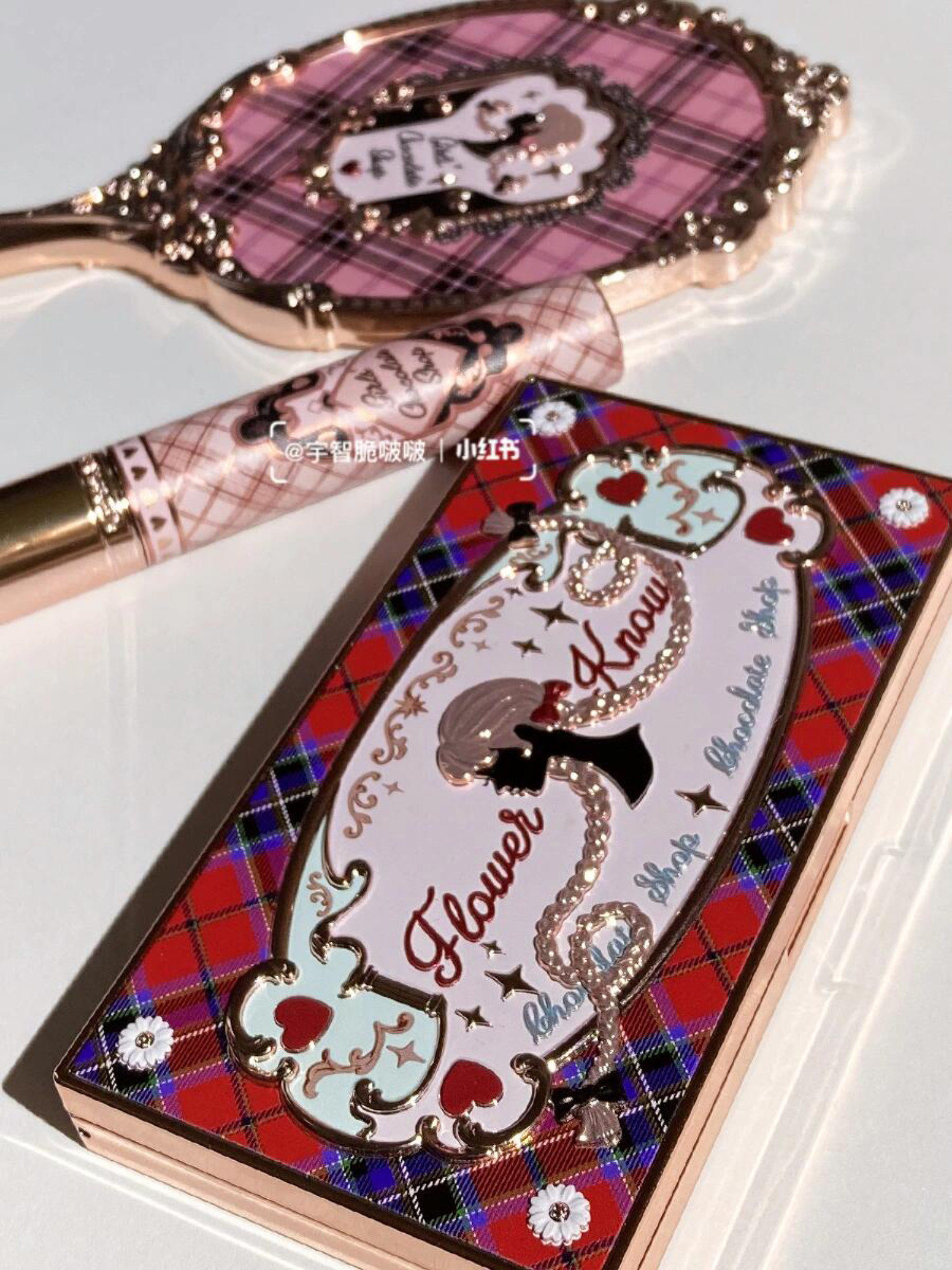 Flower Knows Chocolate Shop Eyeshadow Palette, Eight Earth Tones for Everyday Light Makeup, Nutcracker Highlighter and Contouring All-In-One