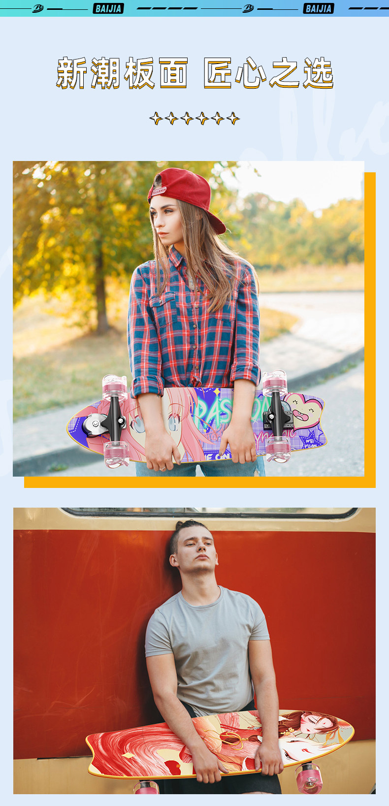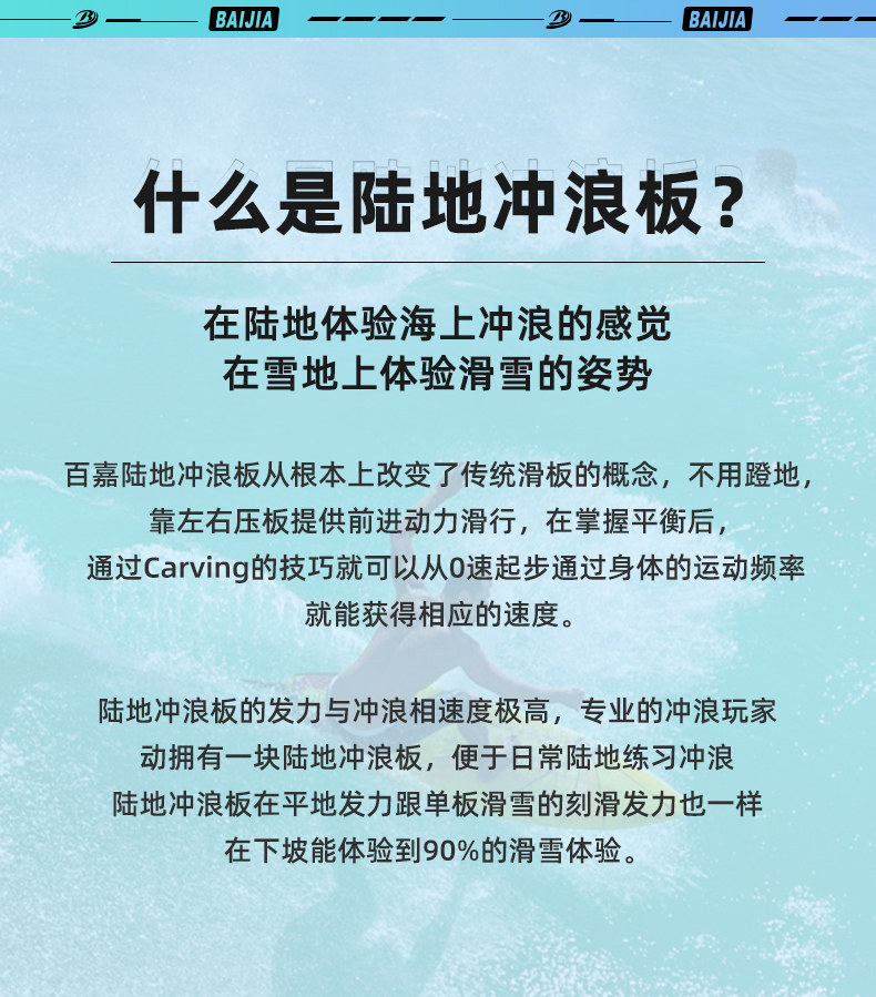 百嘉陆地冲浪板滑雪代步路冲板yow大鱼板滑板女slide专业板陆冲板