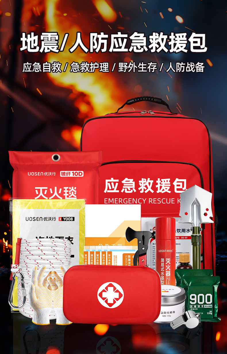 Household Earthquake Emergency Rescue Kit, Civil Defense and War Preparedness Supplies, Family Emergency Escape and Disaster Prevention Survival Kit, Complete Set