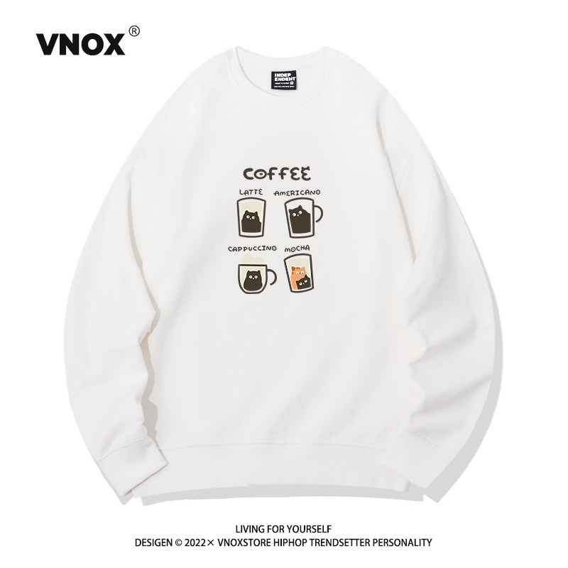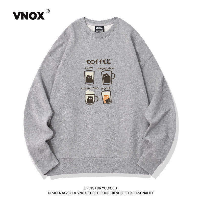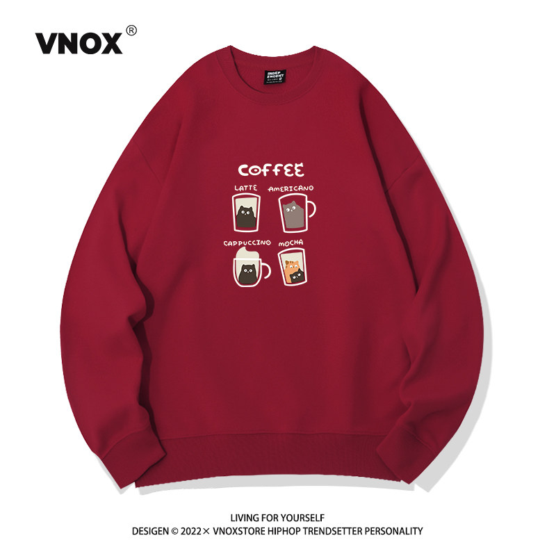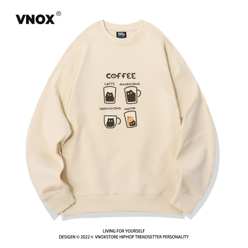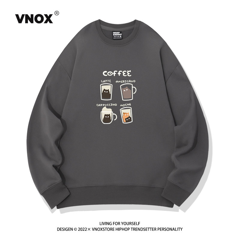 Hong Kong trendiges Marken-Sweatshirt mit Rundhalsausschnitt für Herren, samtverdicktes Kaffee-Print-Nischenhemd aus amerikanischer reiner Baumwolle mit lockerem Paar-Bottom-Shirt