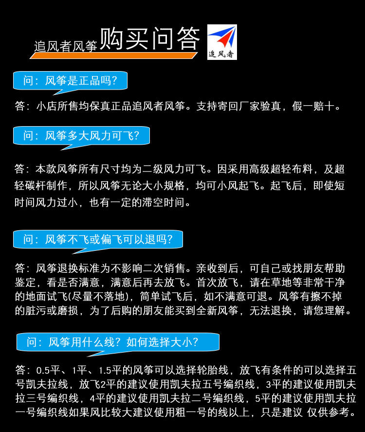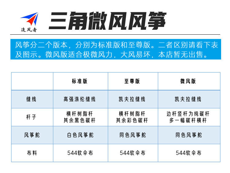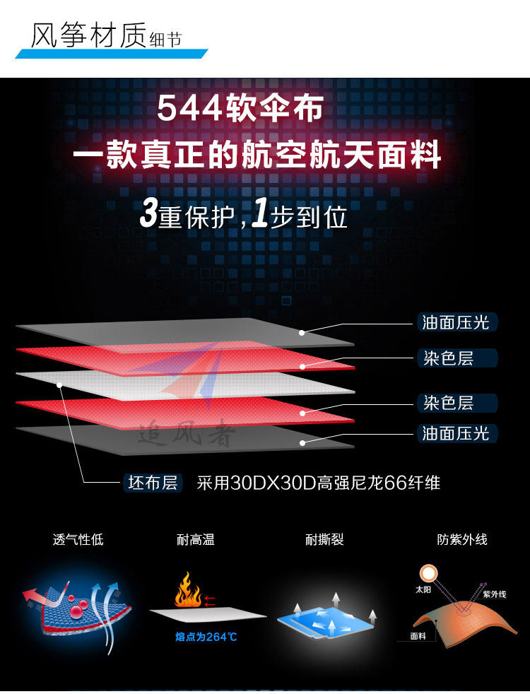 追风者风筝544软伞布降落伞布微风风筝三角风筝筝易飞专业不变形