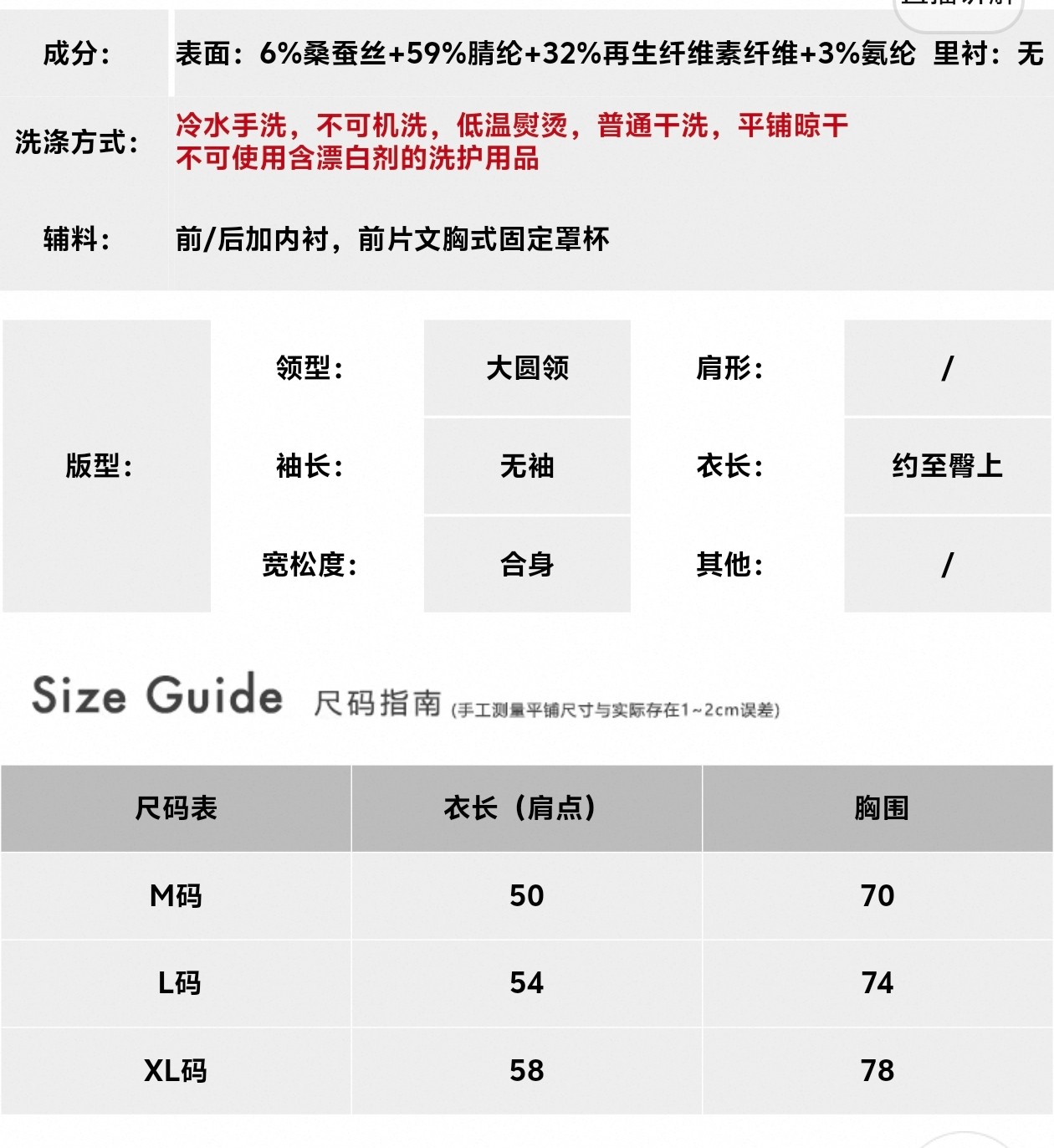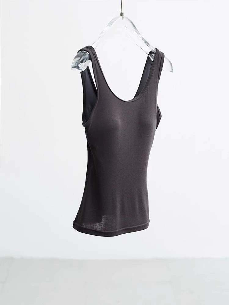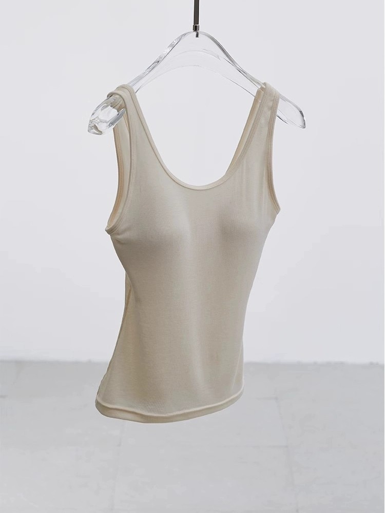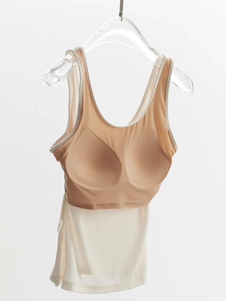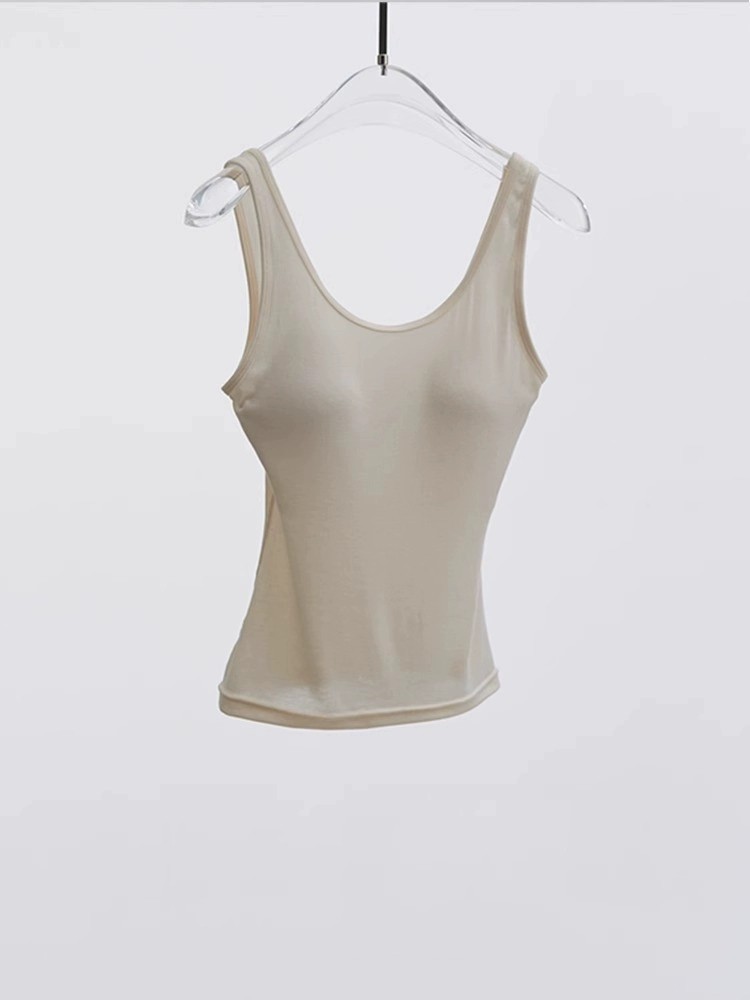 茉莉 桑蚕丝神仙好货胸垫一体显瘦无痕抗皱美背裸感背心T恤