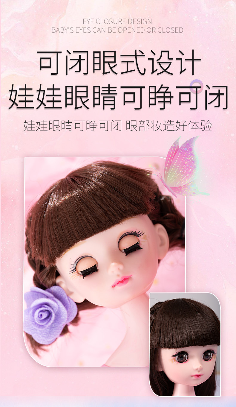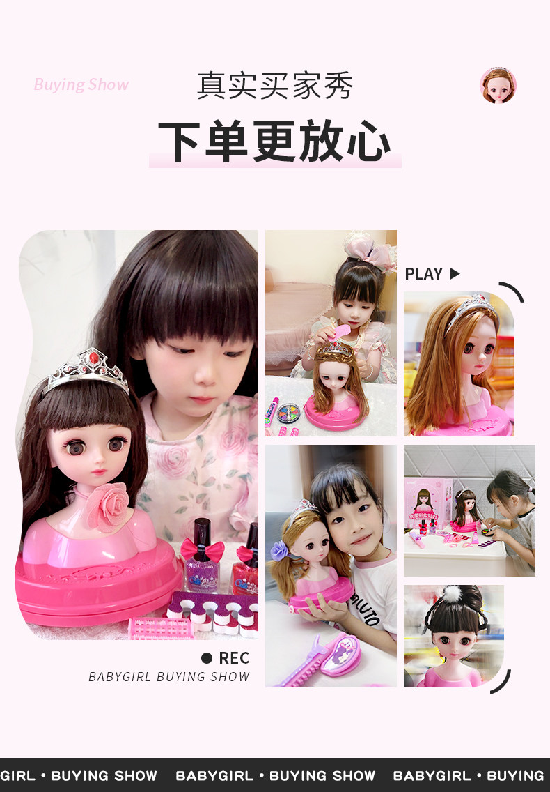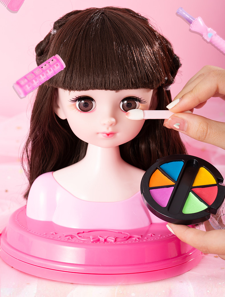 化妆娃娃可梳头发女孩玩具假美发公主长发练习扎辫子模型新年礼物