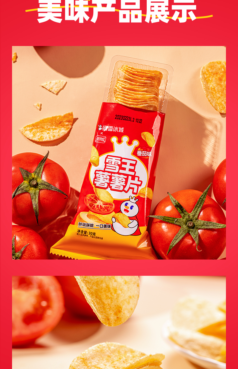 Snow King Magic Shop Snow King Potato Chips Tomato Flavor One Box of 72 Bags Ready-To-Eat Panpan Co-Branded Pocket Snacks
