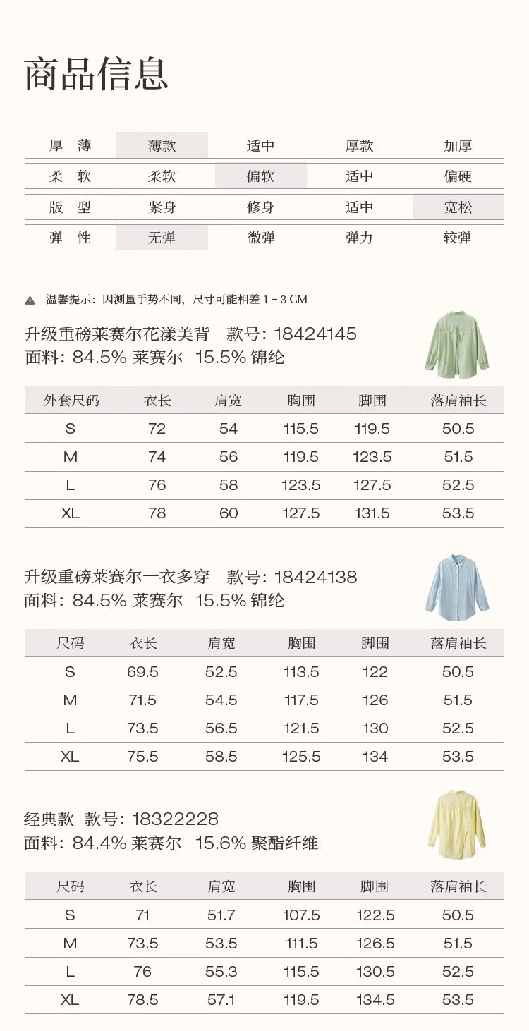 材质成分 莱赛尔纤维(莱赛尔)84.4% 聚酯纤维15.6%
