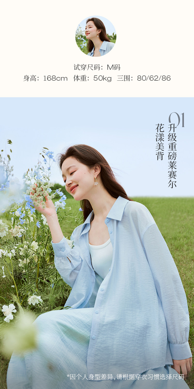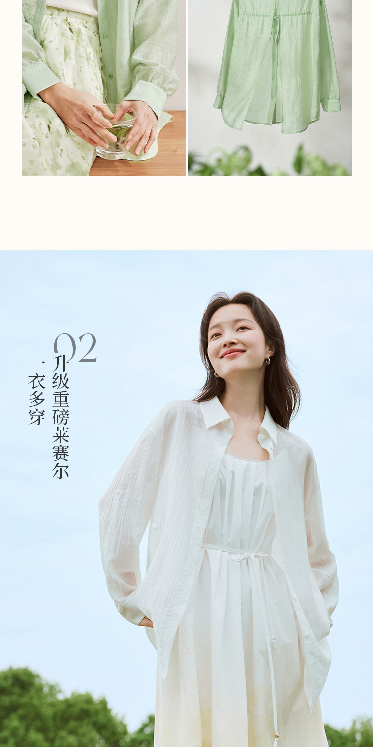 茵曼天丝外穿薄长袖衬衫外套女2025年秋季新款叠穿淡人穿搭衬衣