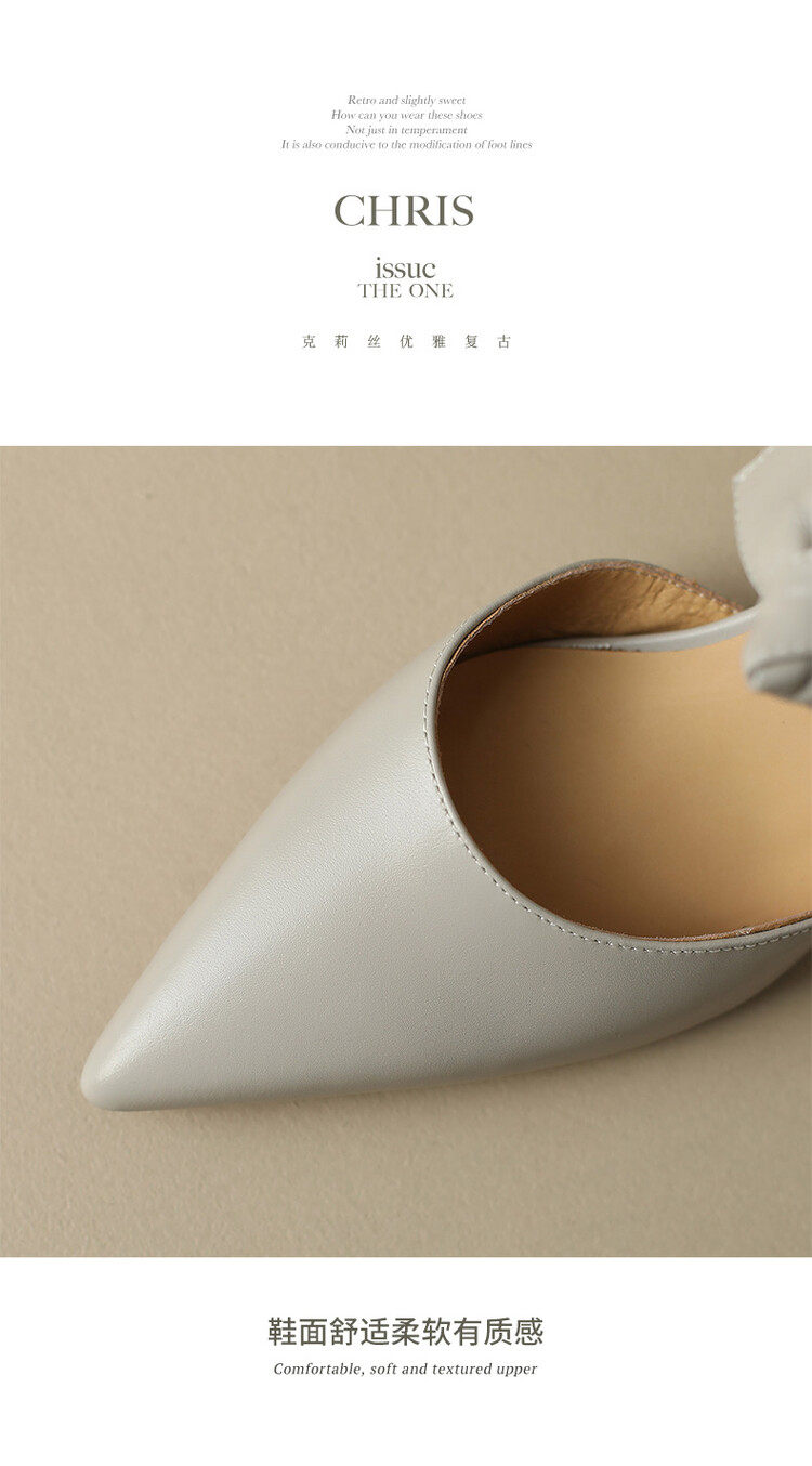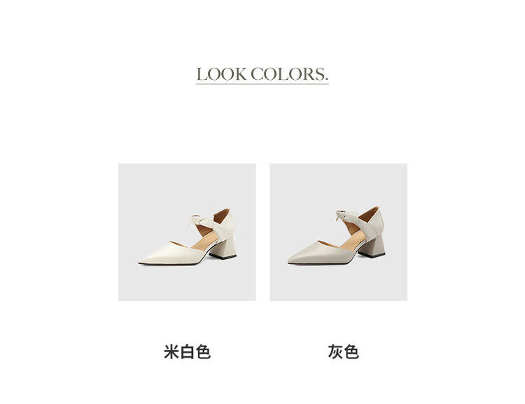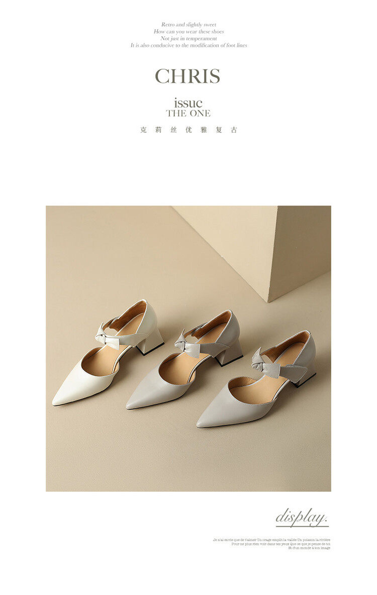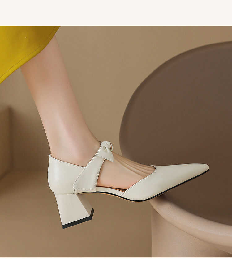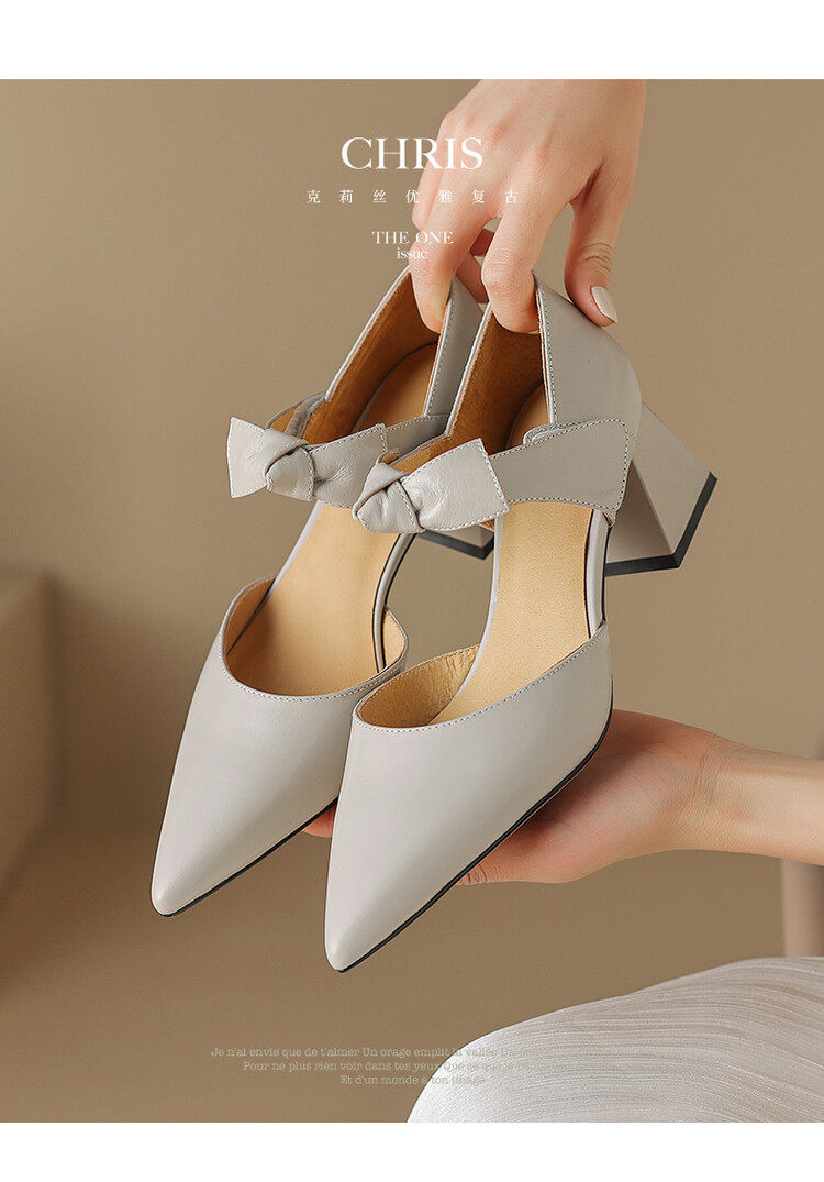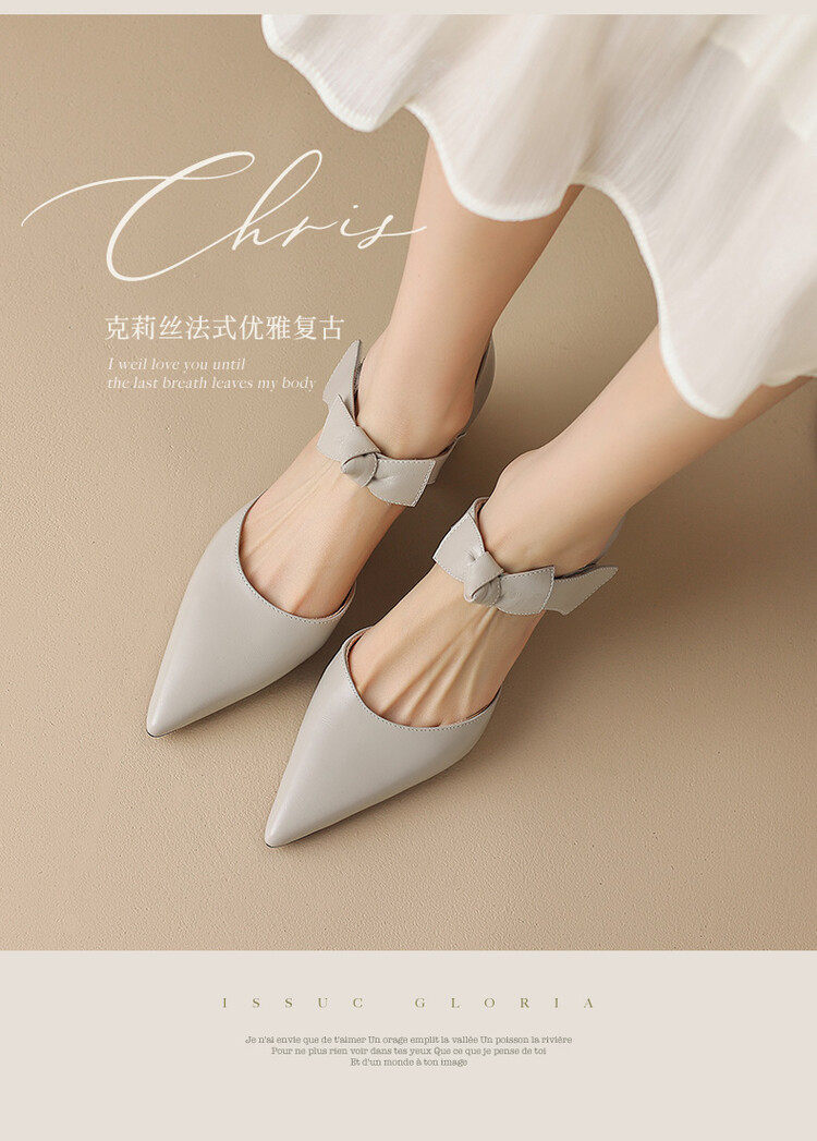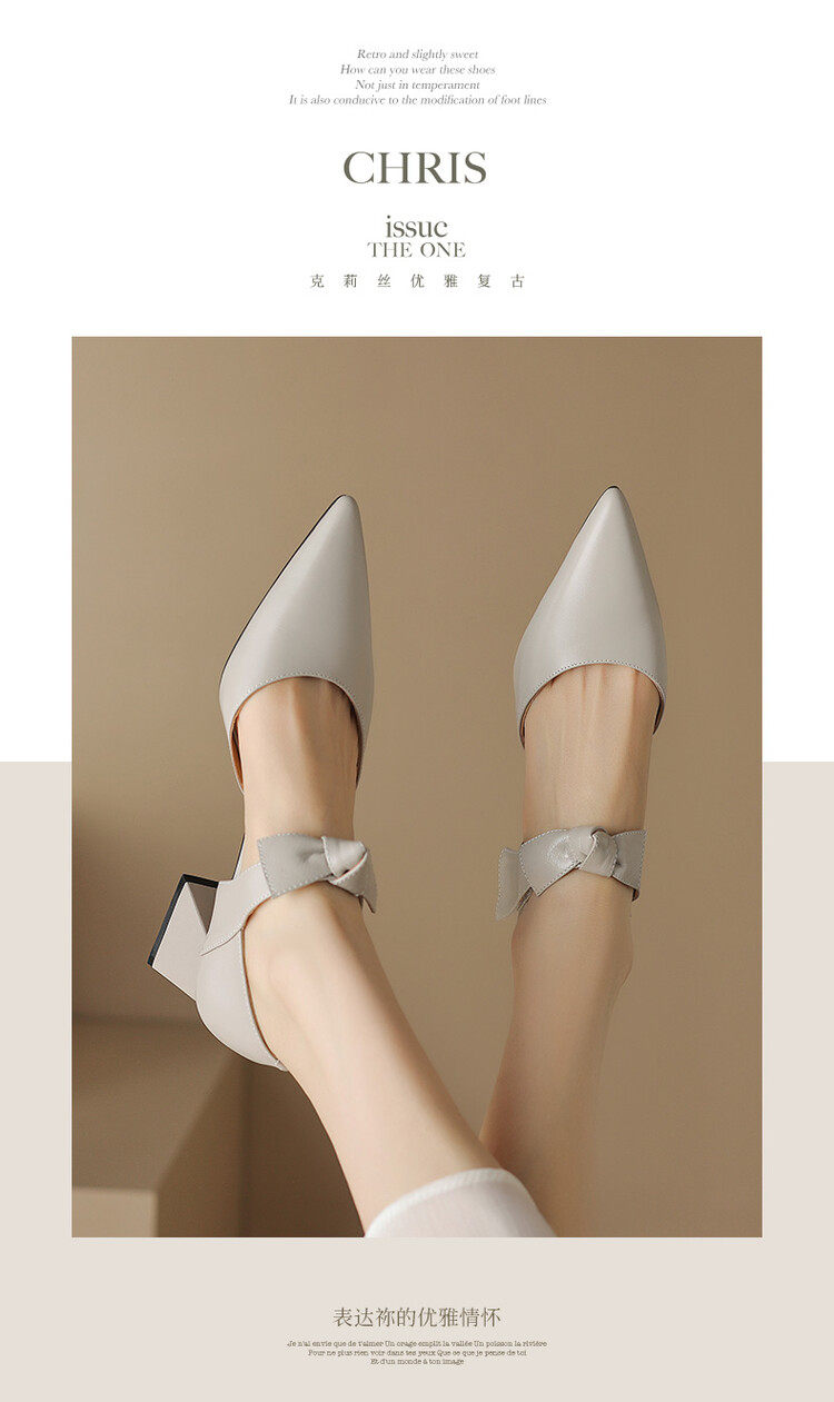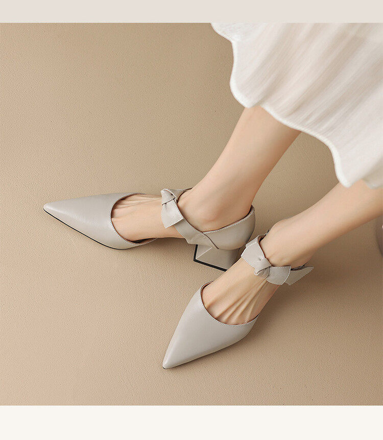 TATALORY versatile handmade one-length belt bow bag sandals for women thick heel pointed toe bag hollow single shoes for women