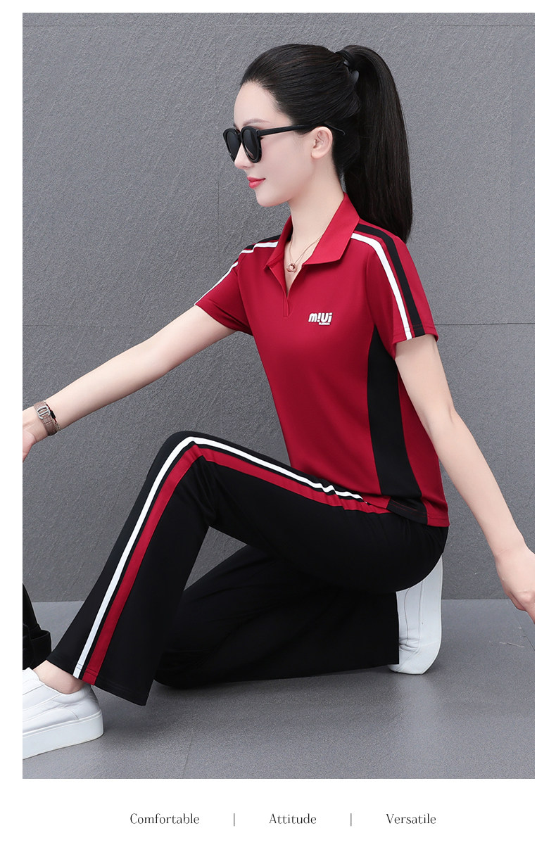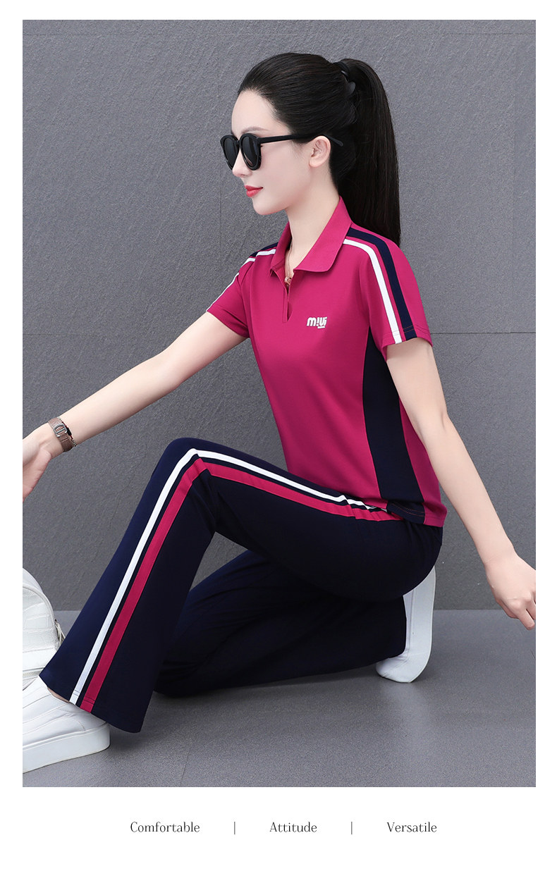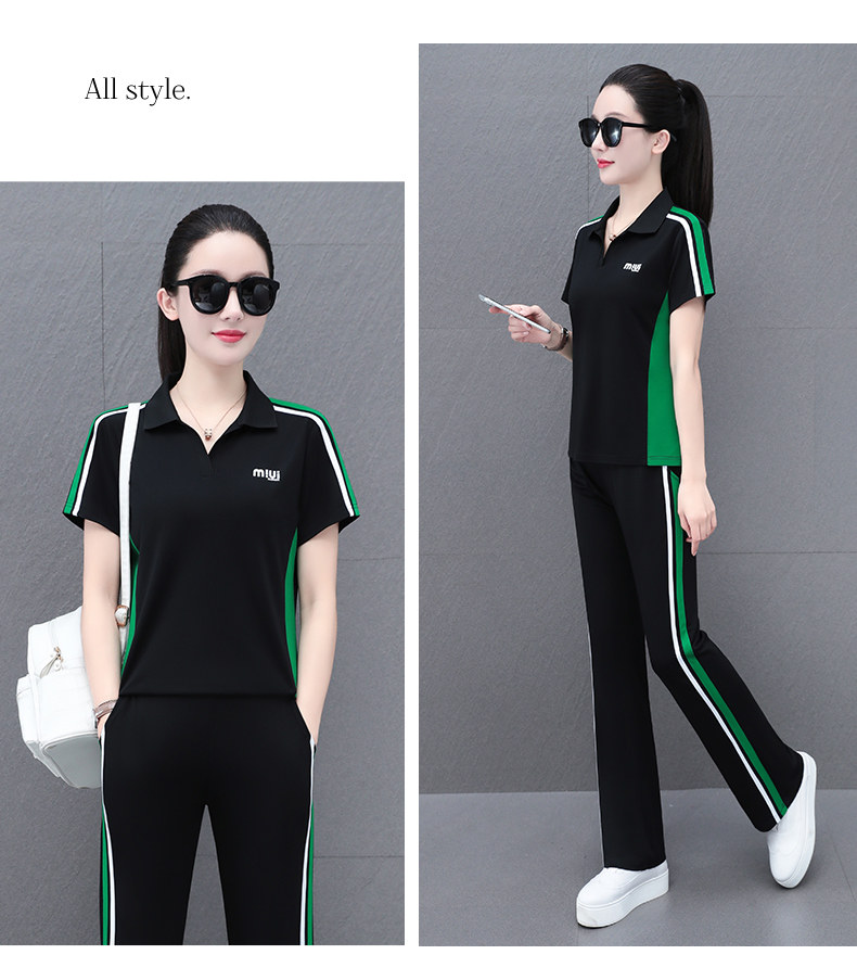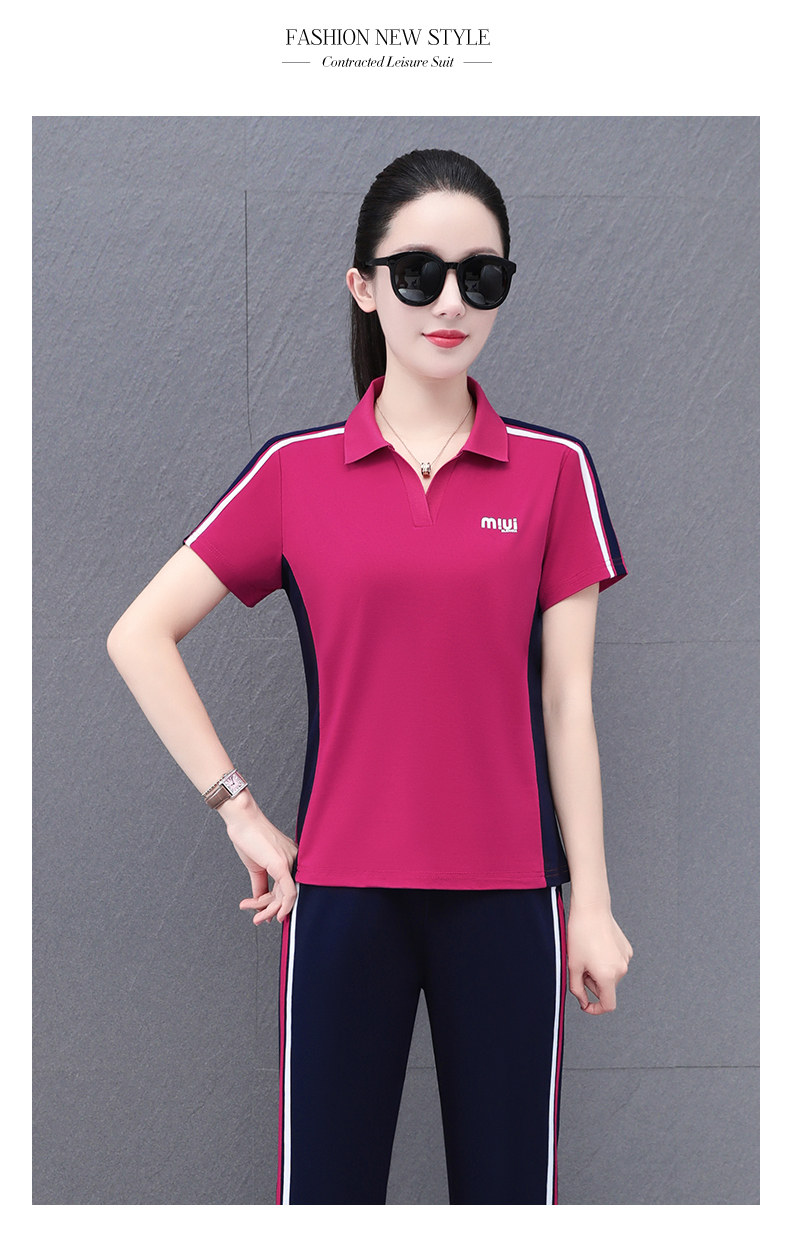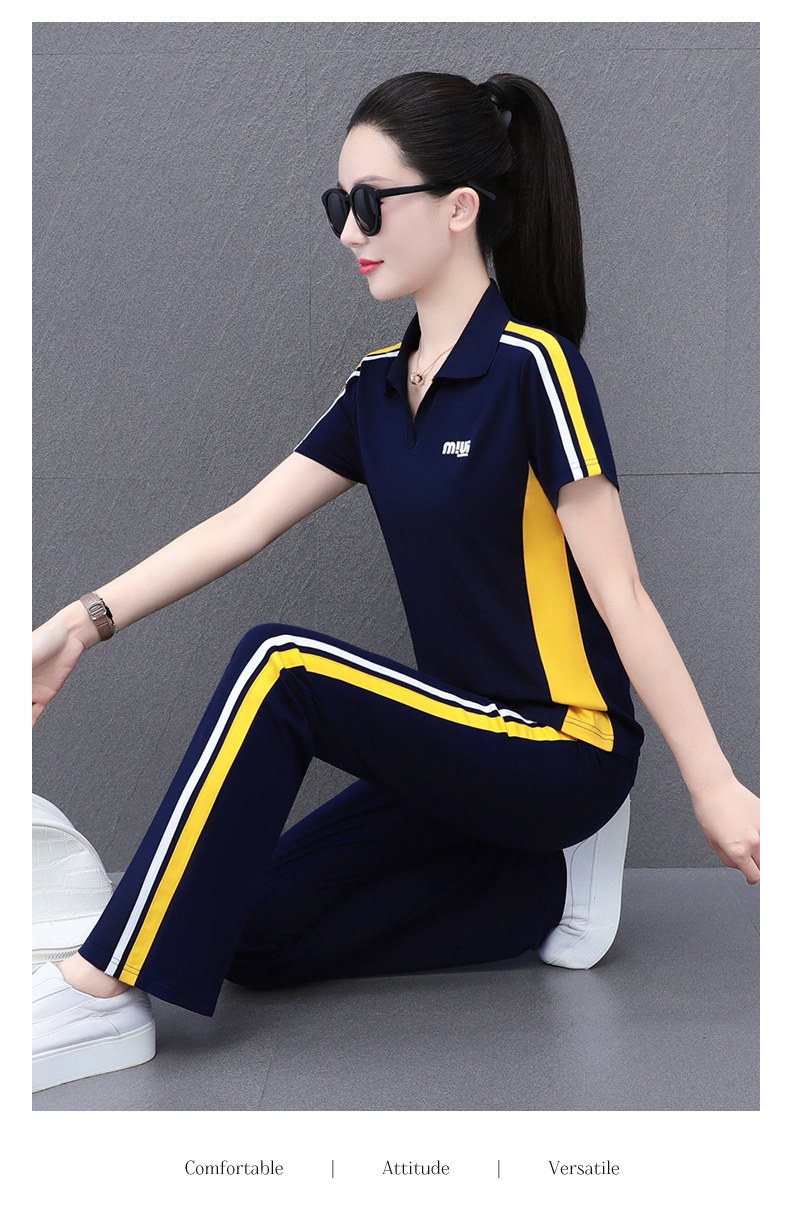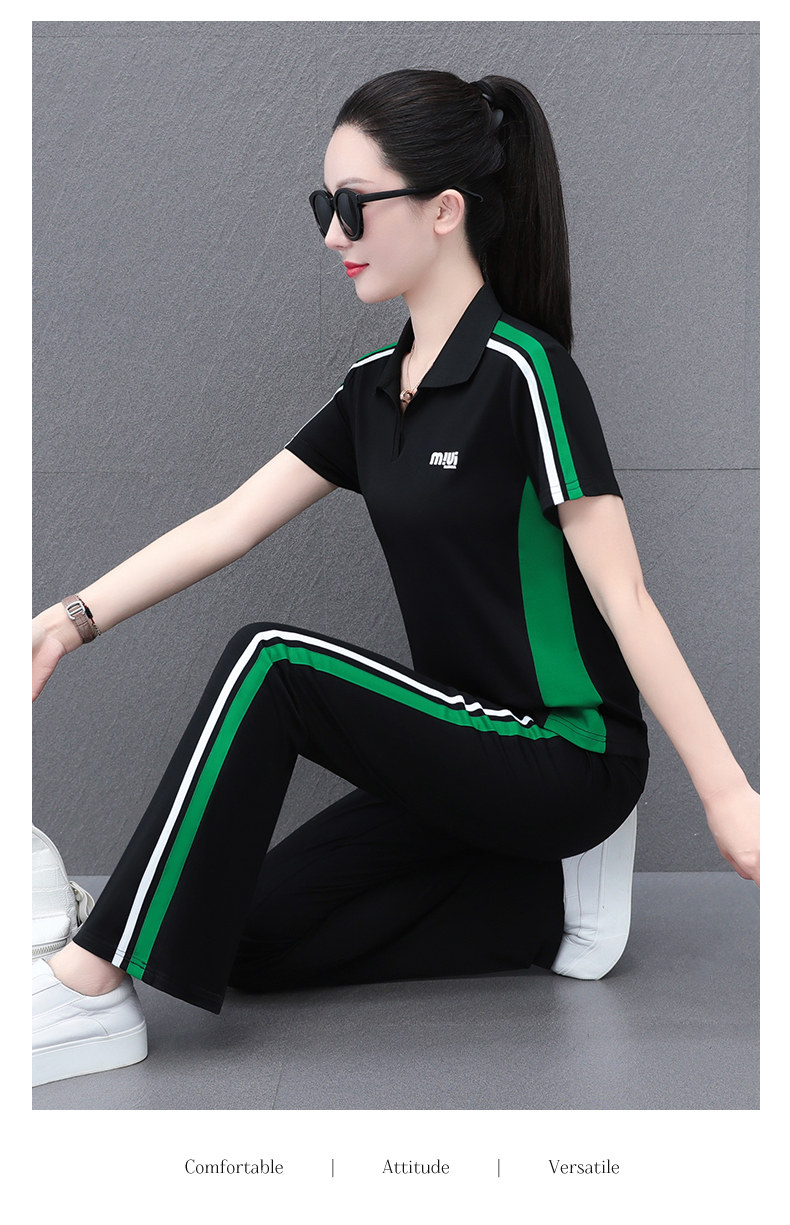 休闲运动服套装女夏季2025年新款洋气减龄显瘦冰丝短袖长裤两件套