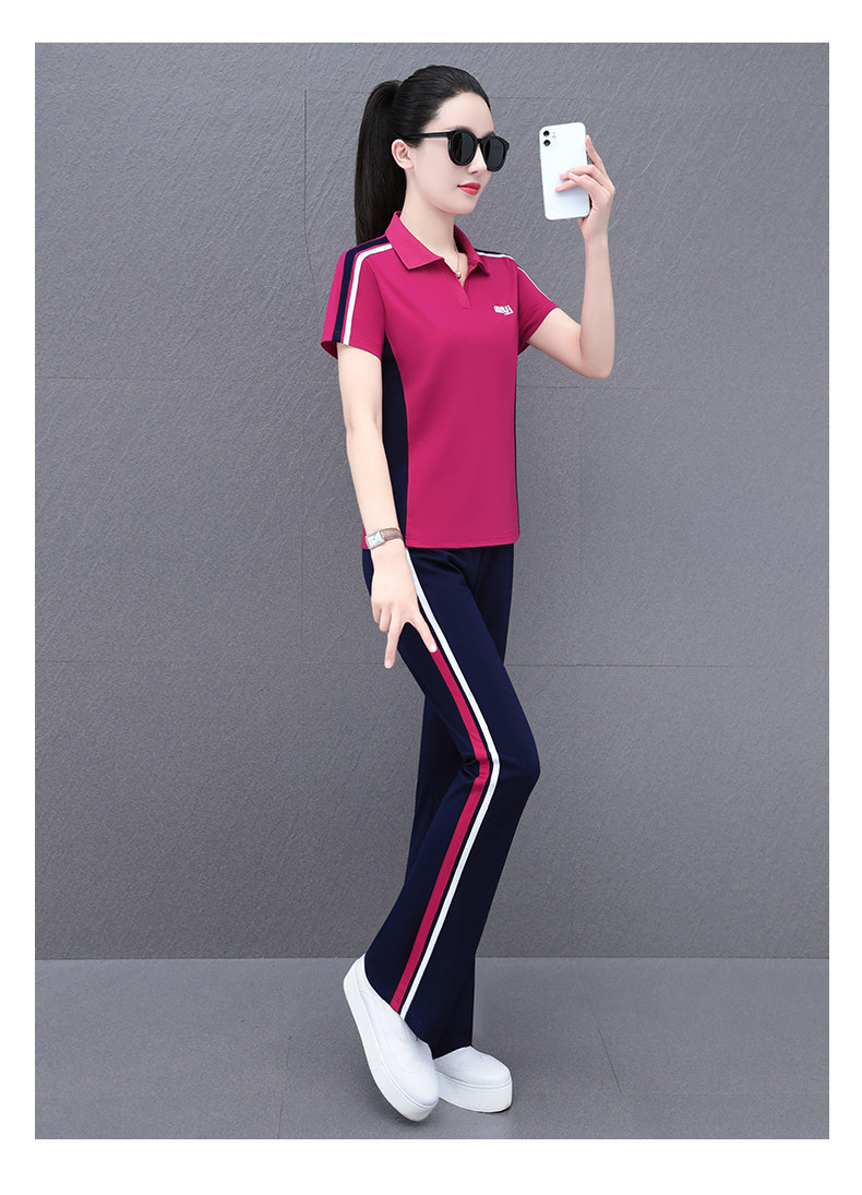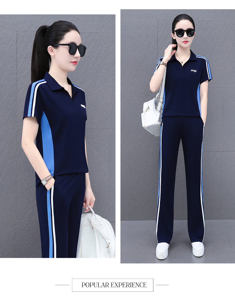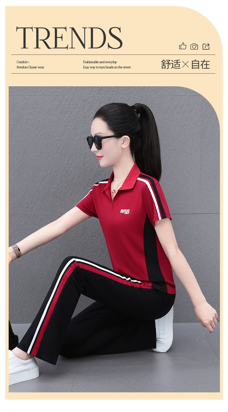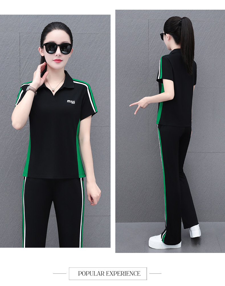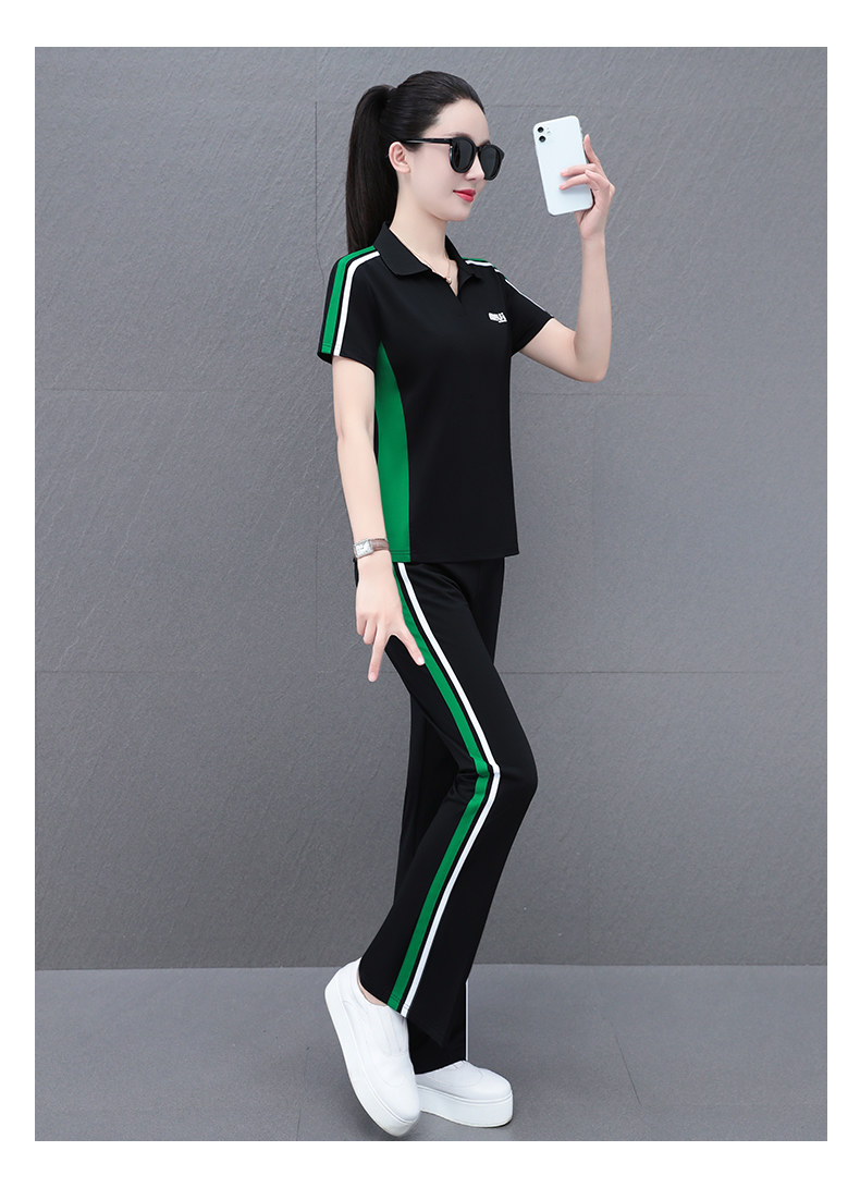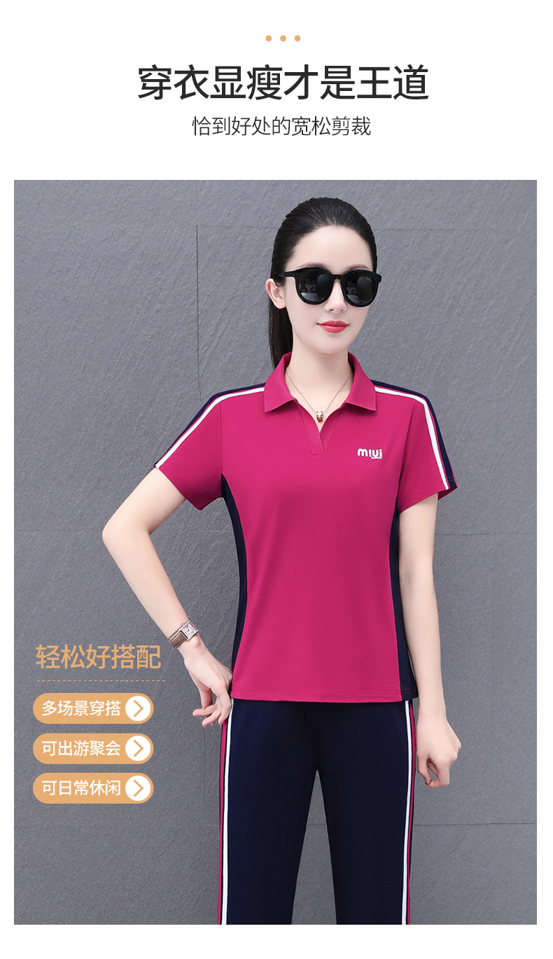 休闲运动服套装女夏季2025年新款洋气减龄显瘦冰丝短袖长裤两件套