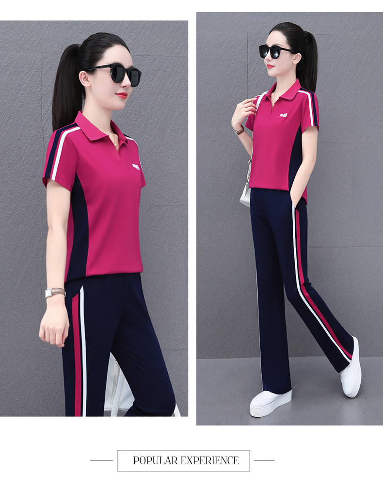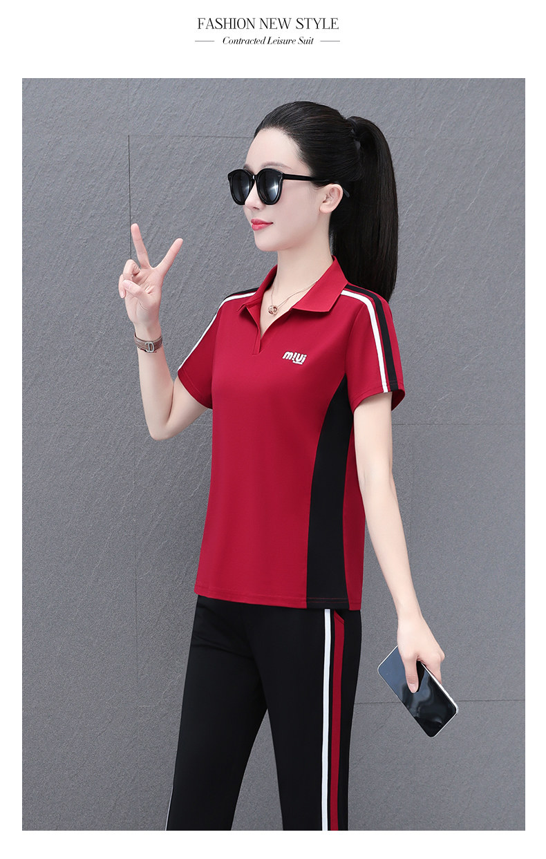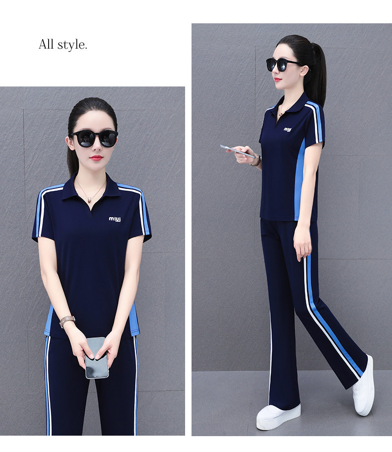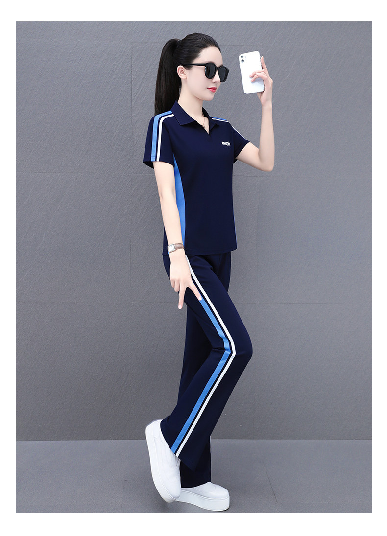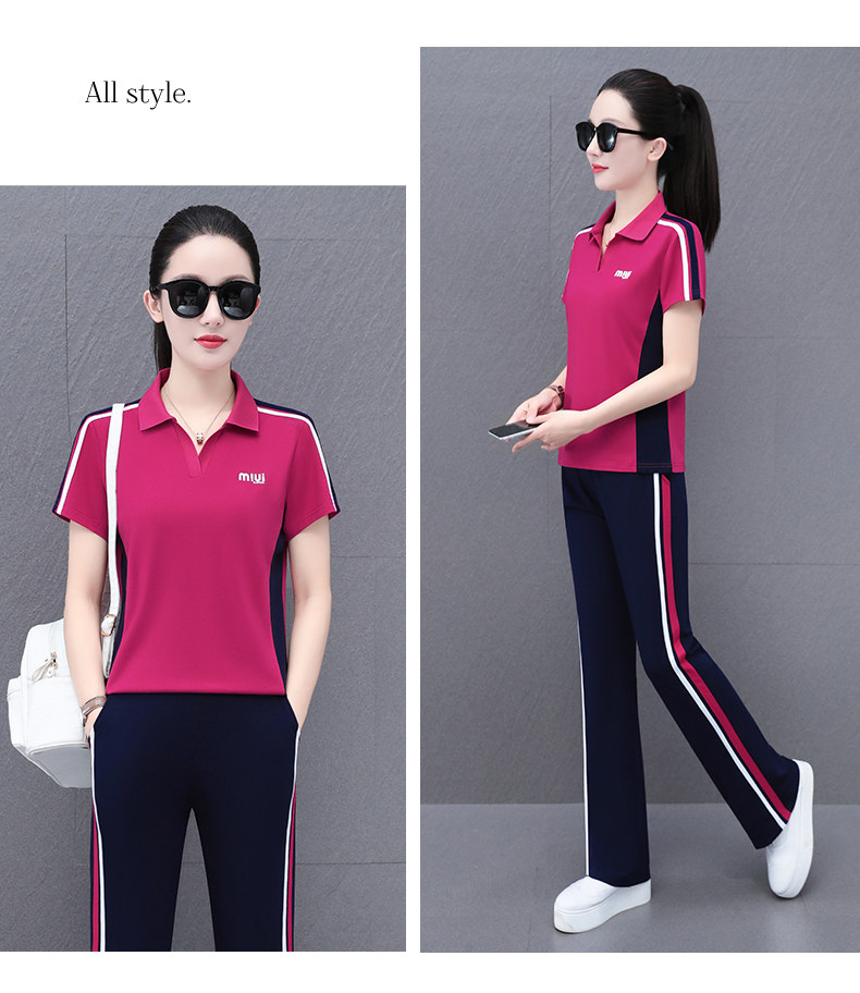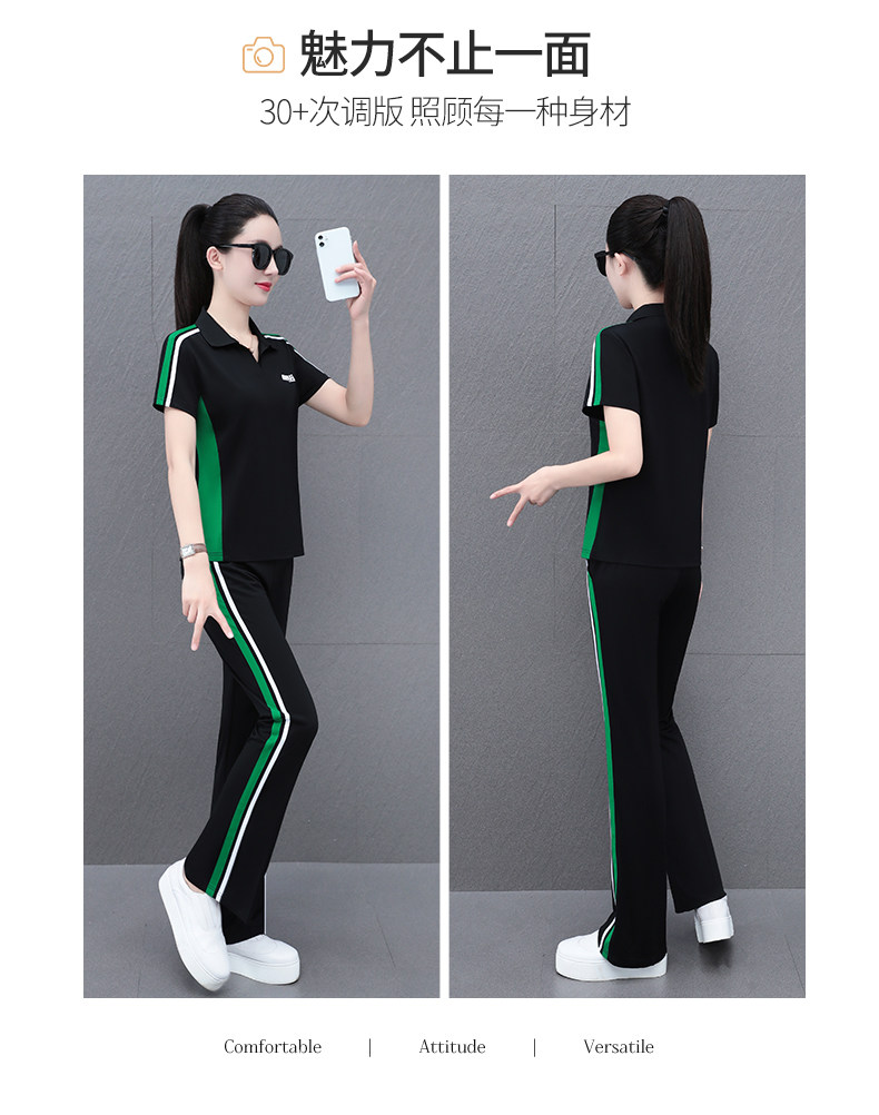 休闲运动服套装女夏季2025年新款洋气减龄显瘦冰丝短袖长裤两件套