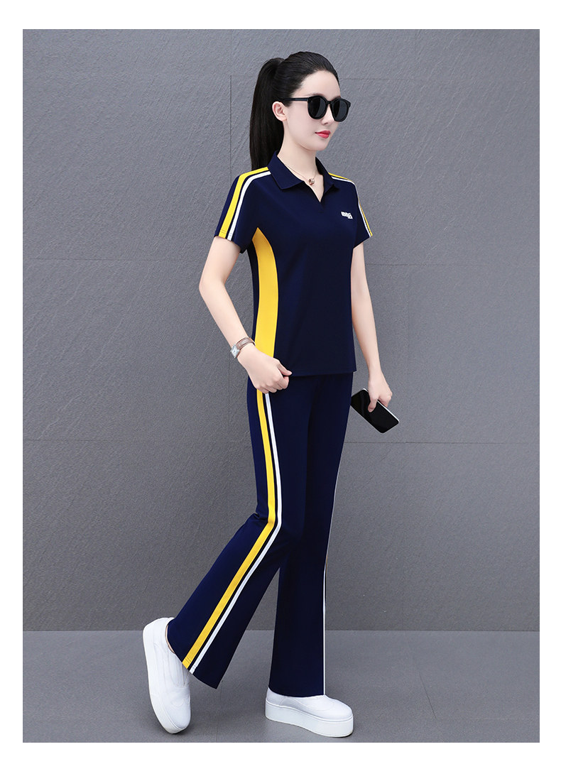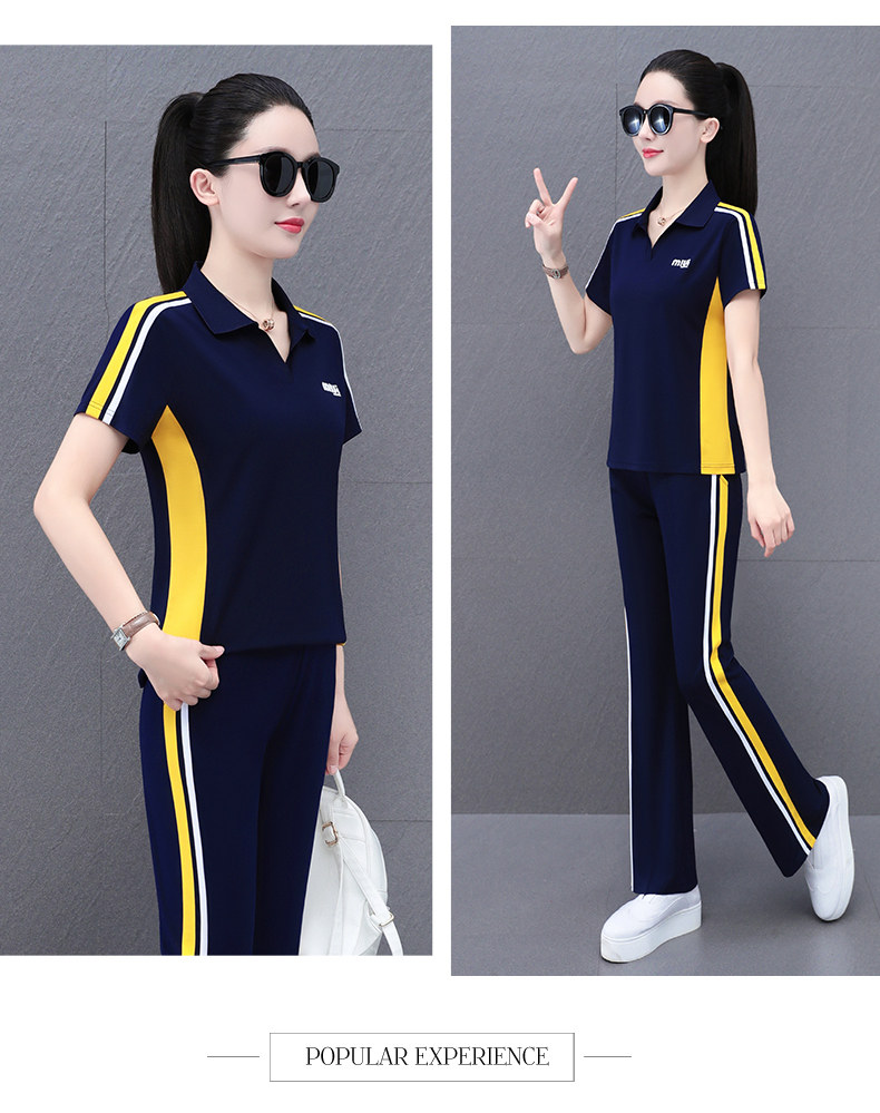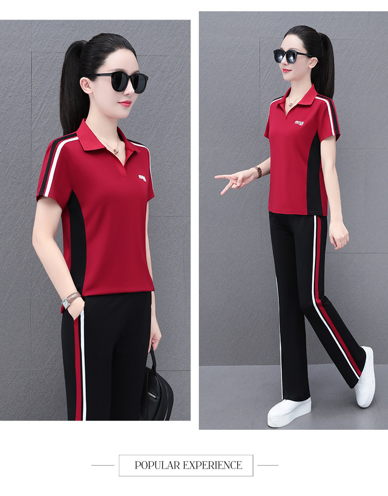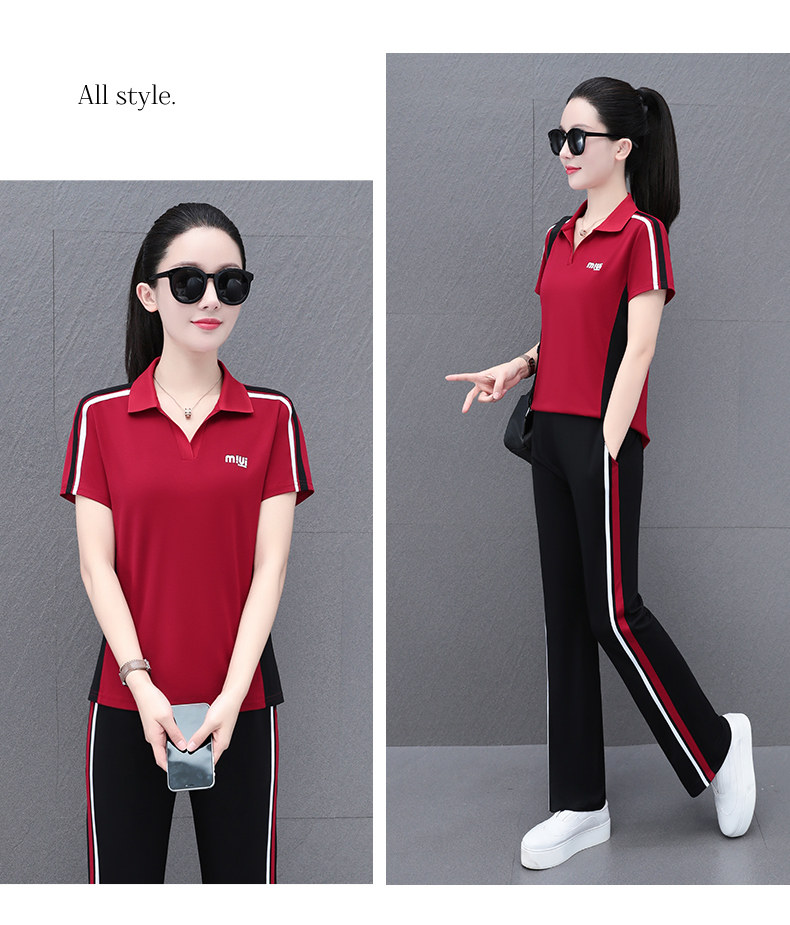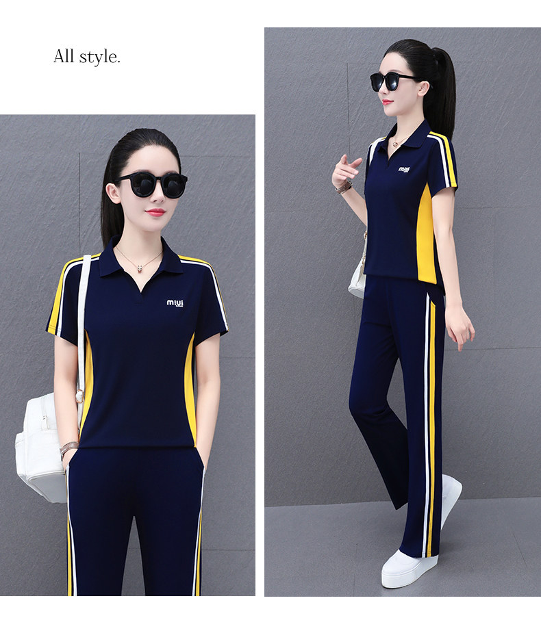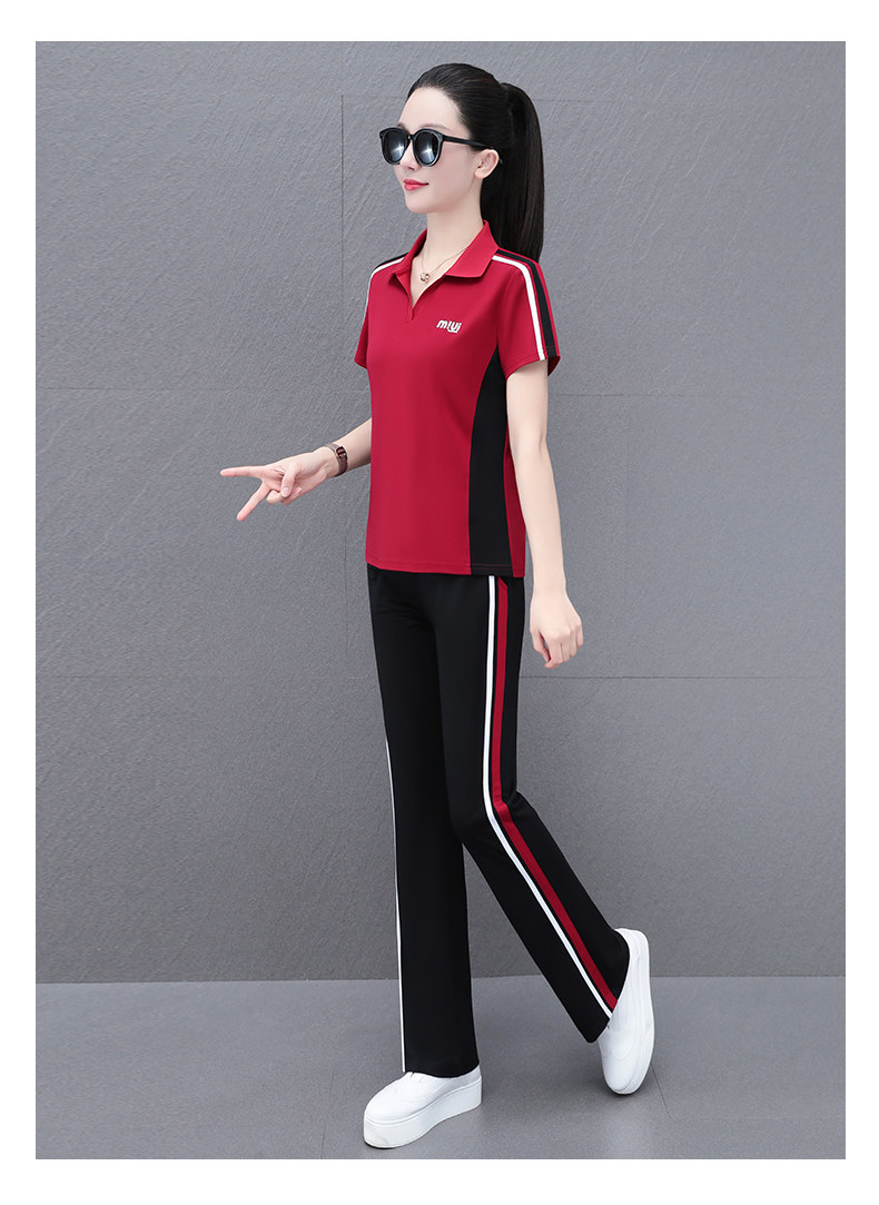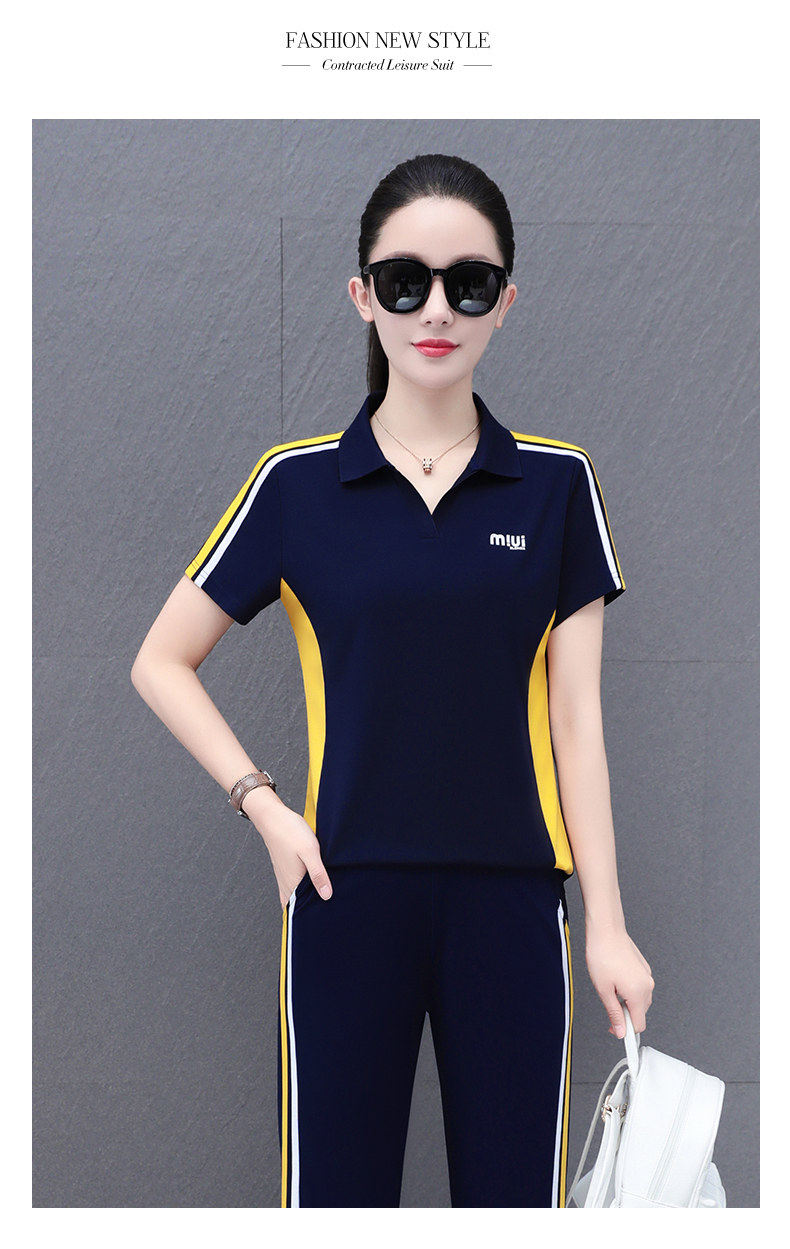 休闲运动服套装女夏季2025年新款洋气减龄显瘦冰丝短袖长裤两件套