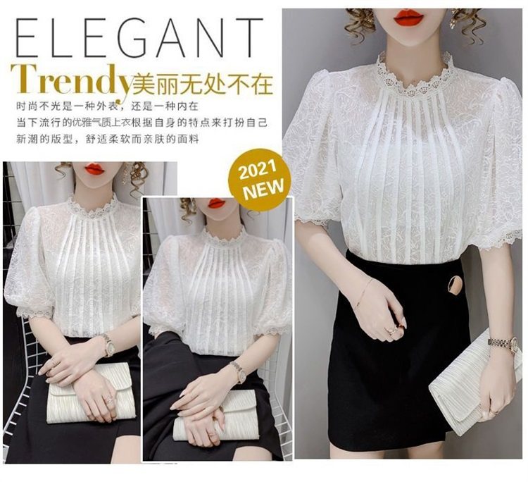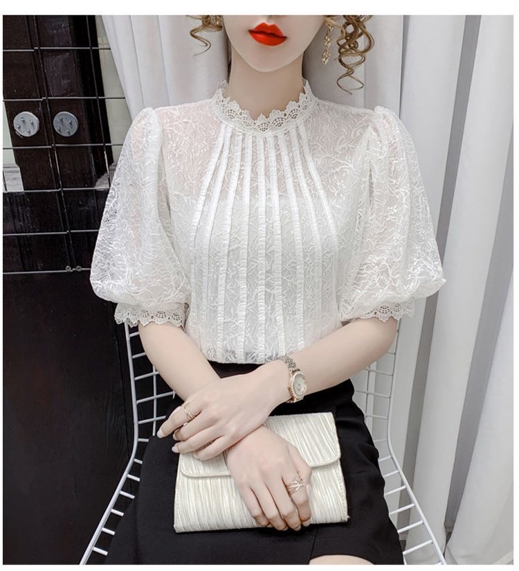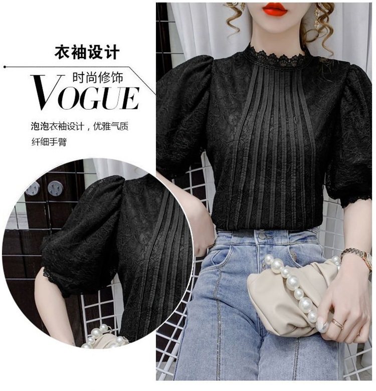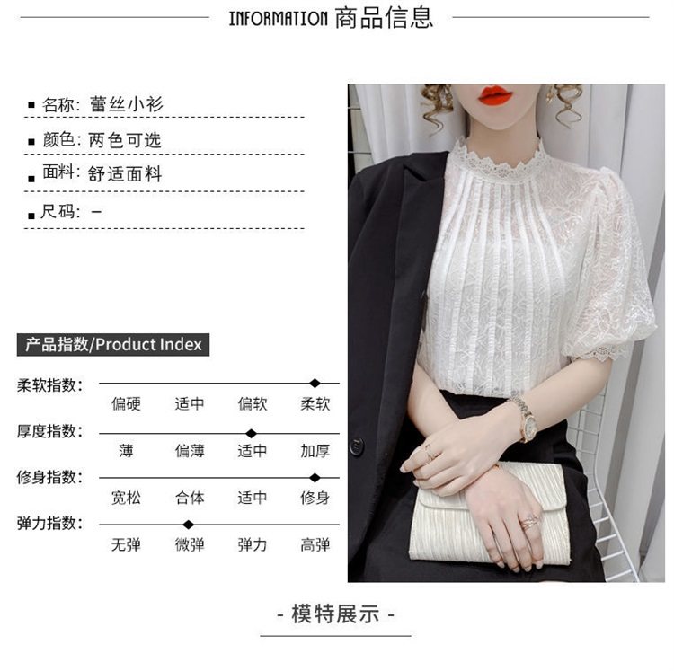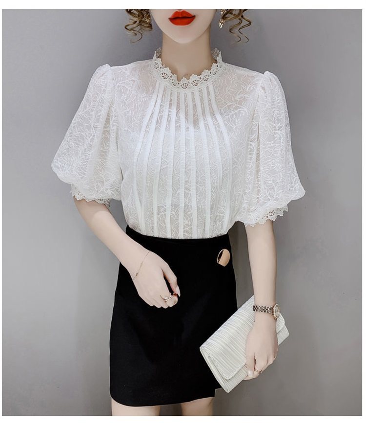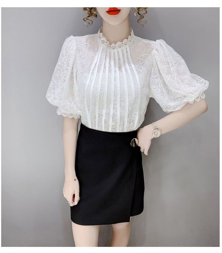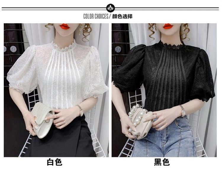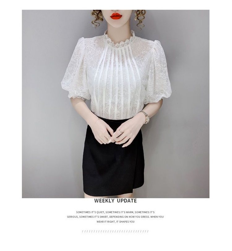 白色半袖上衣夏季女装2025新款泡泡雪纺衬衫短袖薄款T恤别致蕾丝