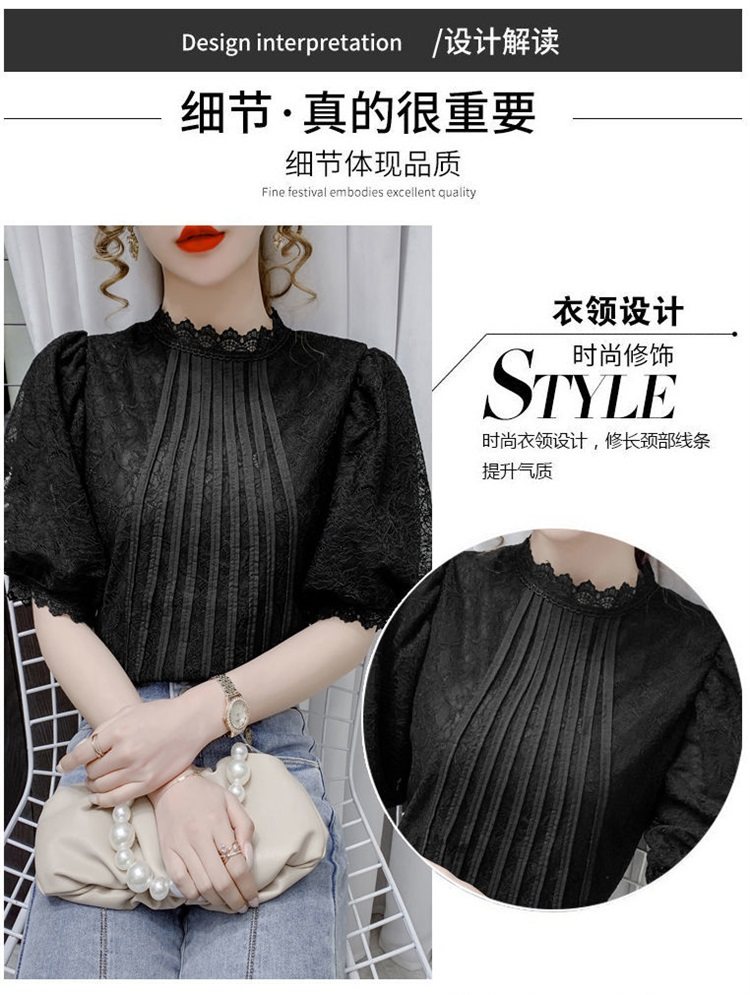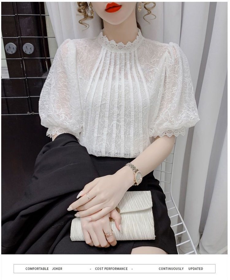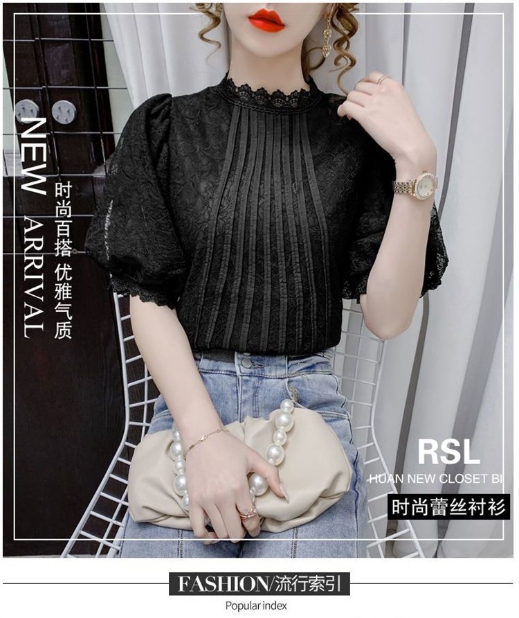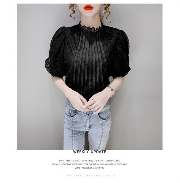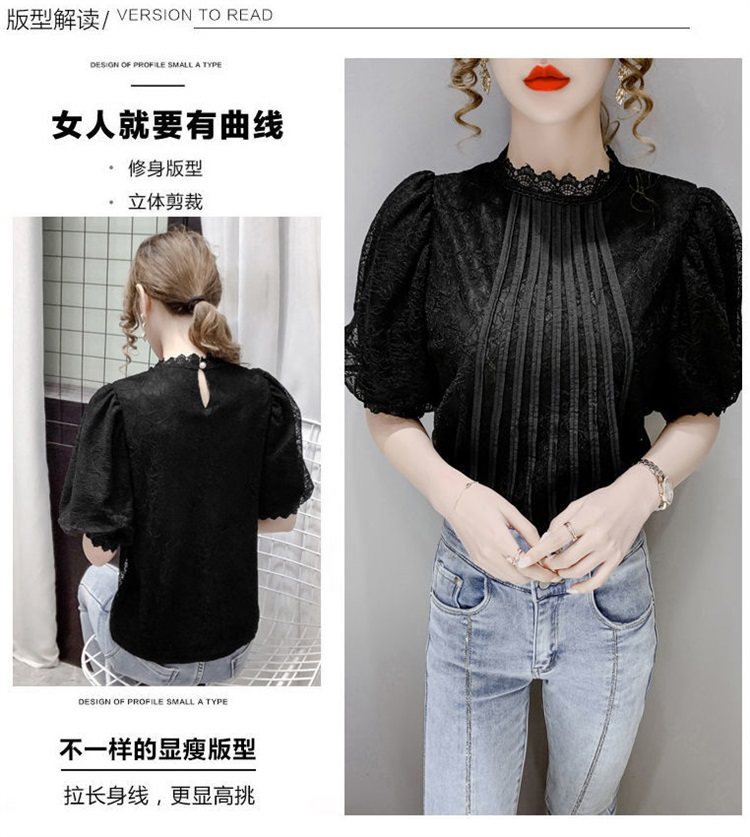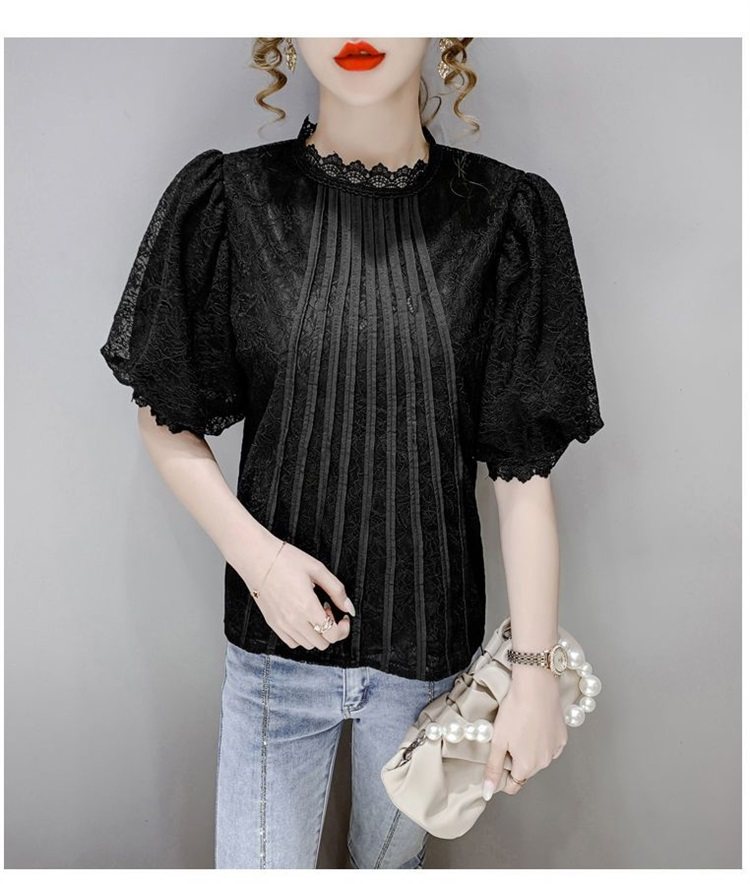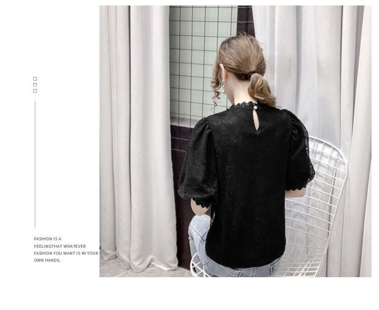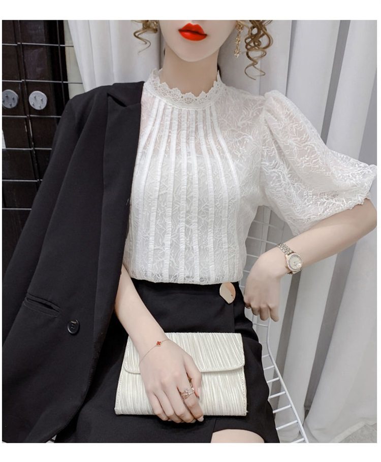 白色半袖上衣夏季女装2025新款泡泡雪纺衬衫短袖薄款T恤别致蕾丝