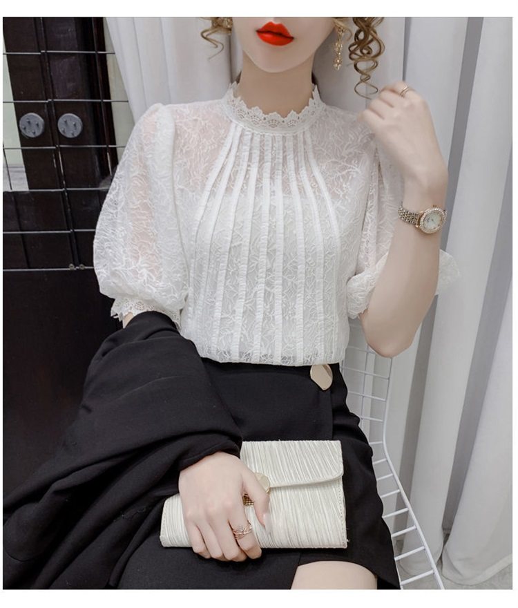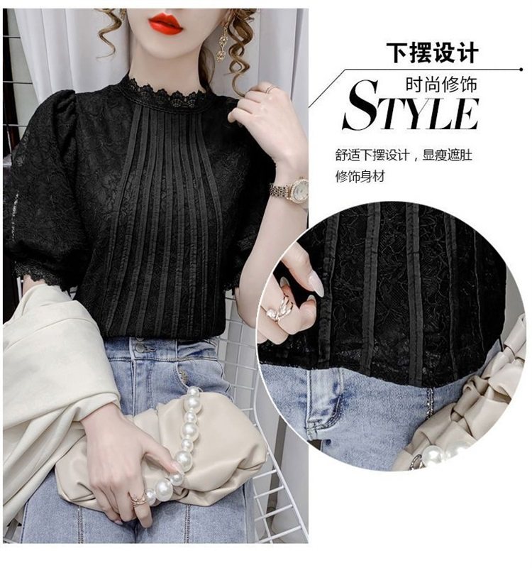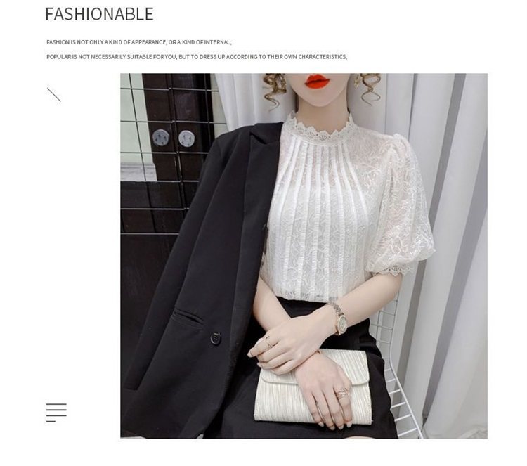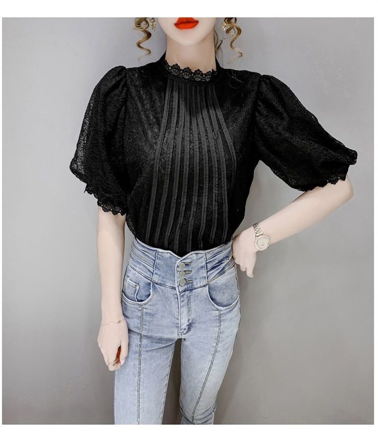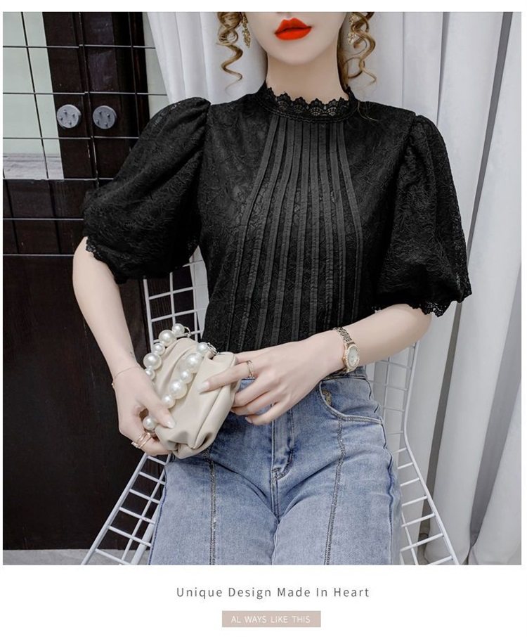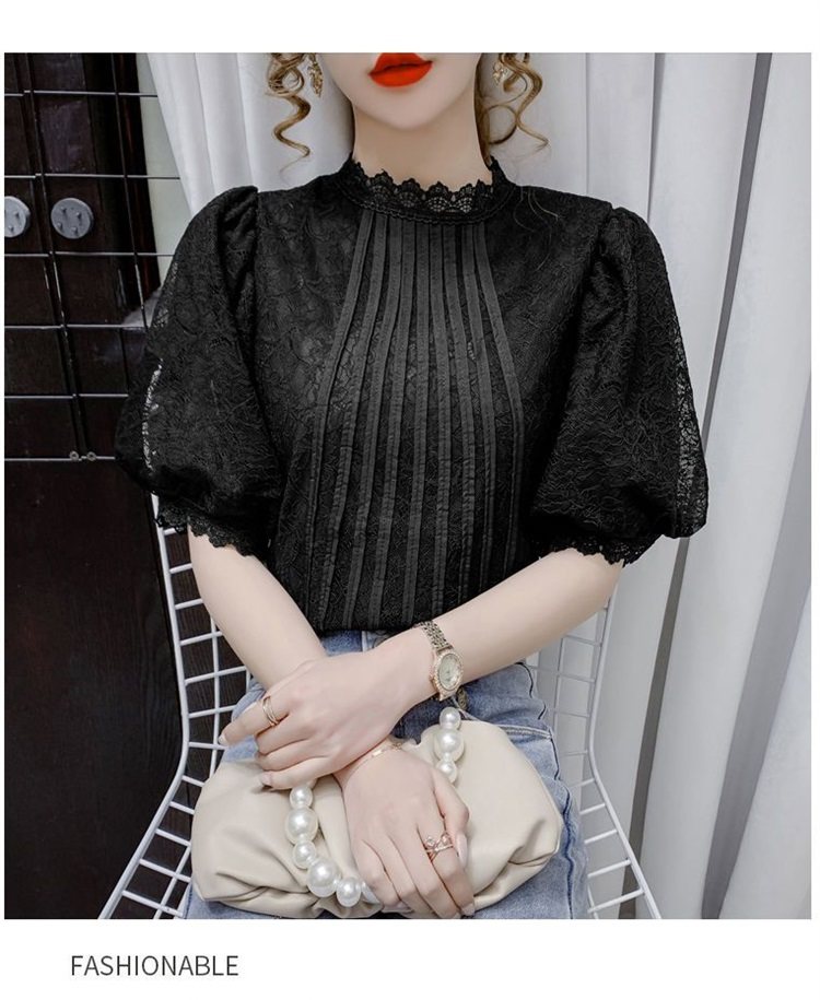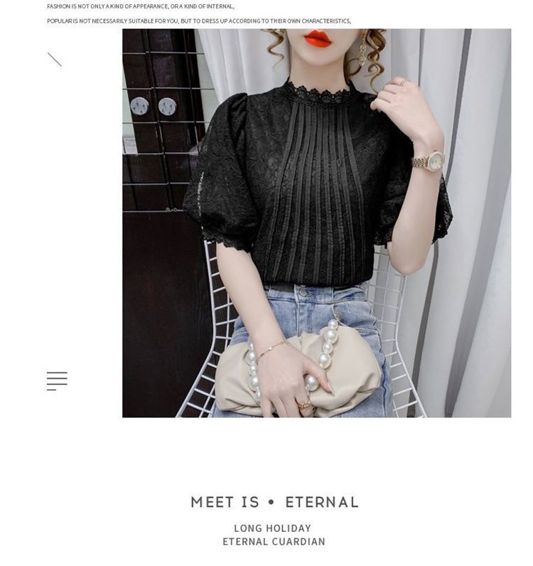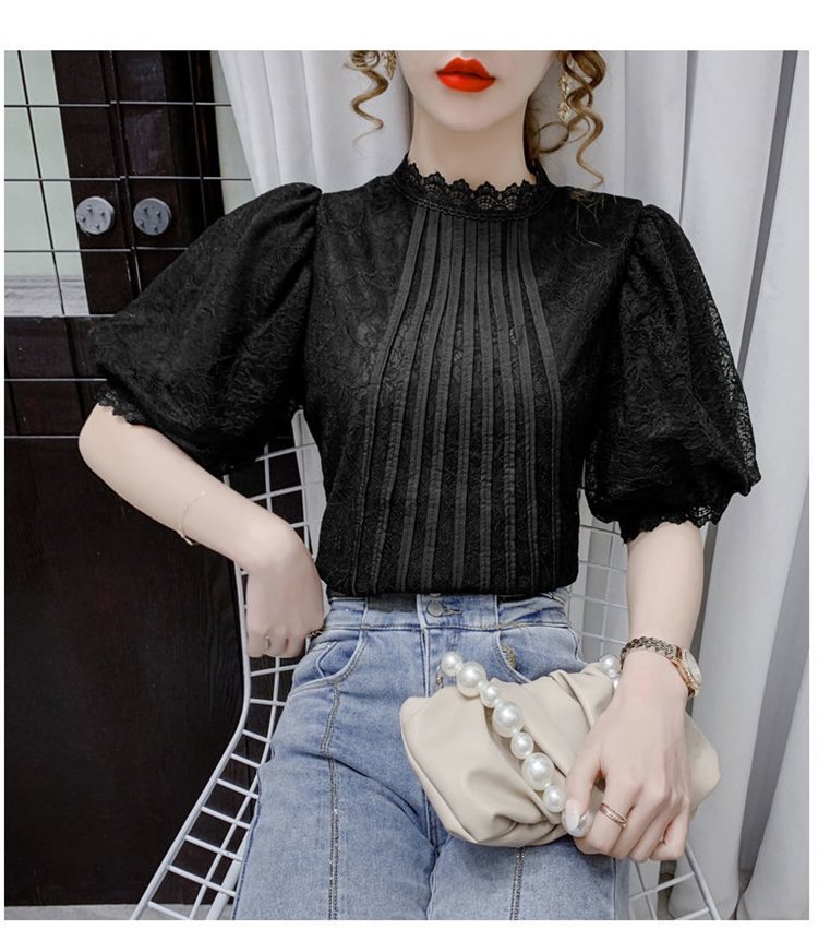 白色半袖上衣夏季女装2025新款泡泡雪纺衬衫短袖薄款T恤别致蕾丝