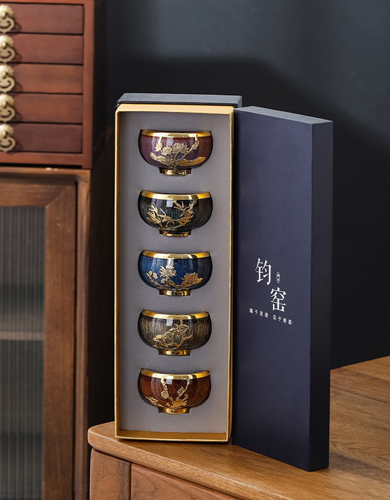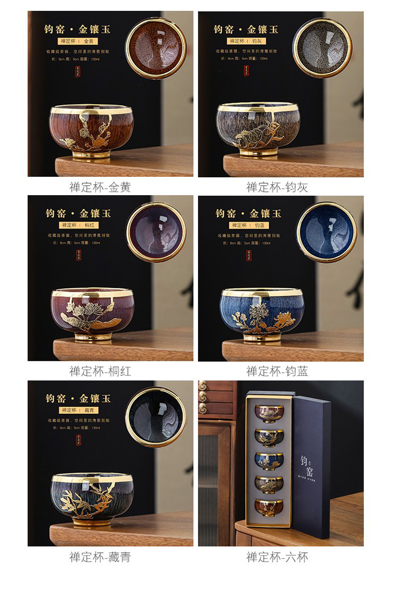 Color Classification Jun Kiln (Bunch Cup-Five-Color Cup),Jun Kiln (Zen Cup-Five Color Cup),Jun Kiln-Gold Inlaid with Jade (Zen Cup-Five-Color Cup),Jun Kiln-Gold Inlaid with Jade (Bunch Cup-Five-Color Cup)