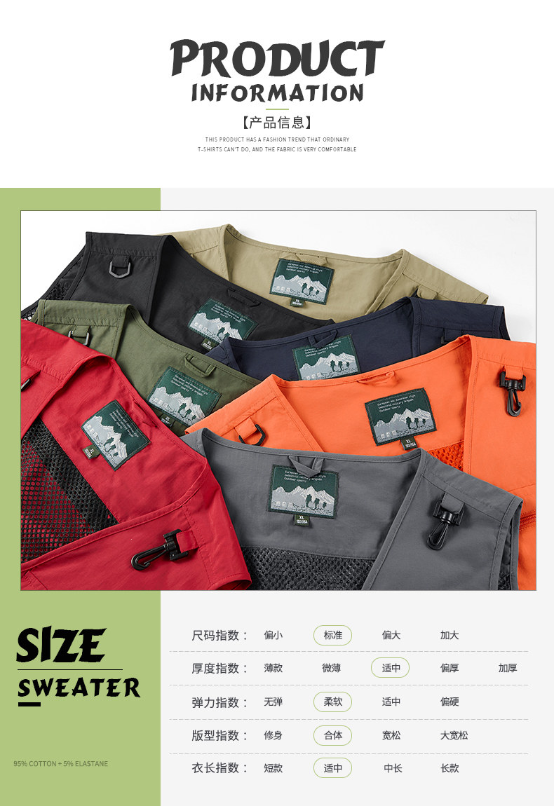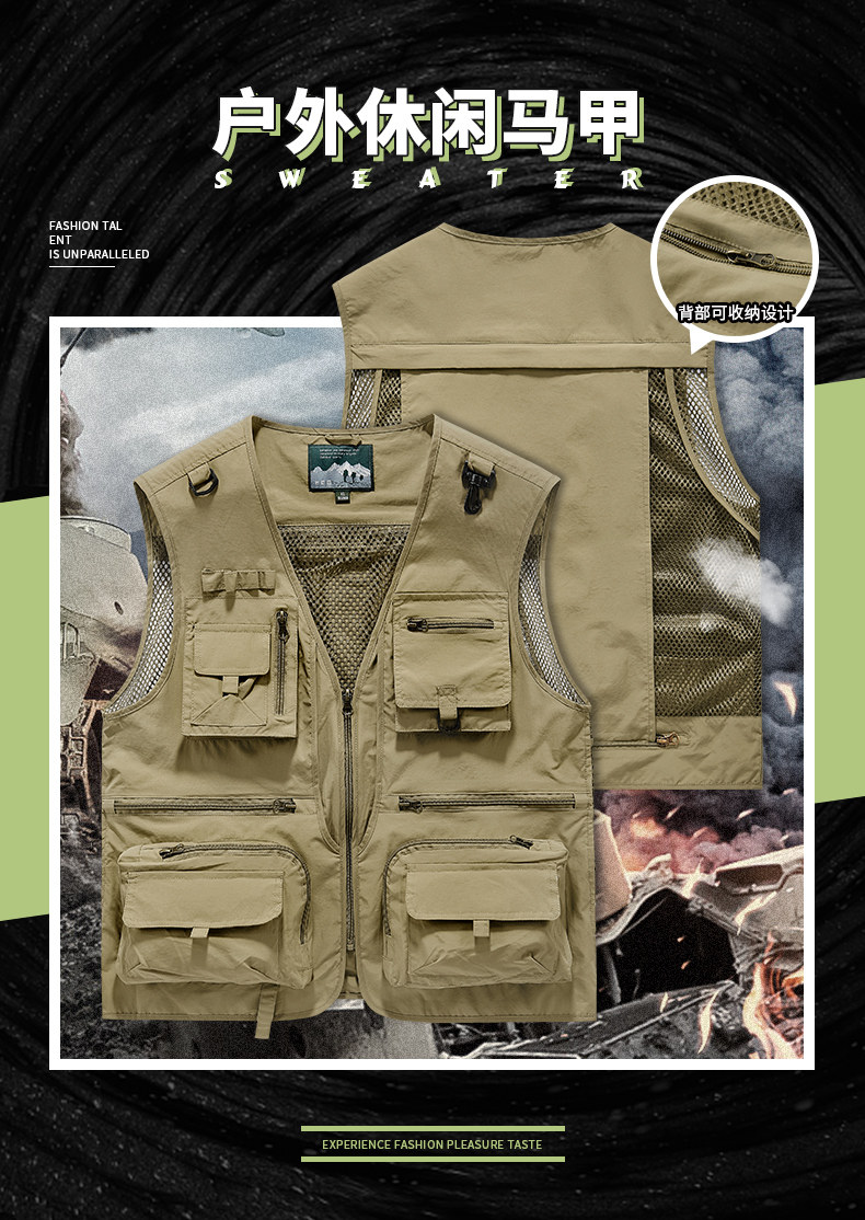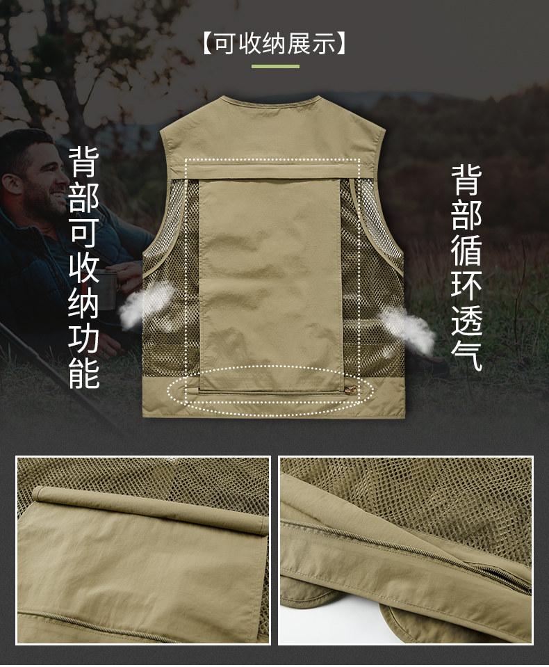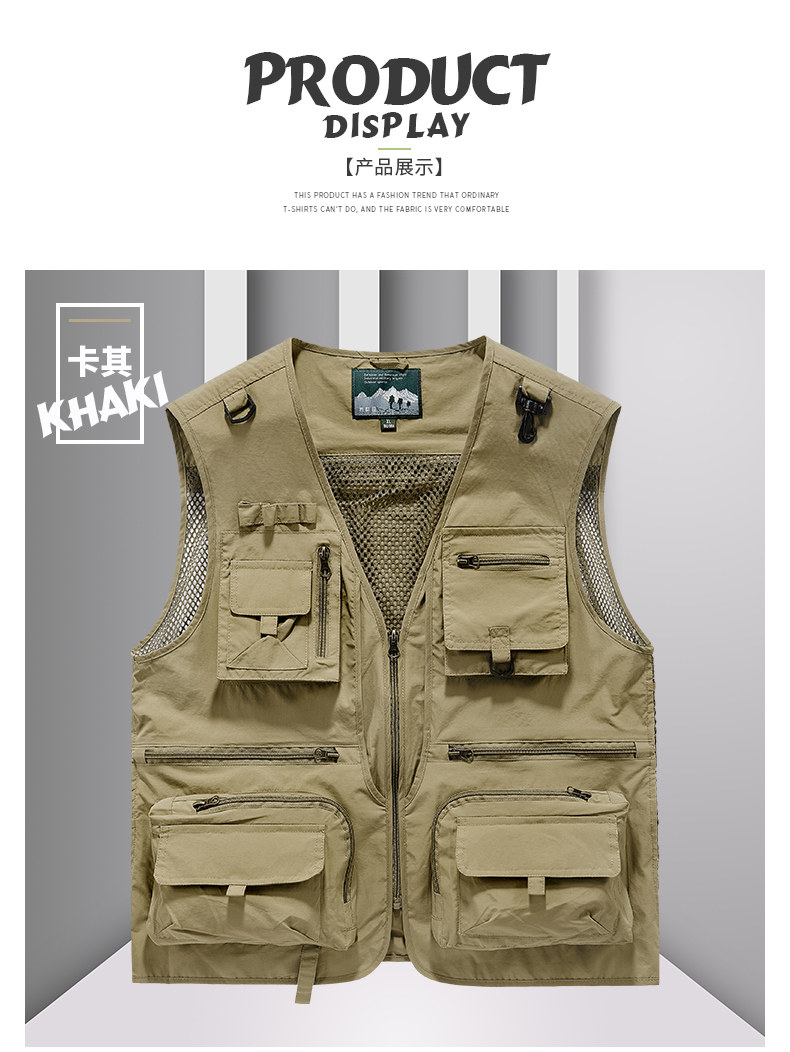 Men's Multi-Pocket Utility Vest Fishing Hiking Photography Outdoor Quick-Drying Jacket Sleeveless Vest