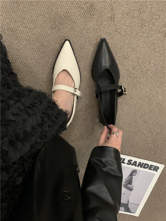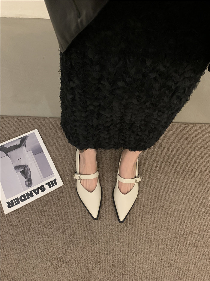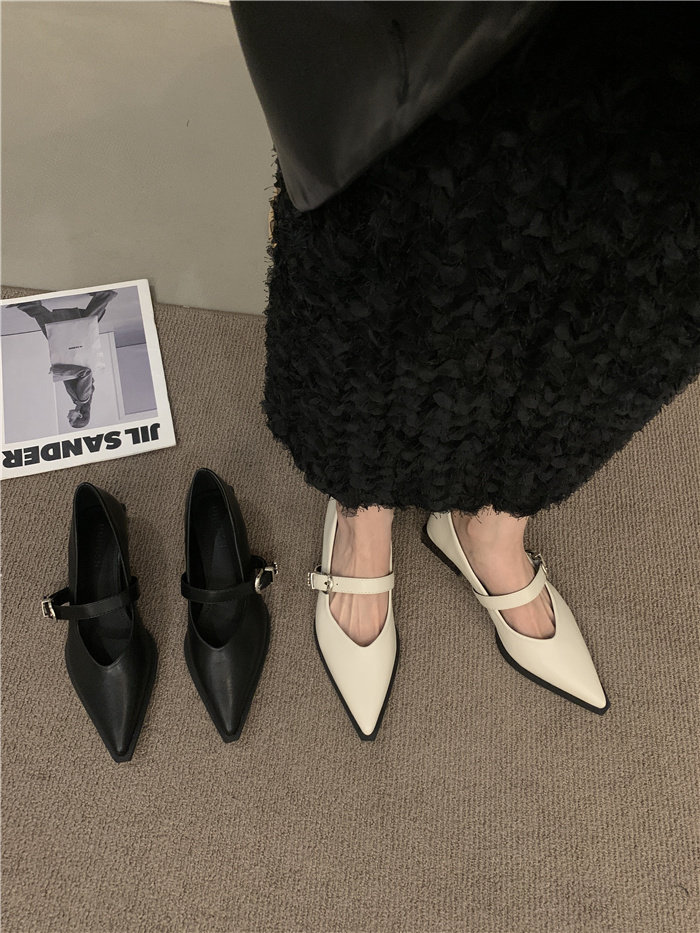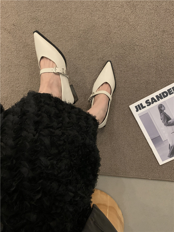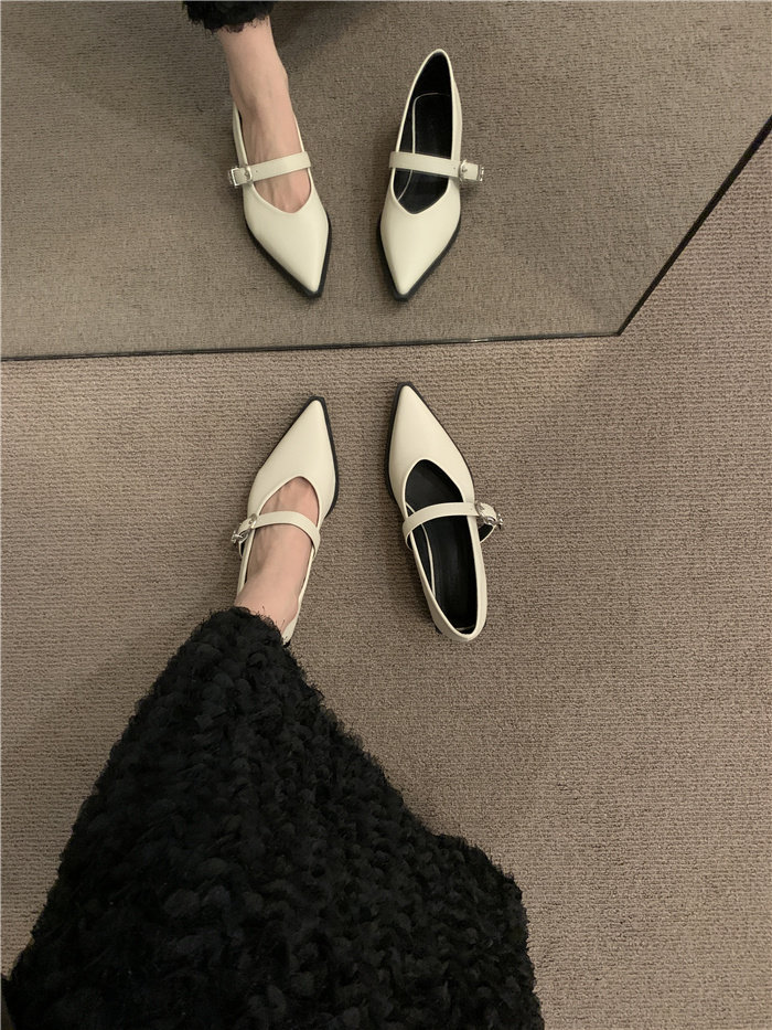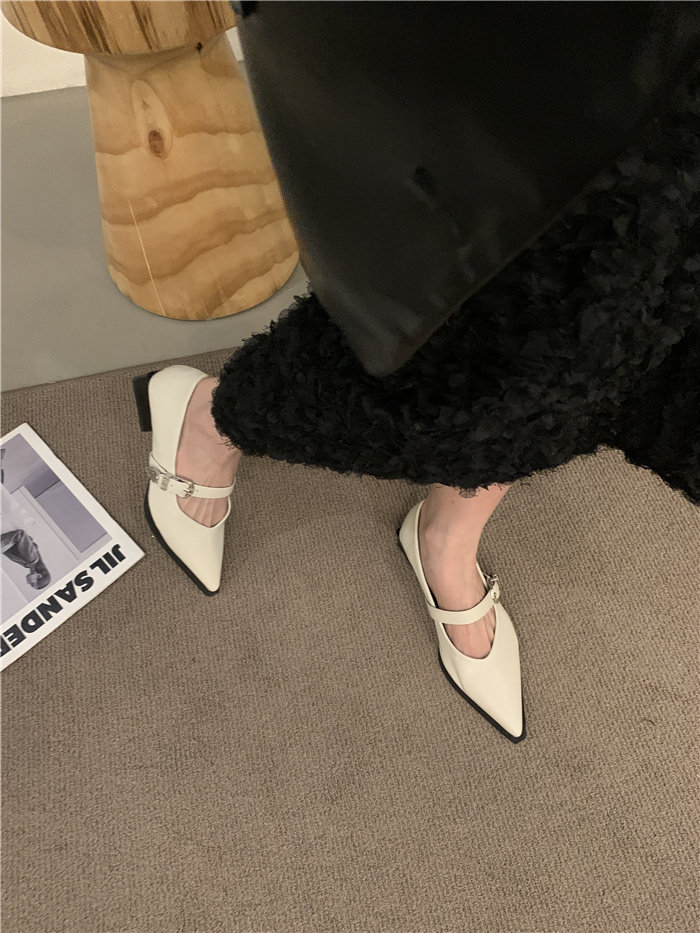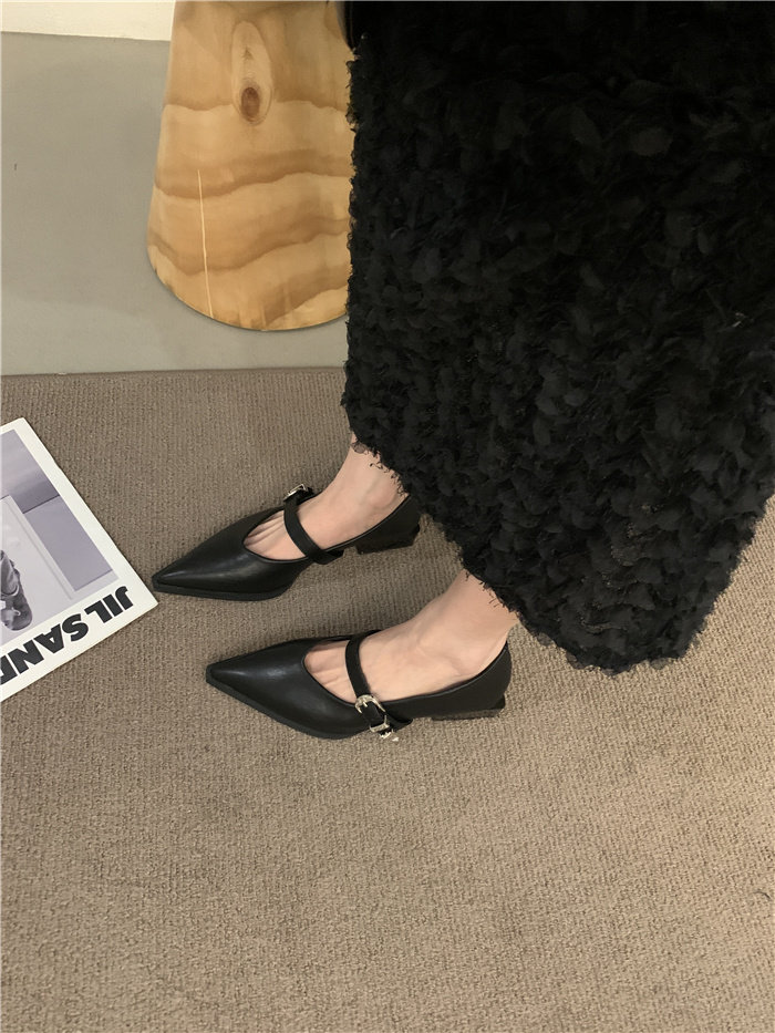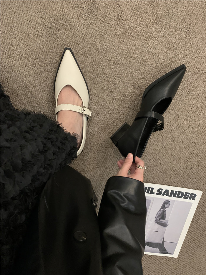 Trendy French-Style Mary Jane Women's Shoes 2023 Spring New Patent Leather Pointed Toe Shallow Mouth Elegant Mid-Heel Single Shoes