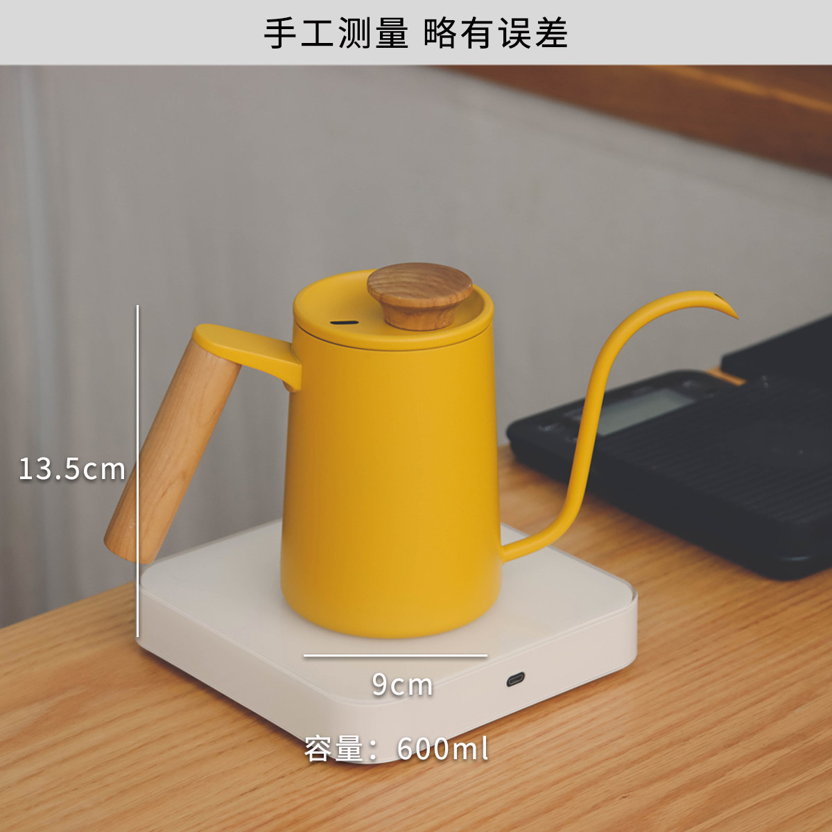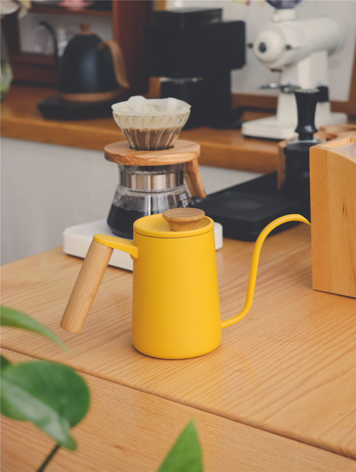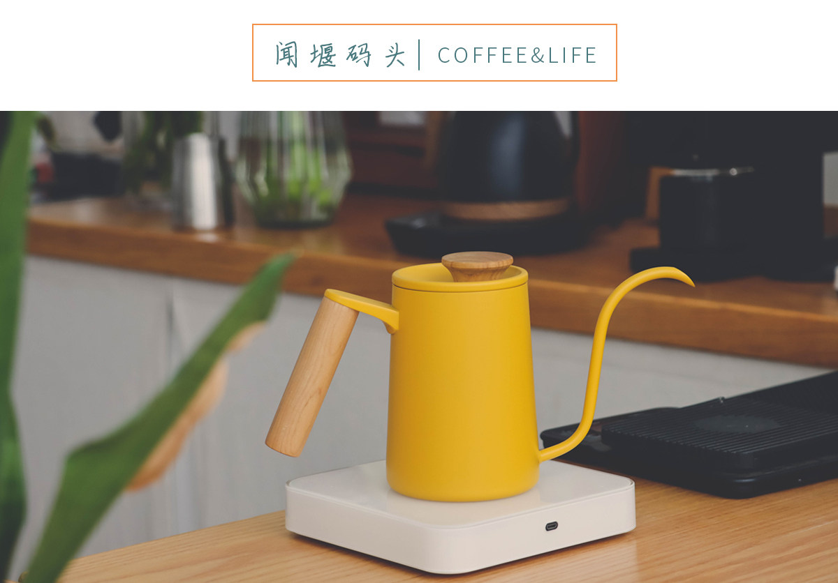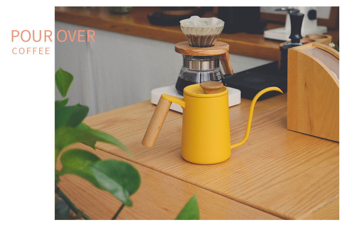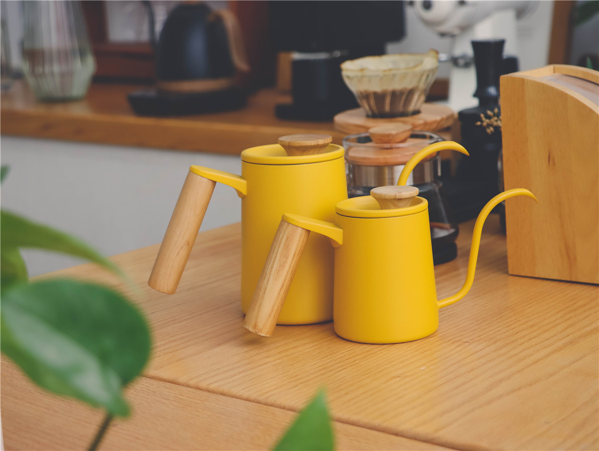 Solid wood handle, yellow hand-brewed coffee pot, stainless steel hanging ear coffee, Japanese retro V60 hand-brewed coffee pot, small