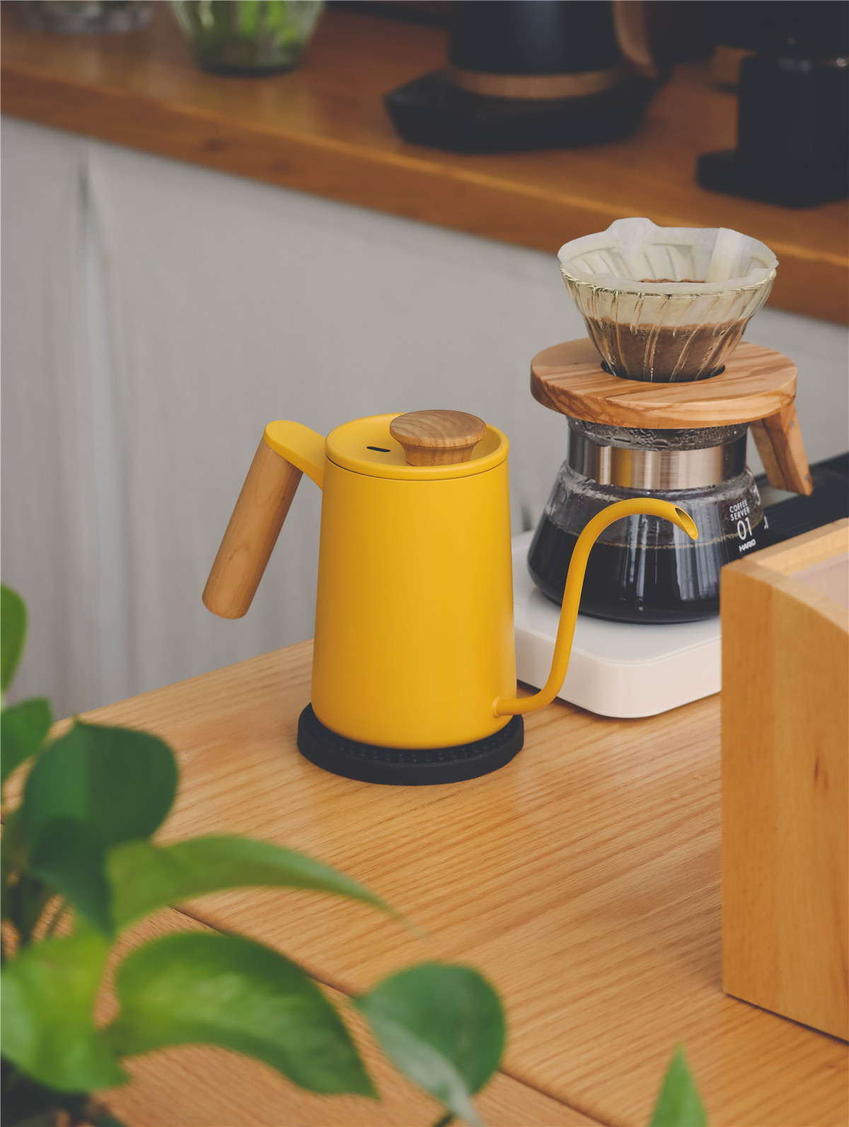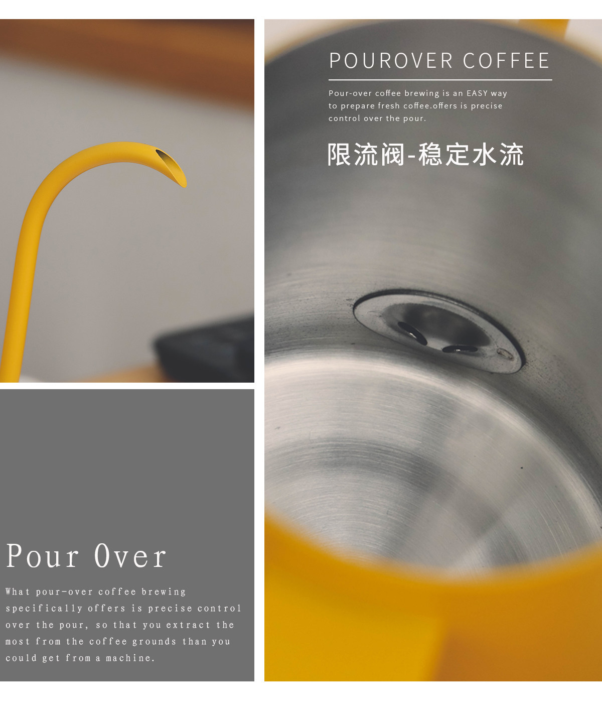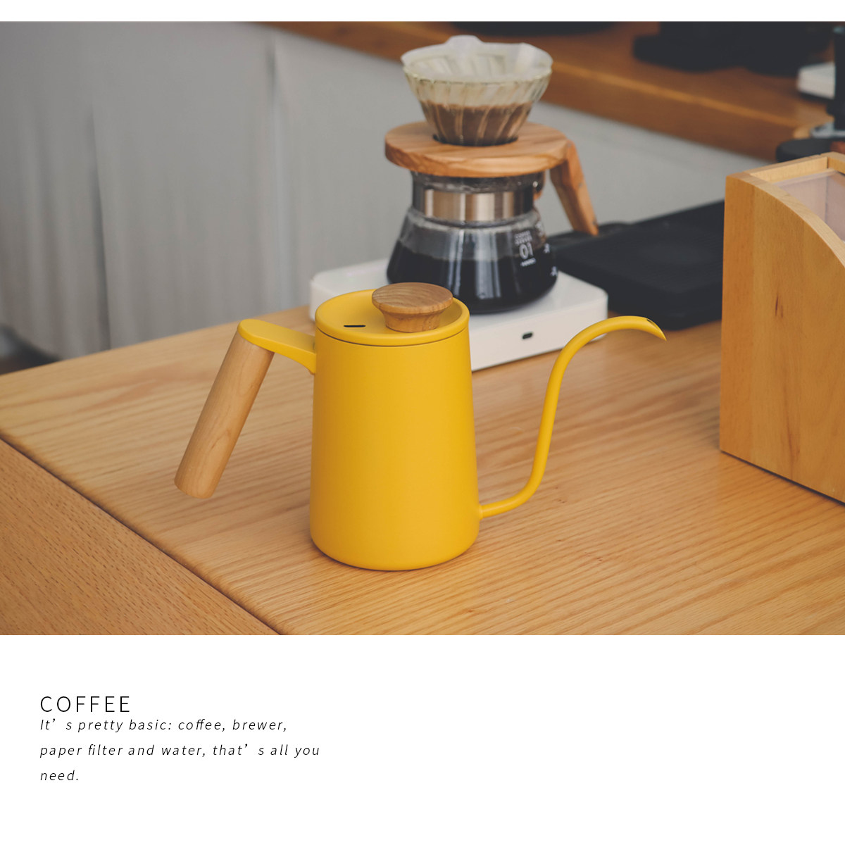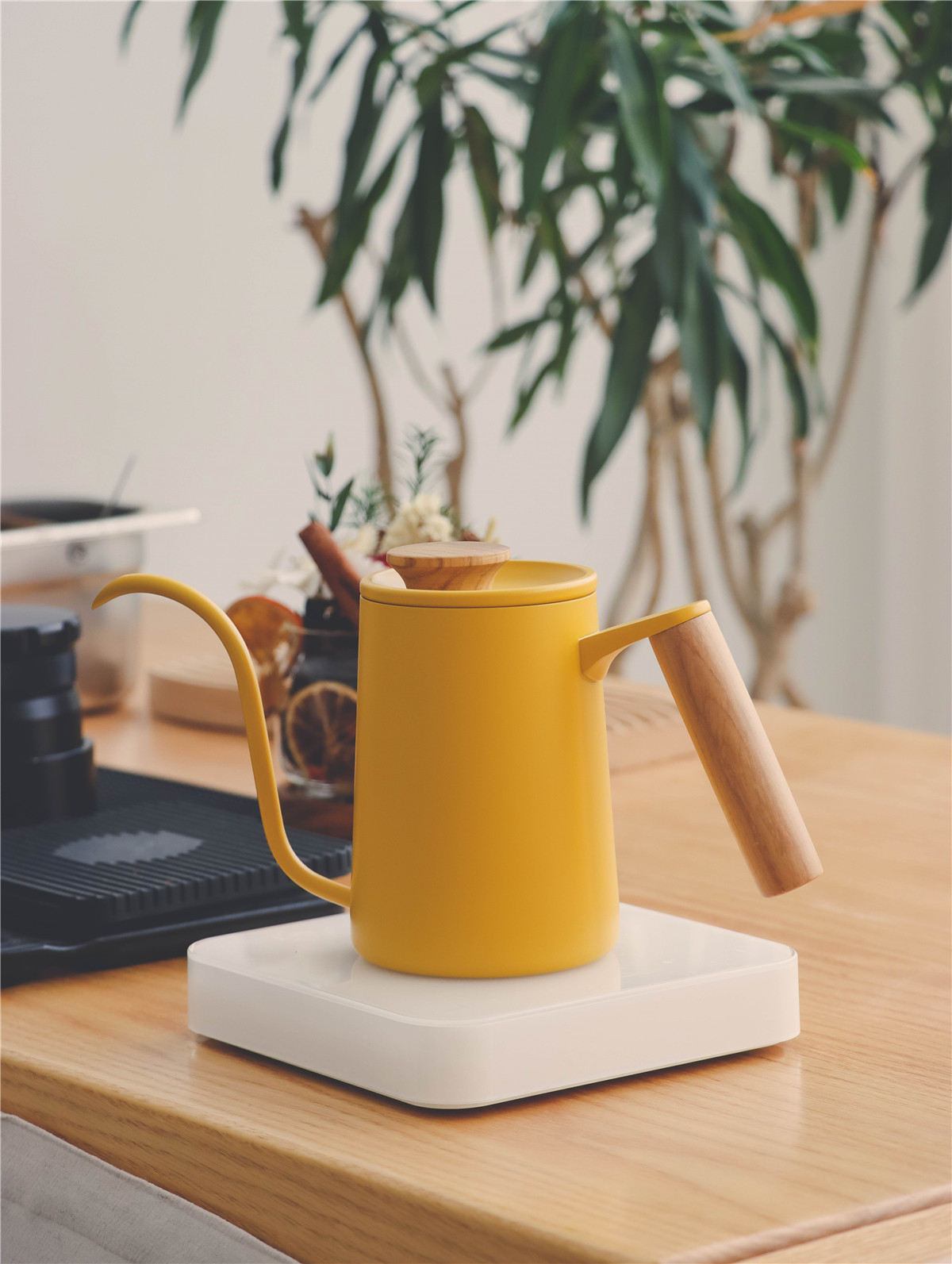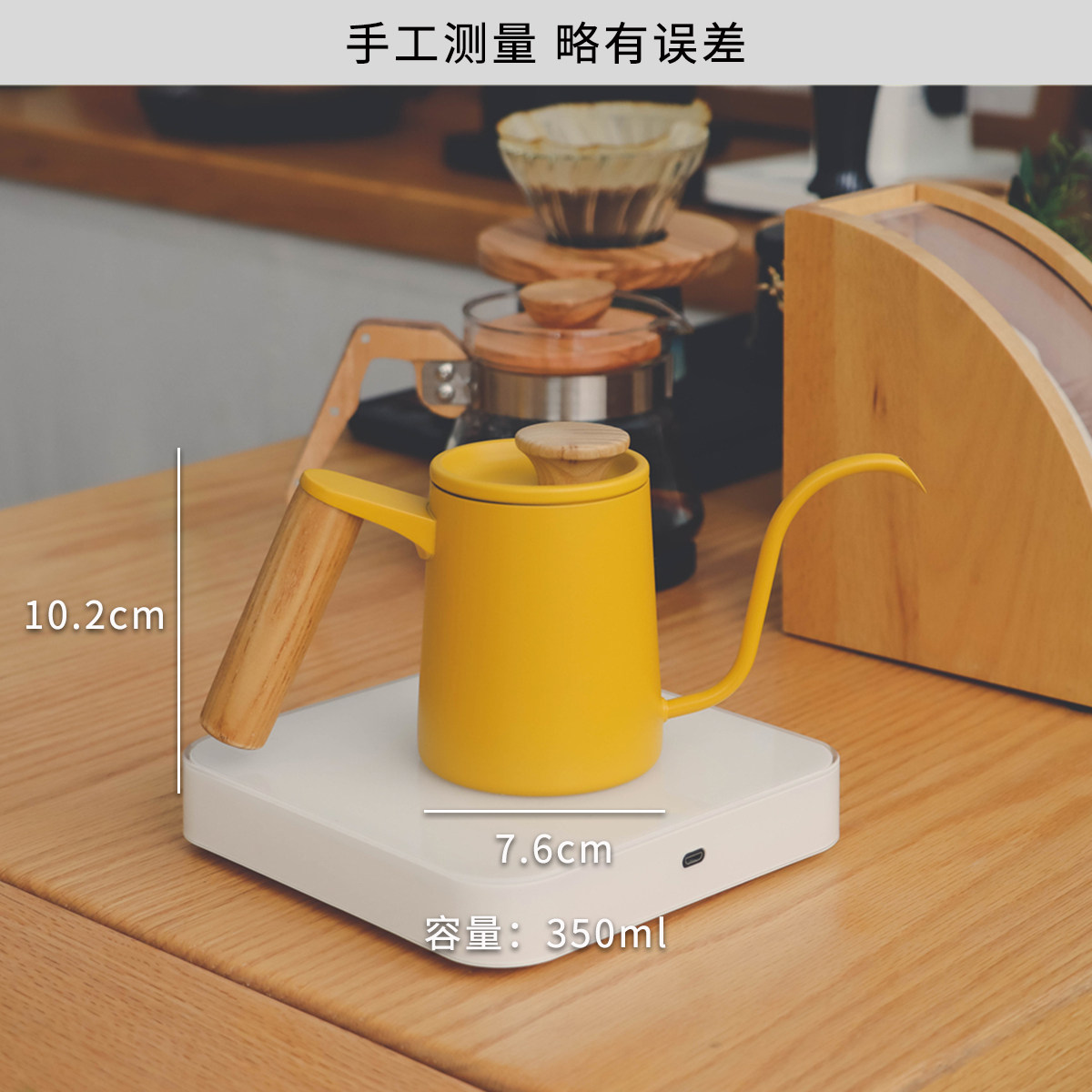 Solid wood handle, yellow hand-brewed coffee pot, stainless steel hanging ear coffee, Japanese retro V60 hand-brewed coffee pot, small