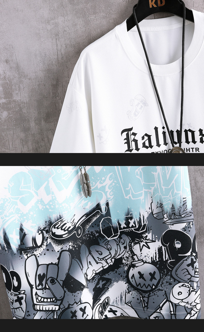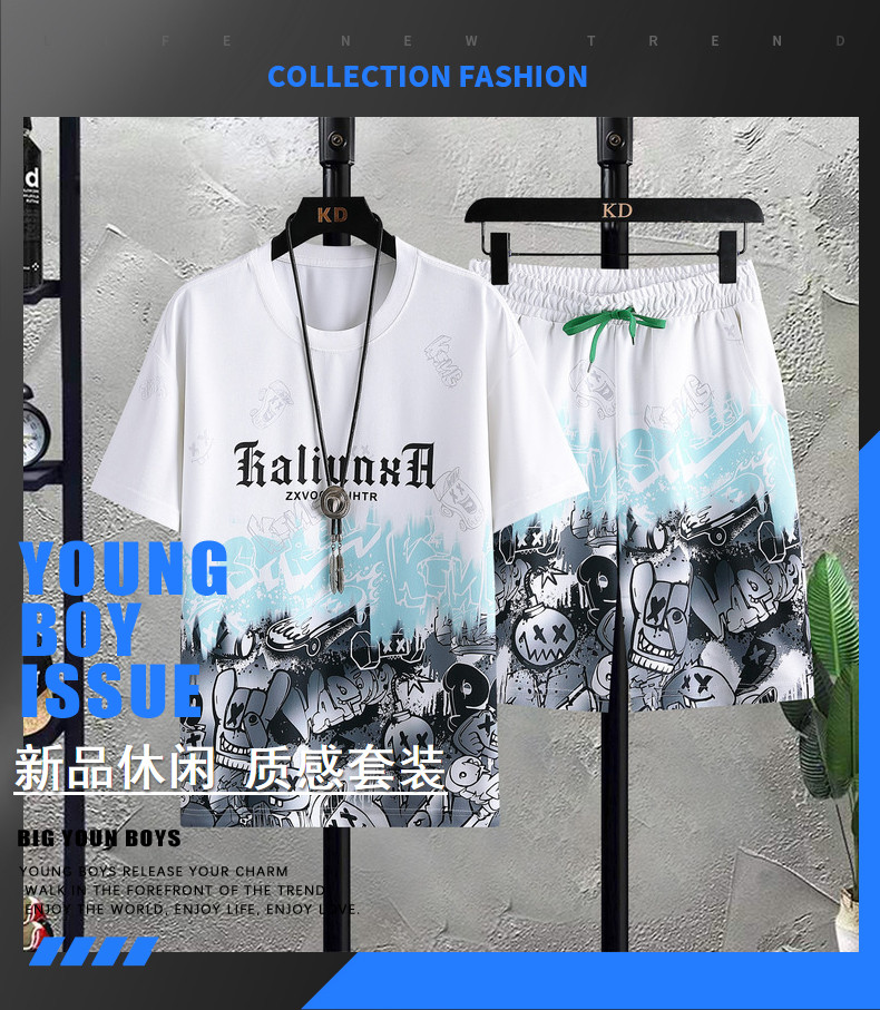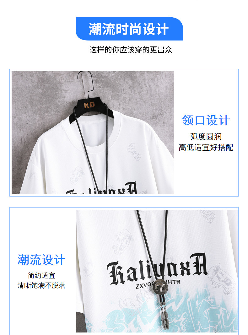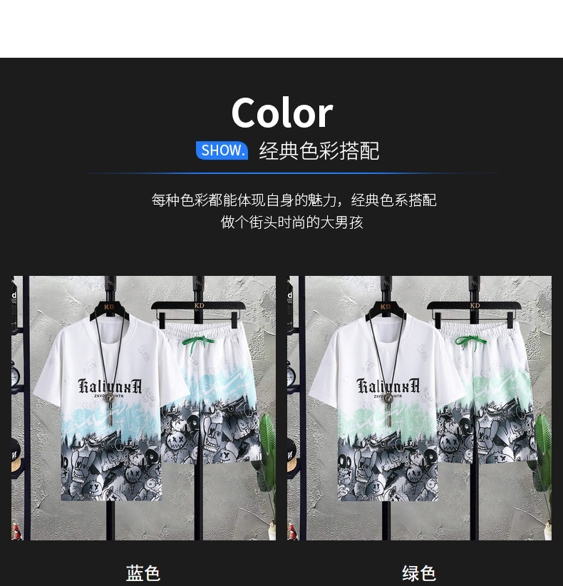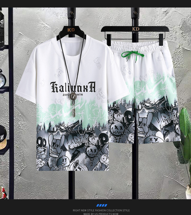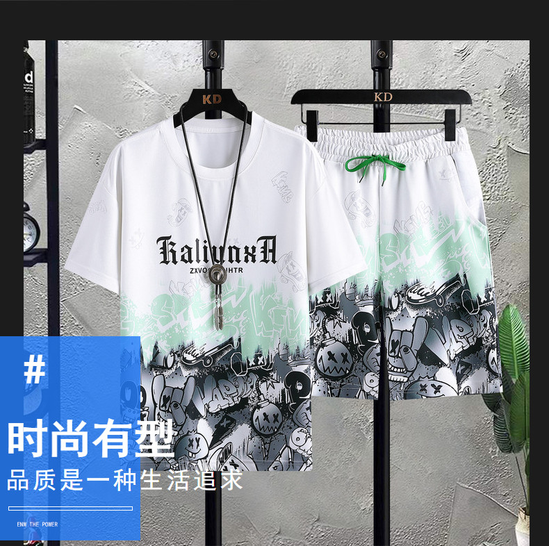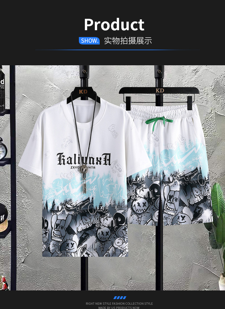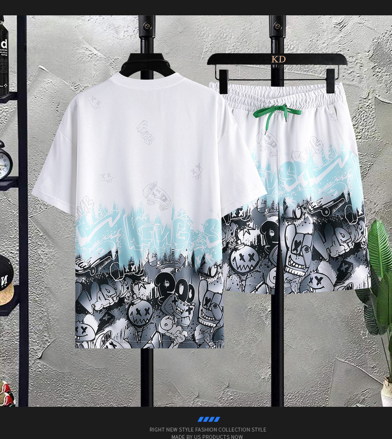 美式夏季薄款青少年T恤短裤免搭一套ins潮流潮牌宽松休闲运动套装
