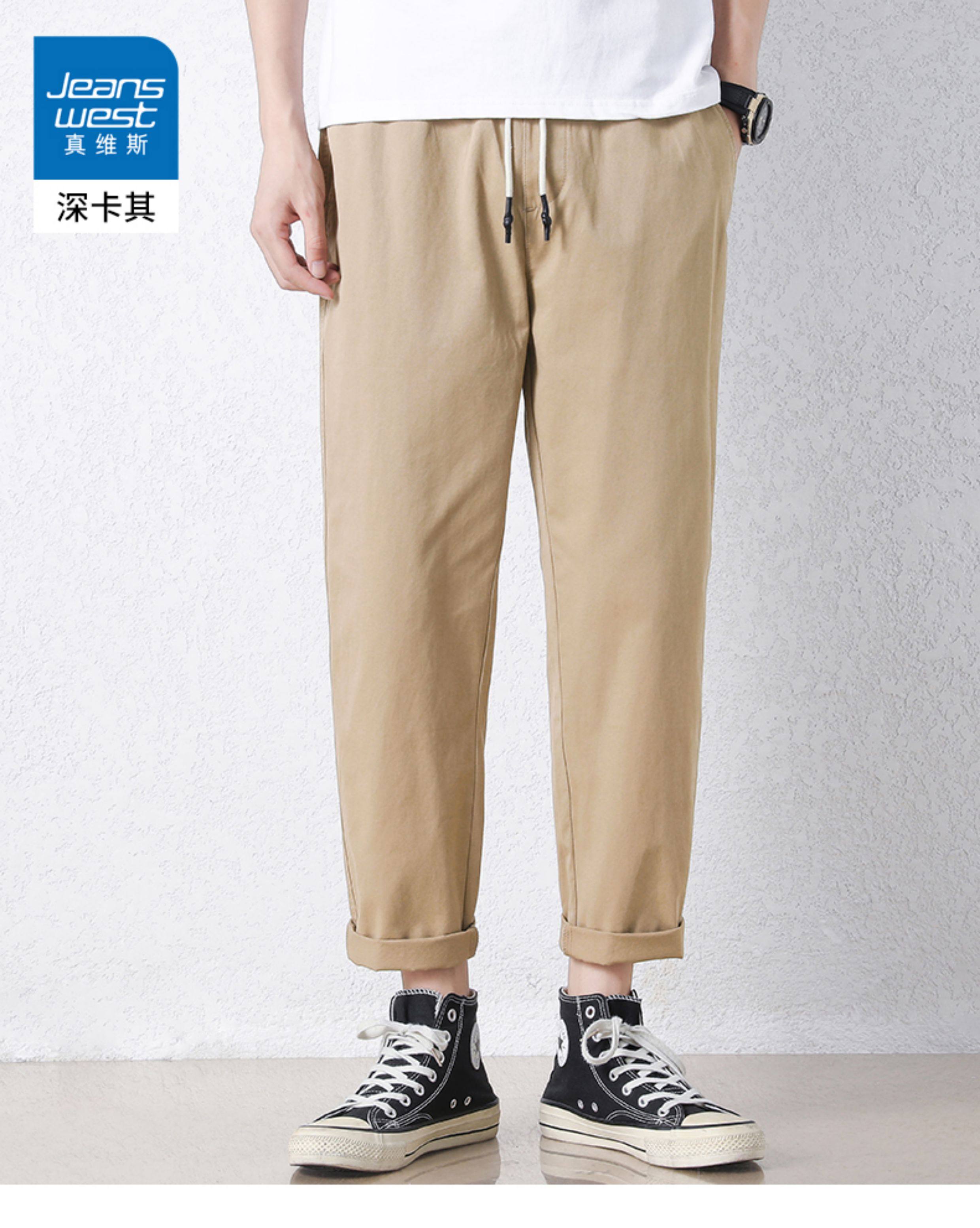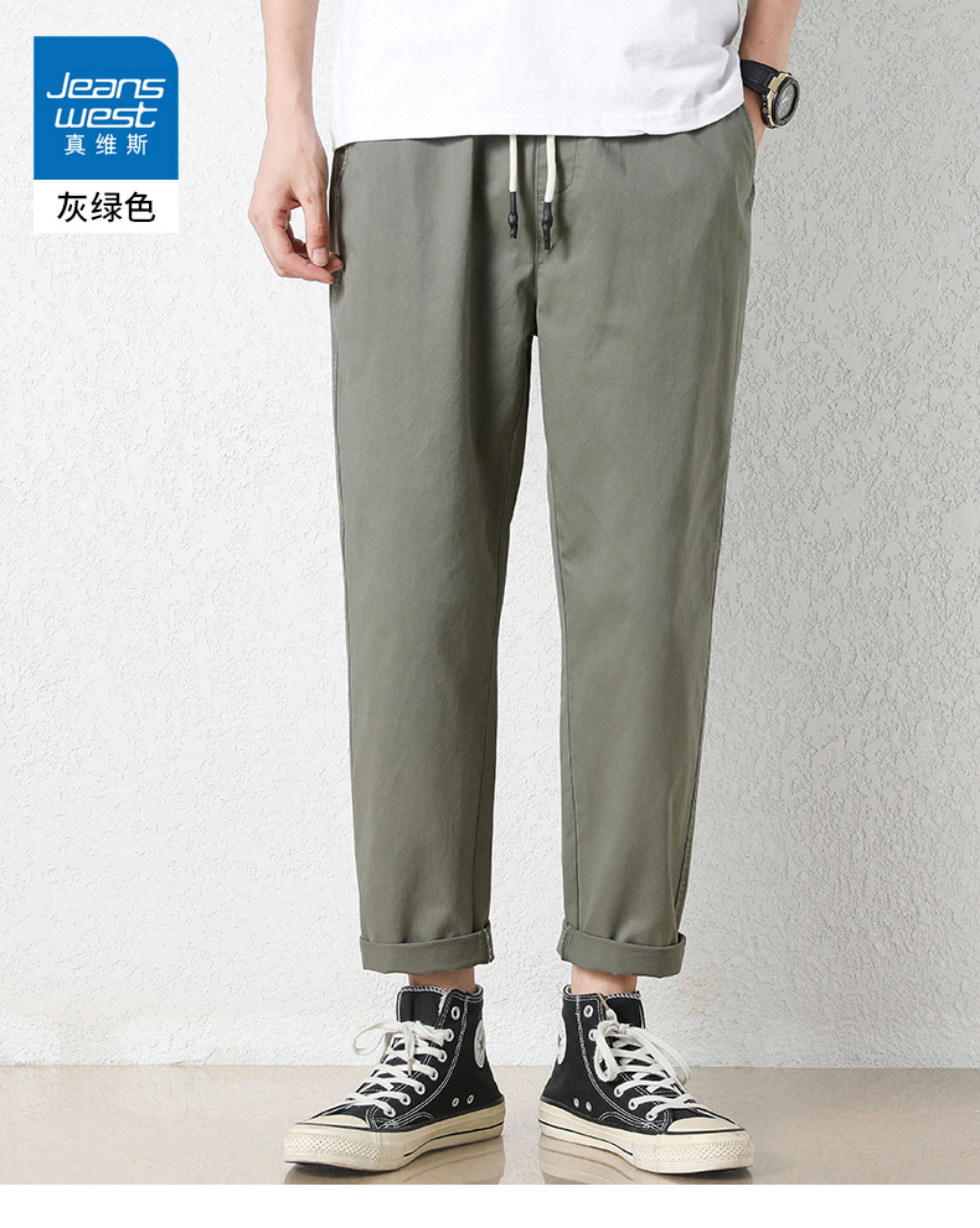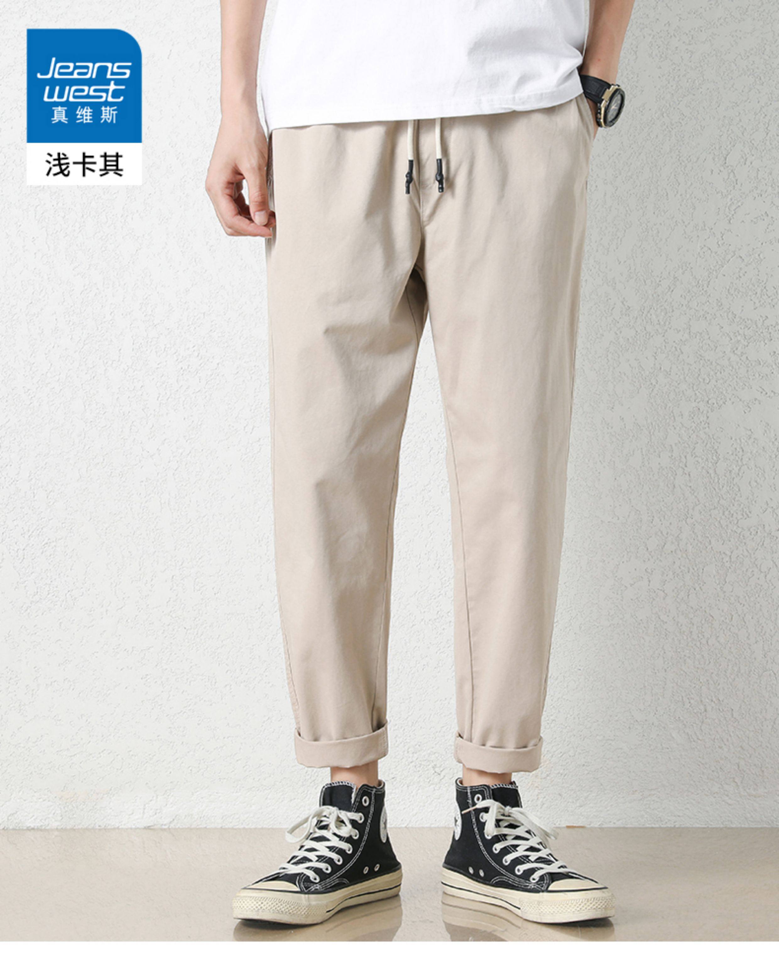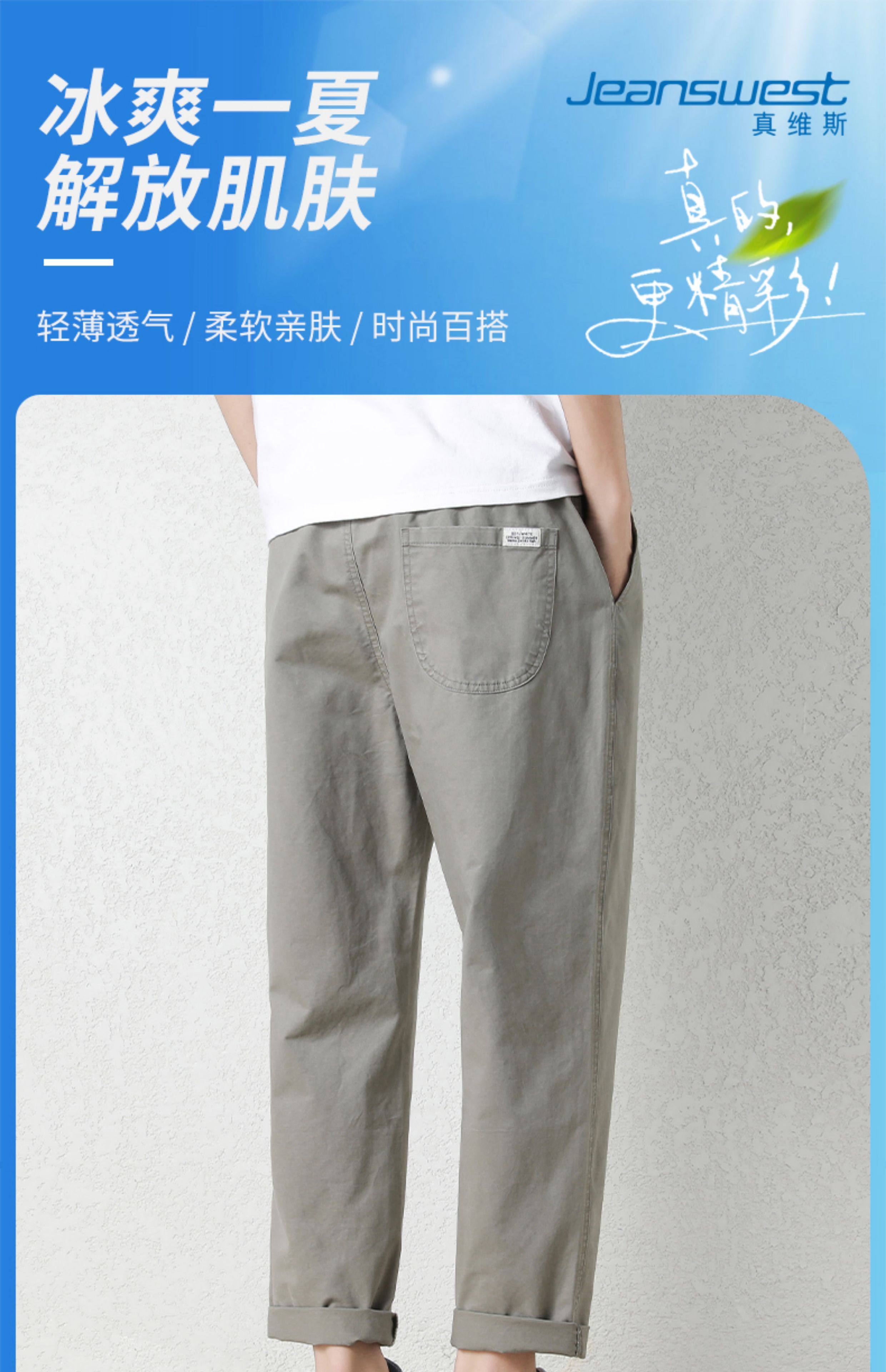 真维斯棉质休闲裤男士夏季新款宽松直筒哈伦裤子百搭工装九分长裤