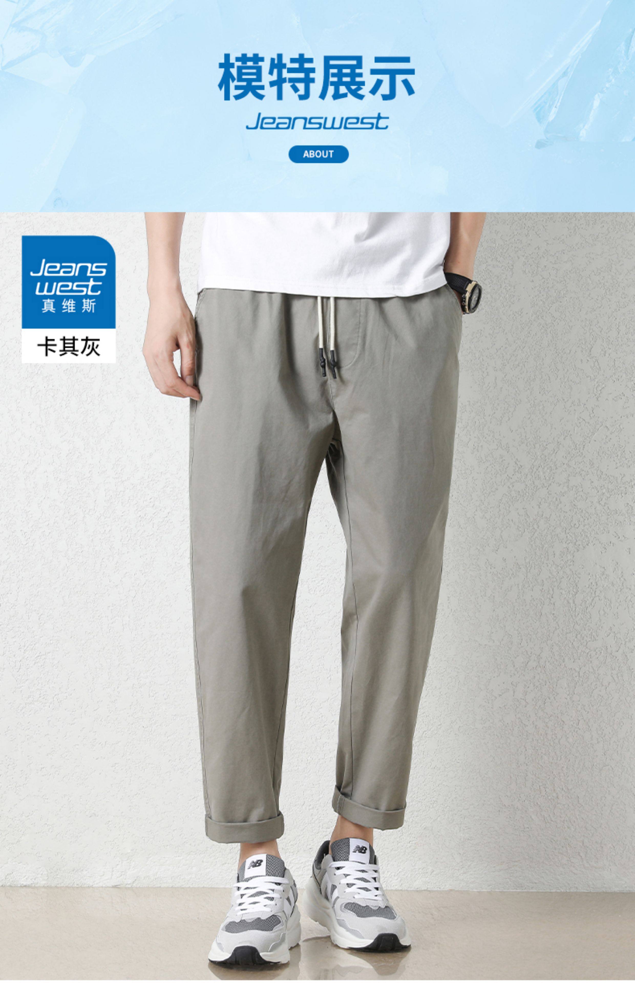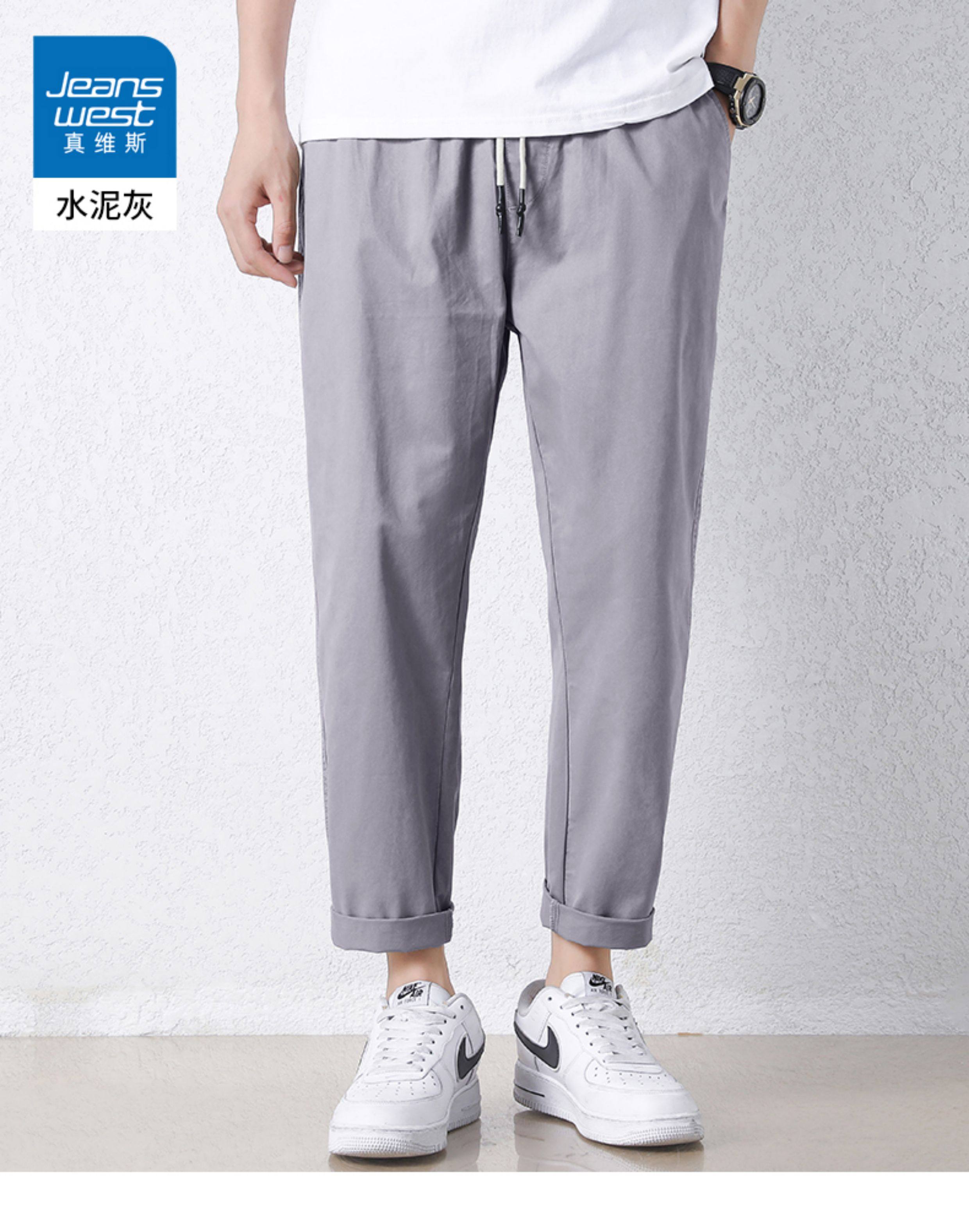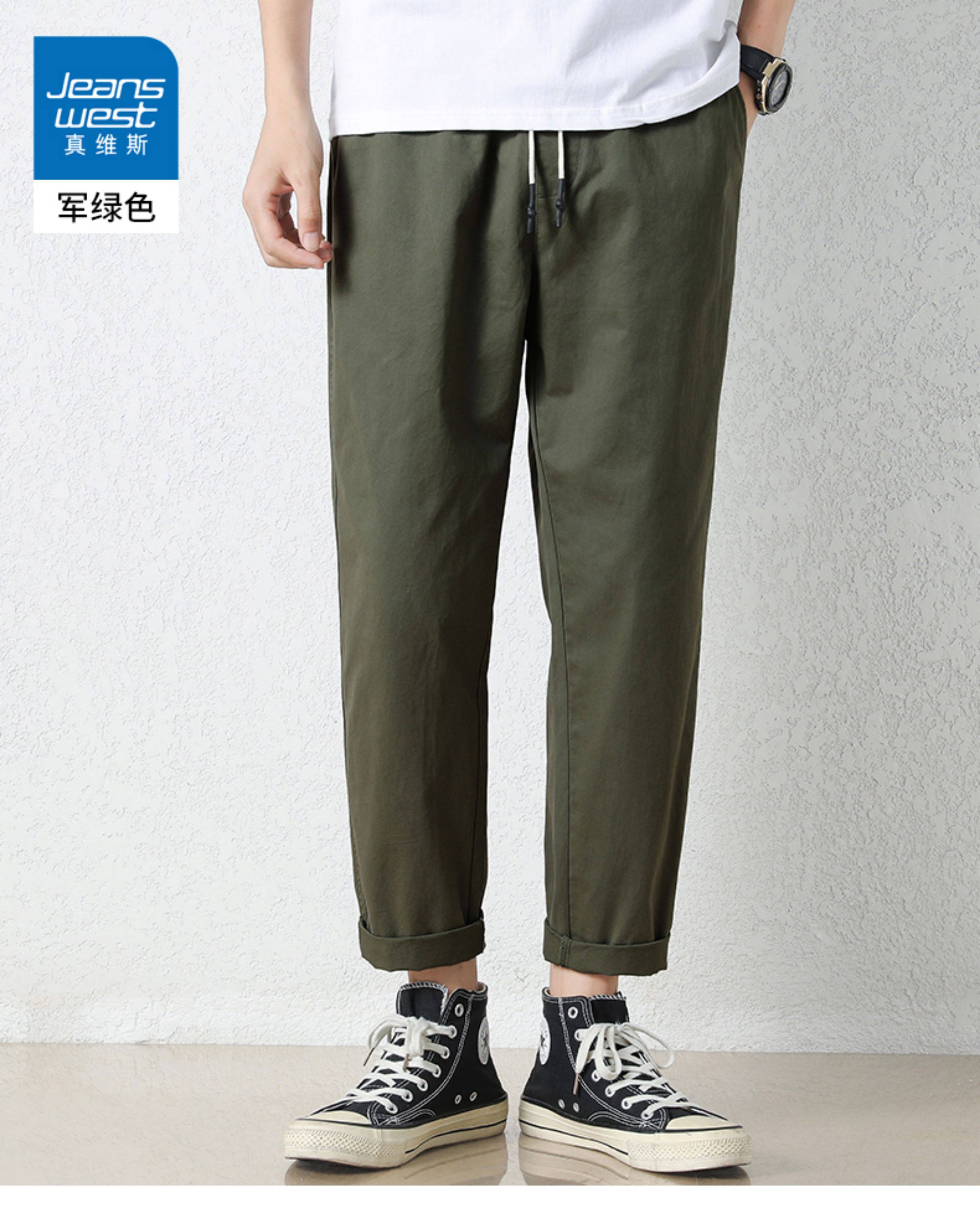 真维斯棉质休闲裤男士夏季新款宽松直筒哈伦裤子百搭工装九分长裤