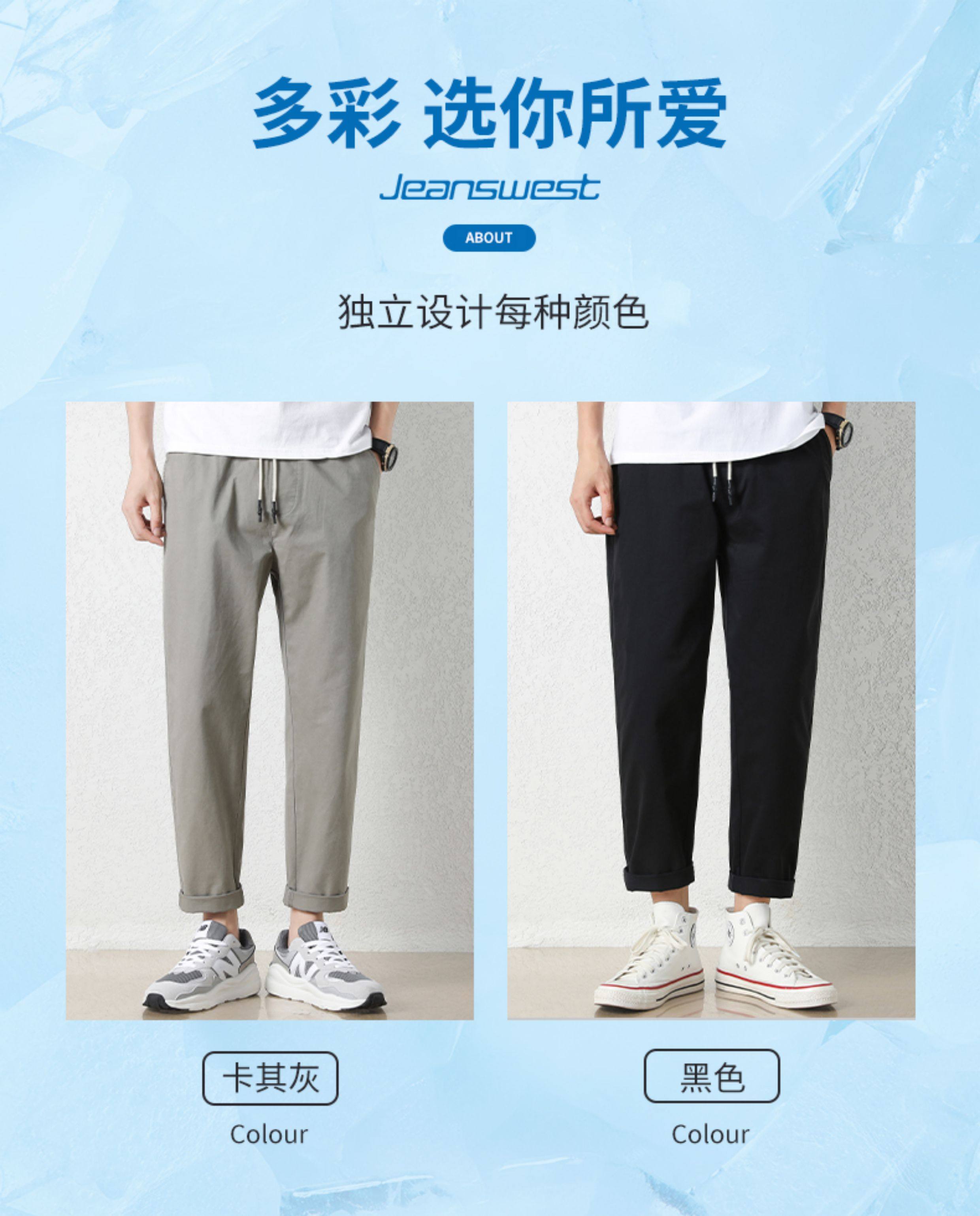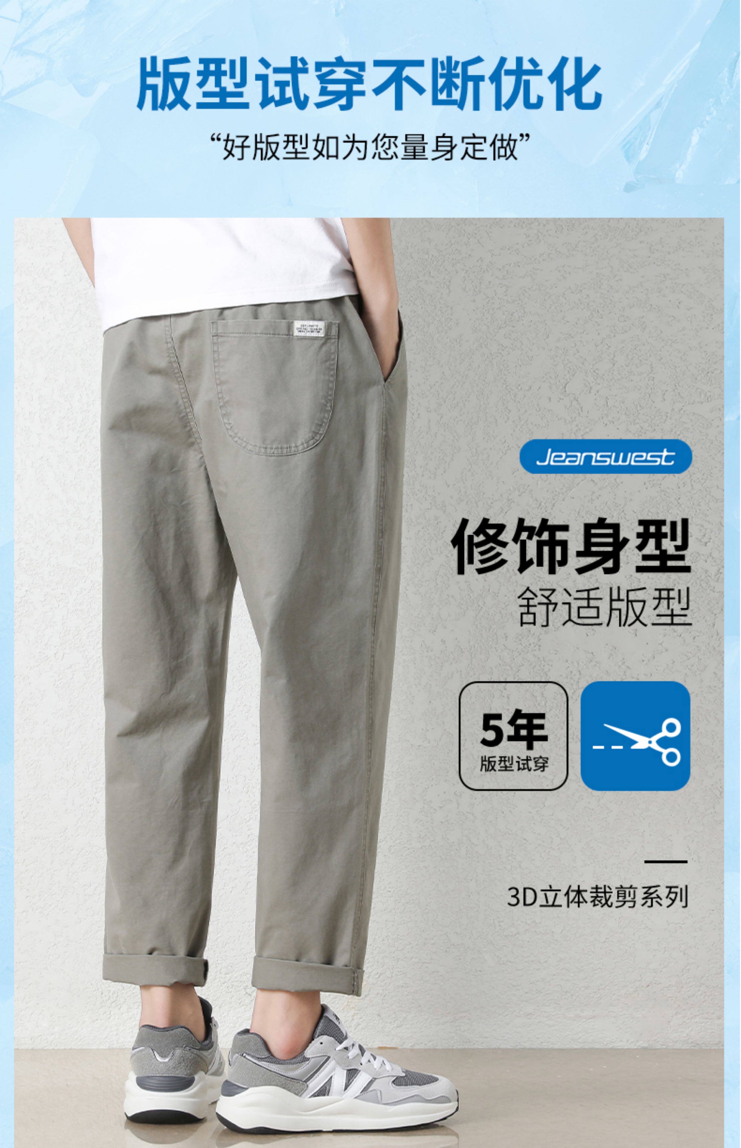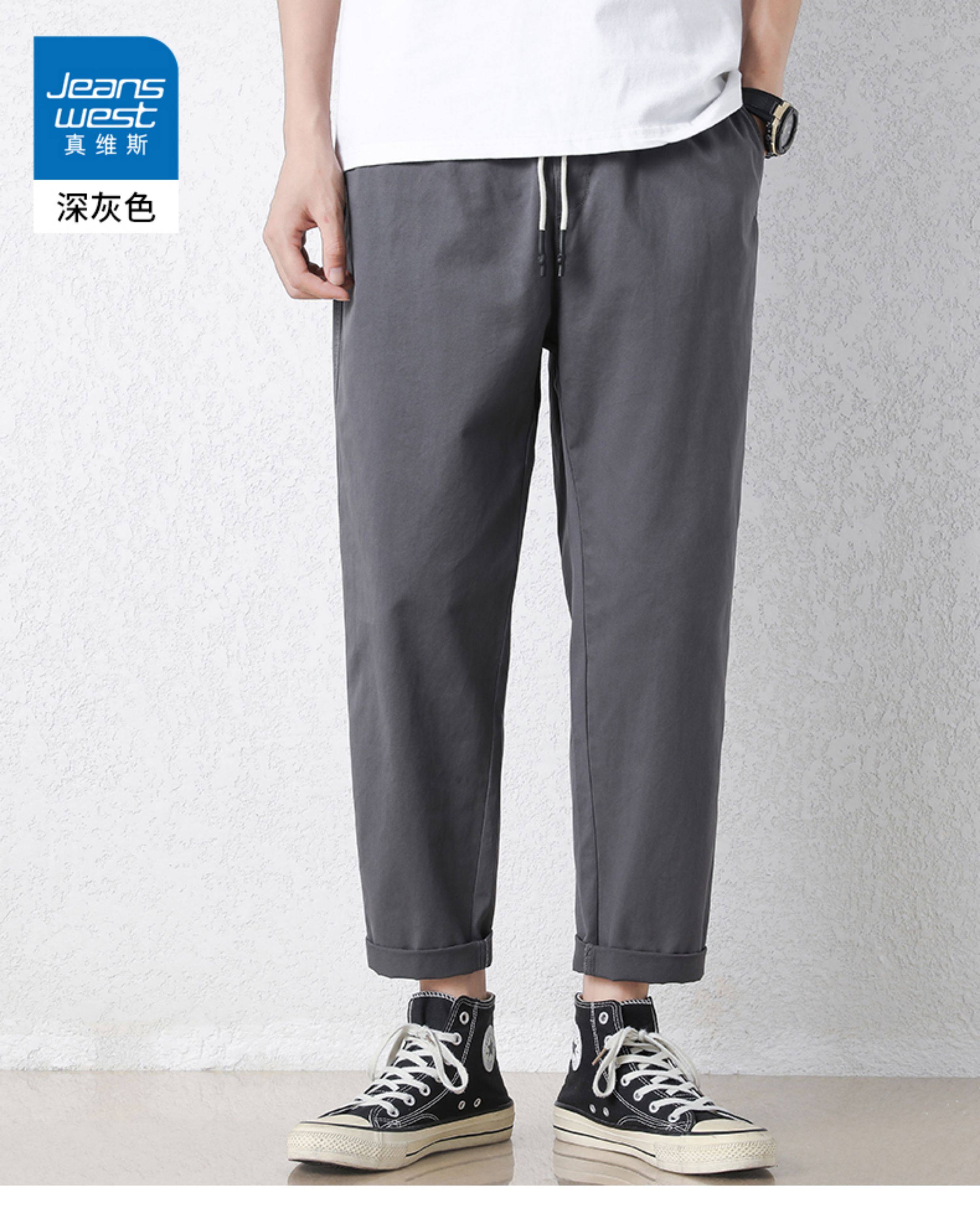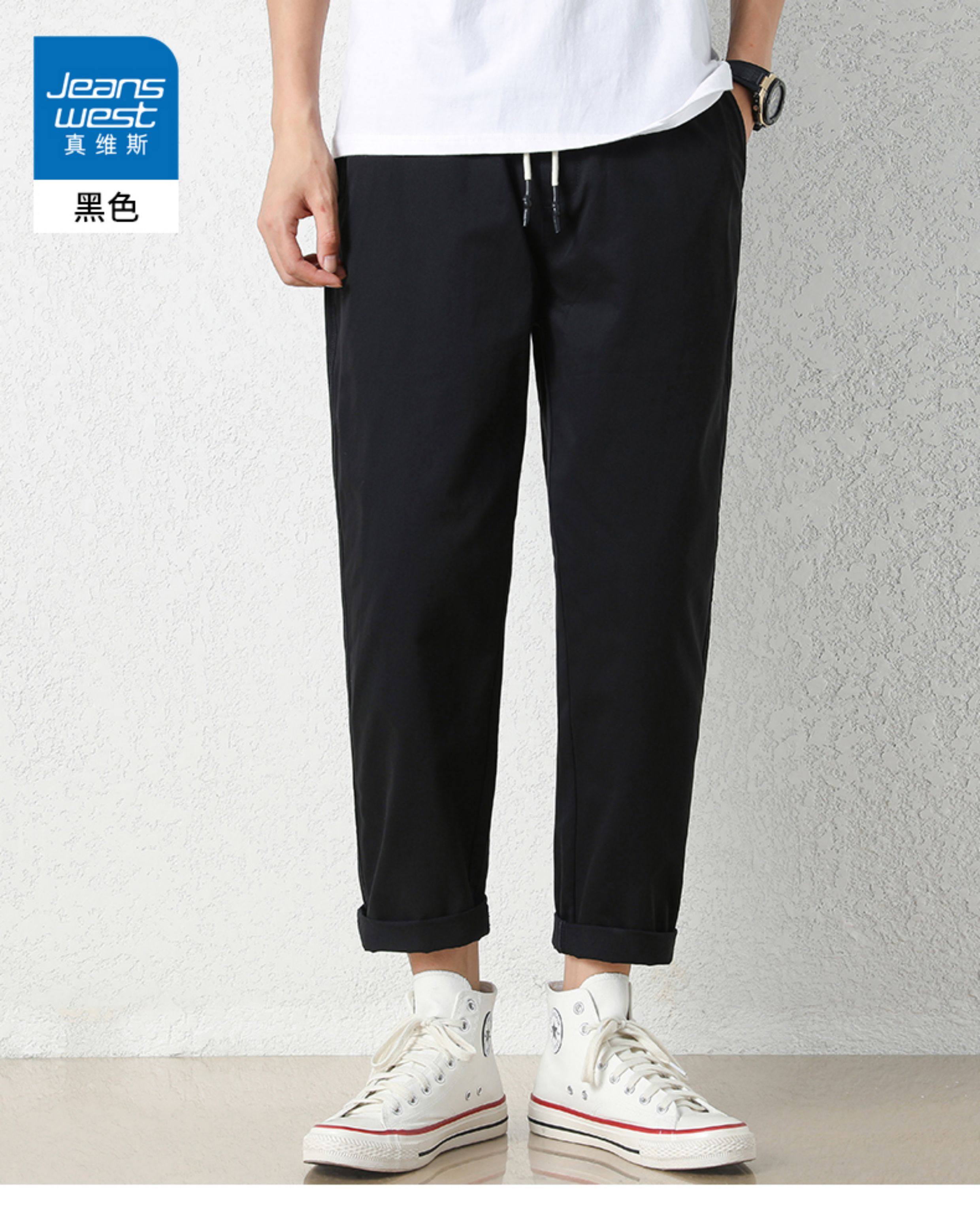 真维斯棉质休闲裤男士夏季新款宽松直筒哈伦裤子百搭工装九分长裤