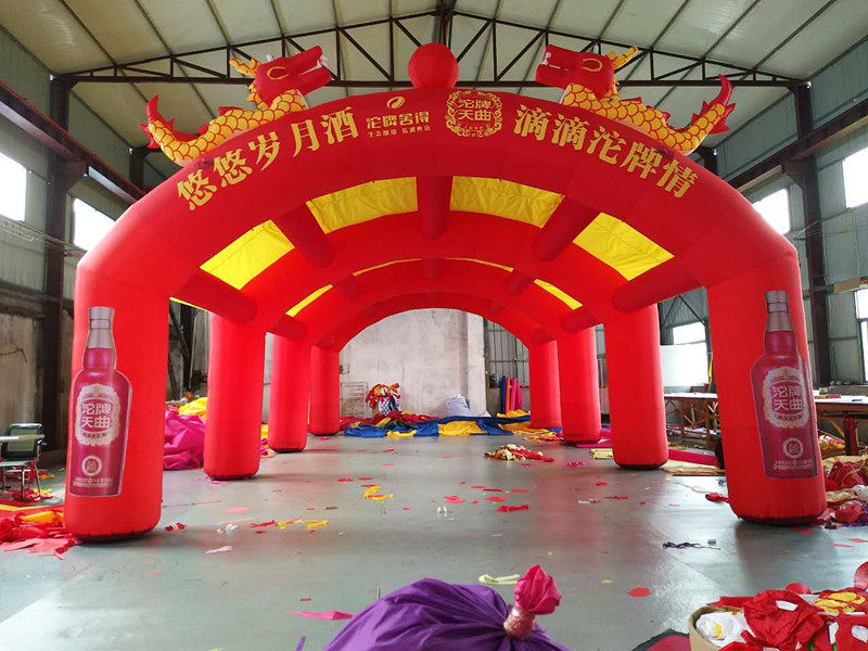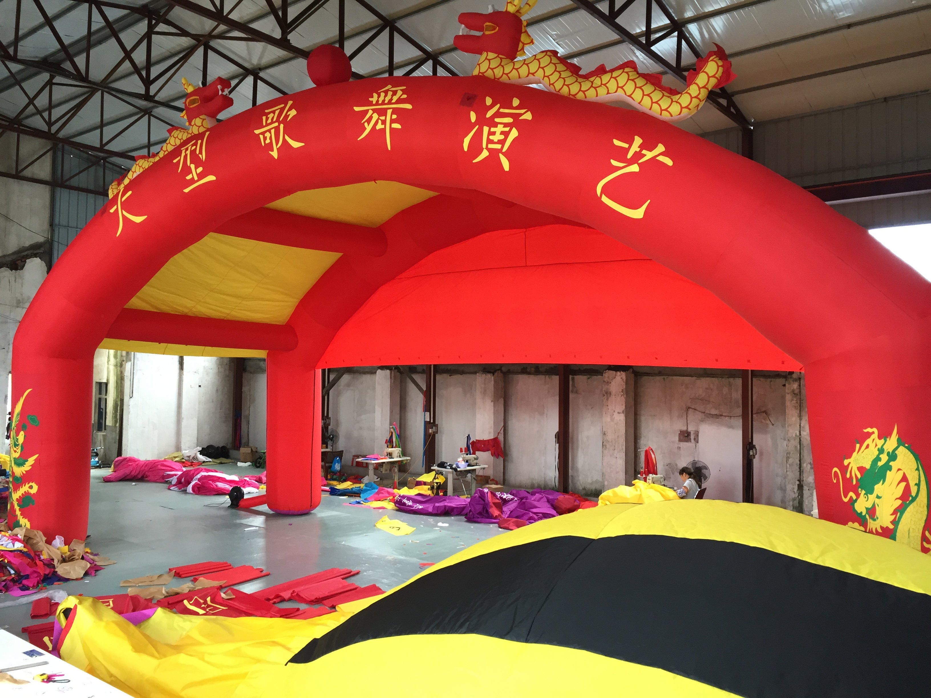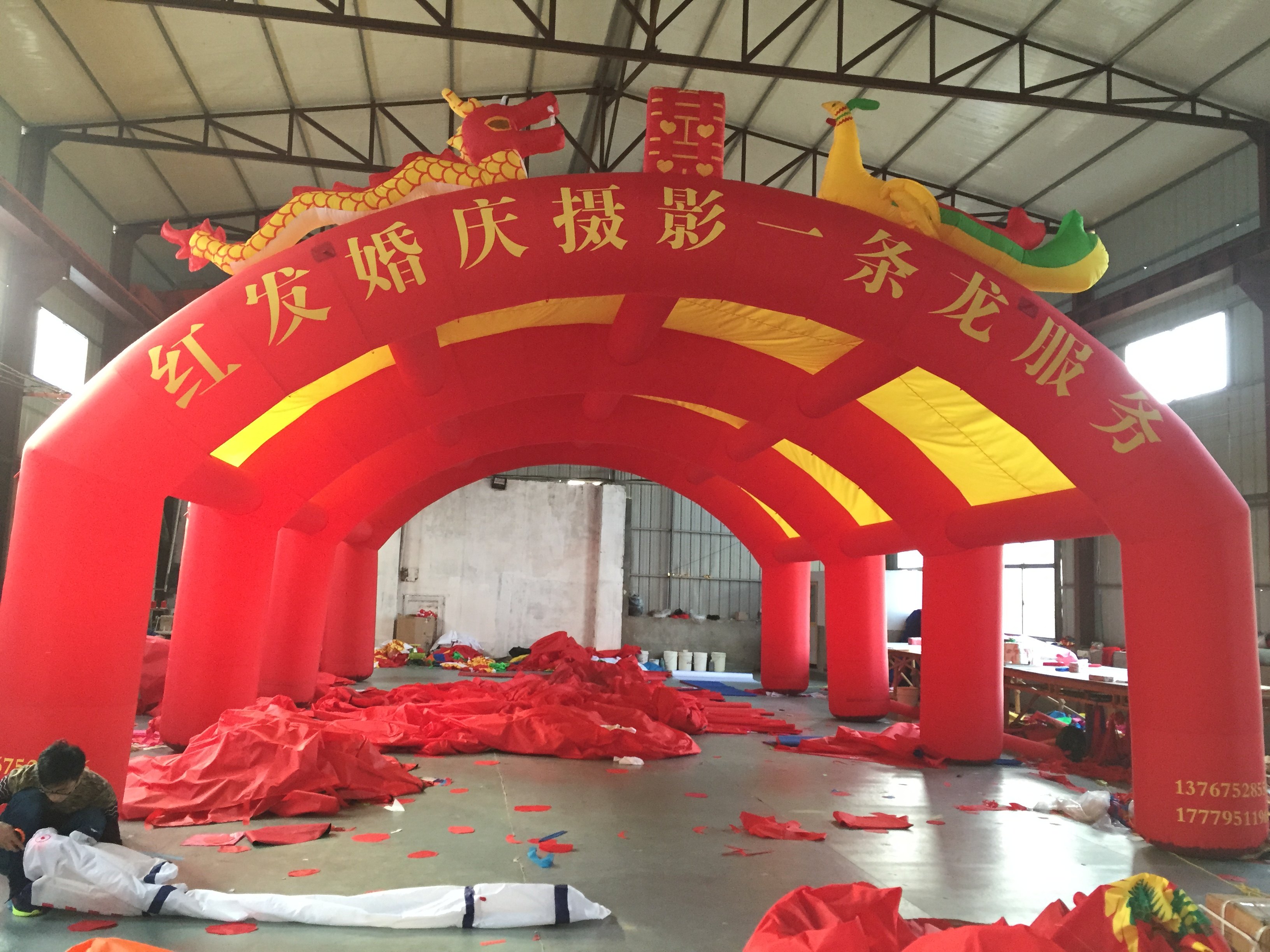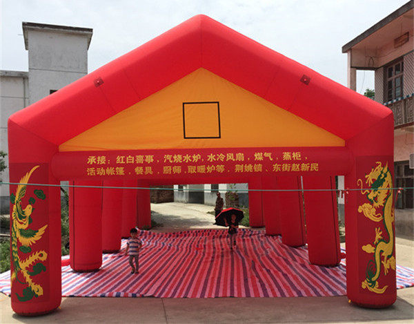 Inflatable Stage Banquet Tent, Outdoor Large Rural Wedding Red and White Celebration Tent, Mobile Wedding Arch Inflatable Model