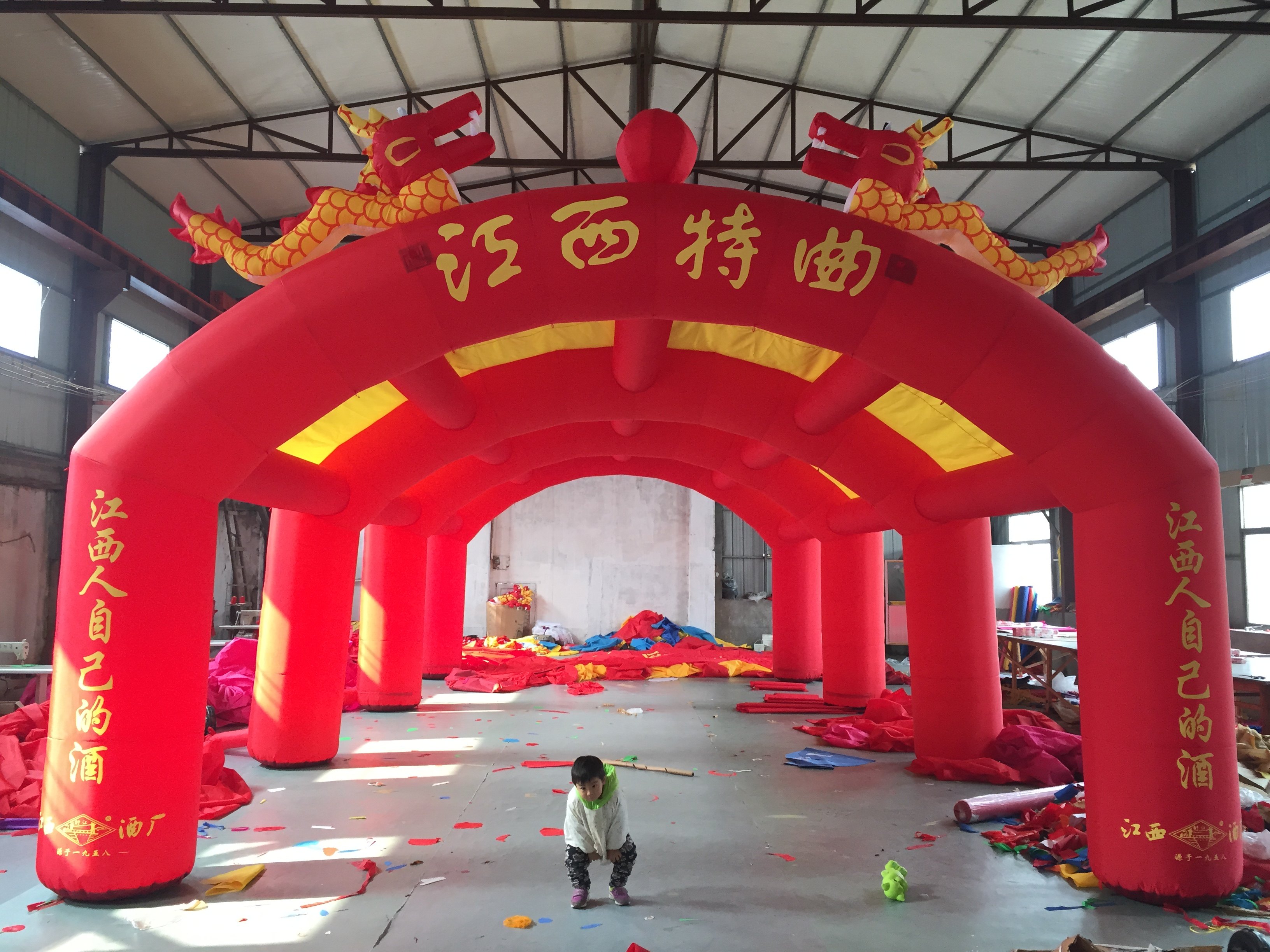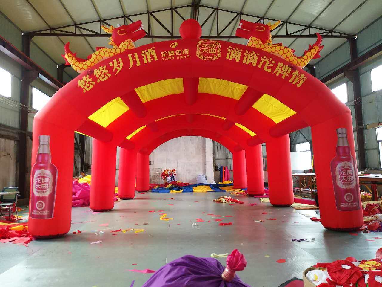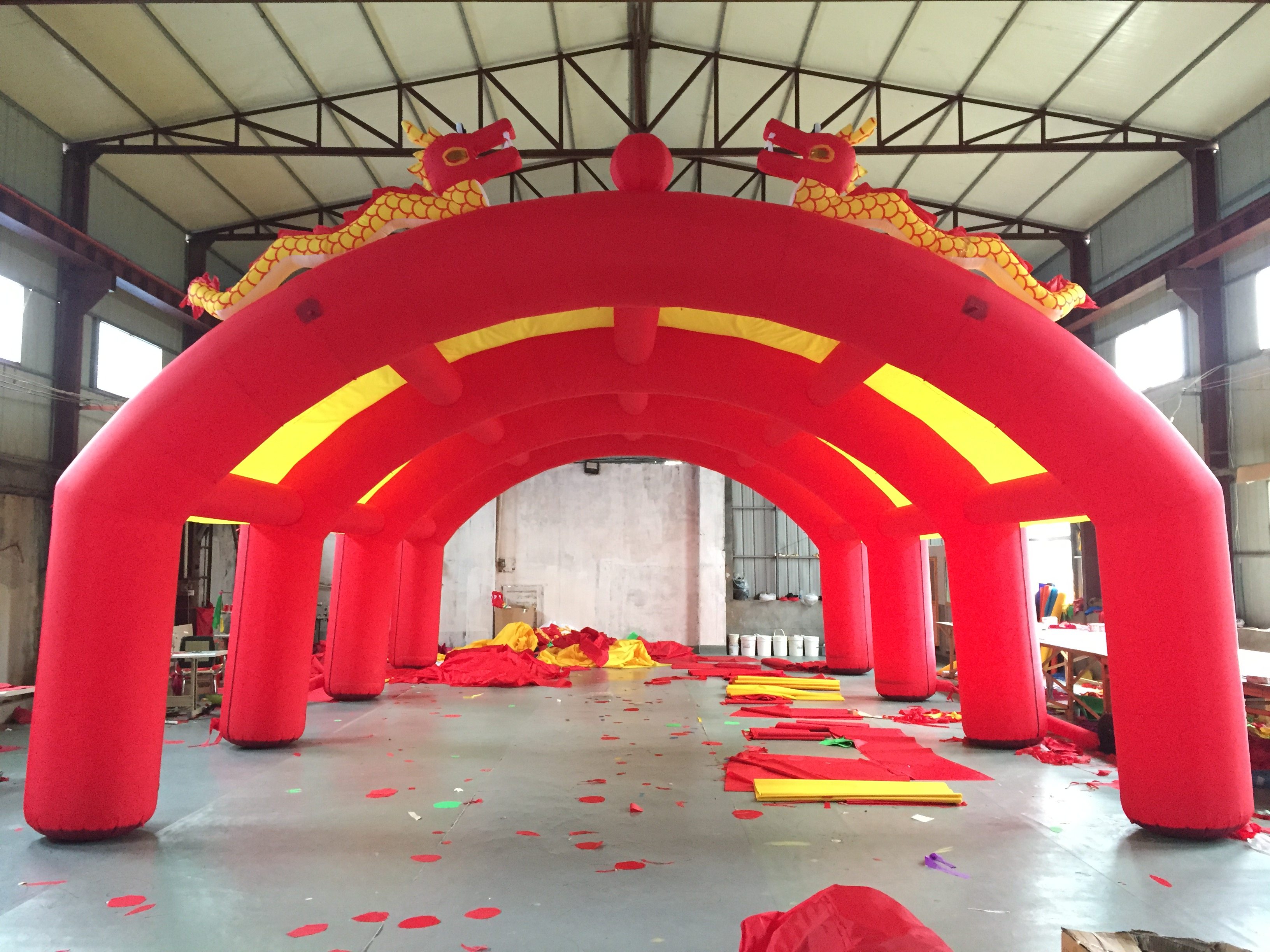 Inflatable Stage Banquet Tent, Outdoor Large Rural Wedding Red and White Celebration Tent, Mobile Wedding Arch Inflatable Model