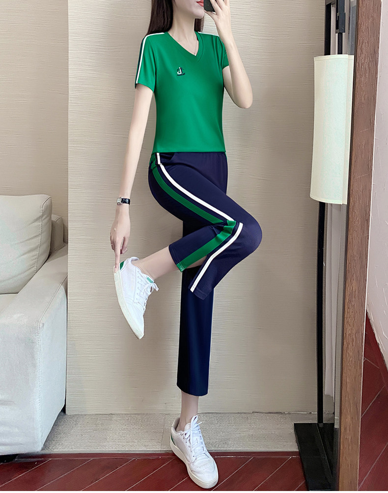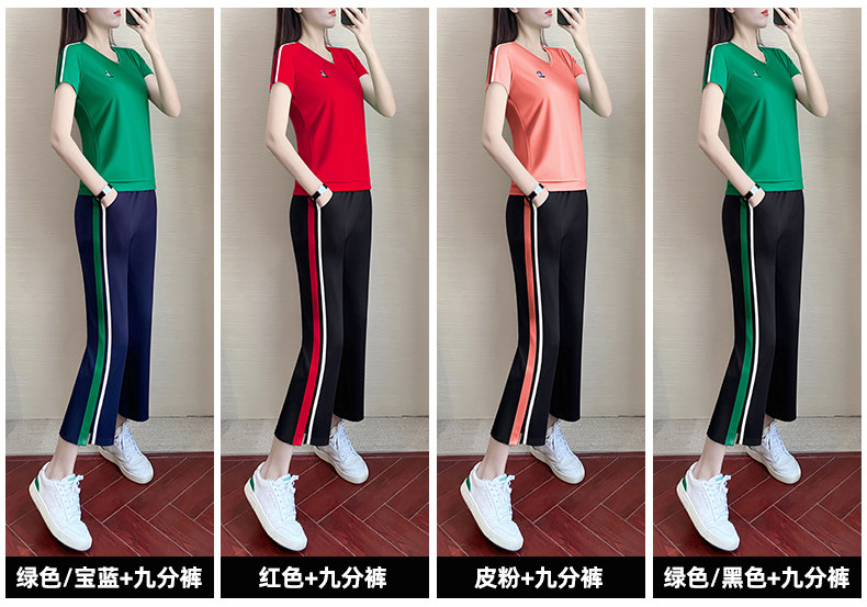 Color Classification Green/Royal Blue + Cropped Pants,Red + Cropped Pants,Leather Powder + Nine-Point Pants,Green/Black + Cropped Pants,Mafei Purple + Nine-Point Pants,Green + Trousers,Red + Trousers,Leather Pink + Trousers,Eggplant Purple + Trousers