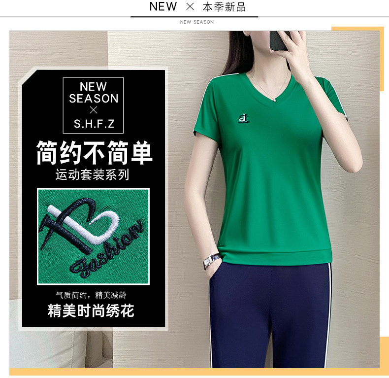 Casual Summer Outfit for Women, Ice Silk Stylish Wide-Leg Cropped Pants, Fashionable Mom's Square Dance Sportswear Two-Piece Set, Thin