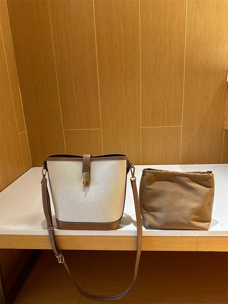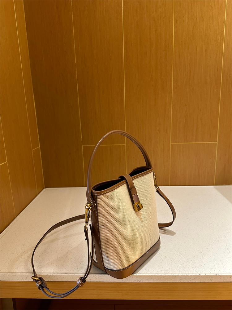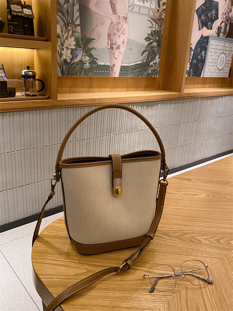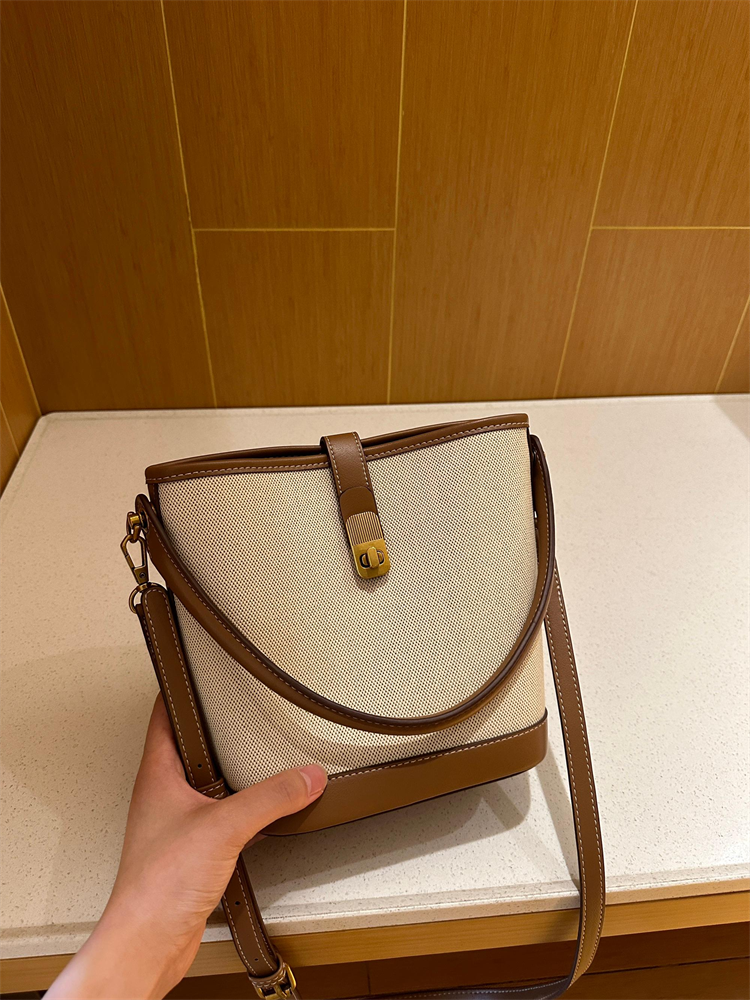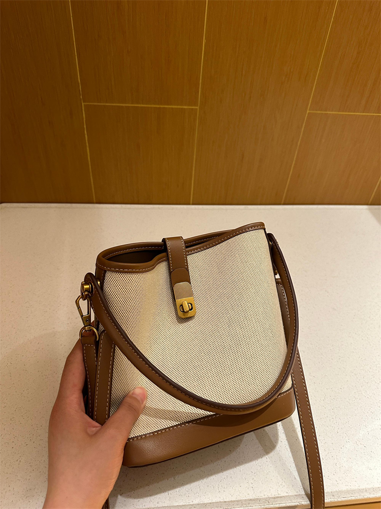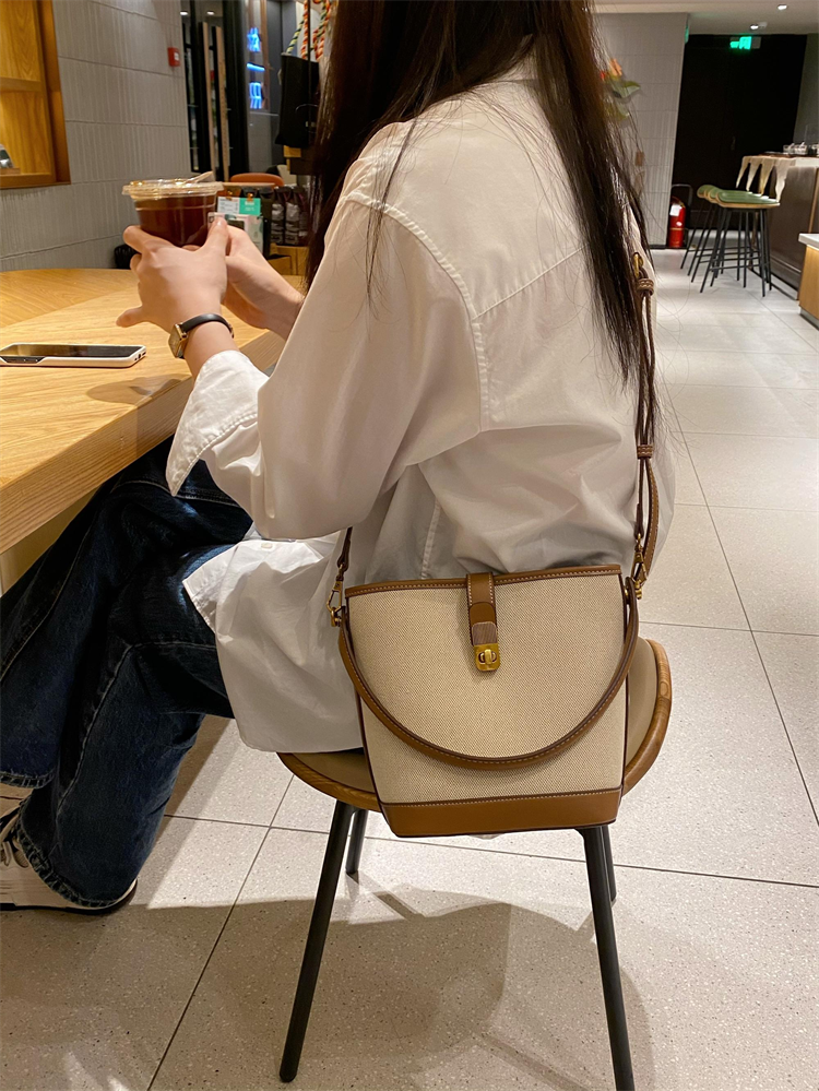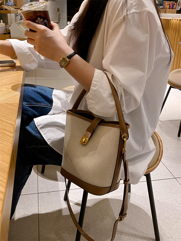 2025新款韩版小桶包帆布拼色包中包小众高级感单肩斜挎包