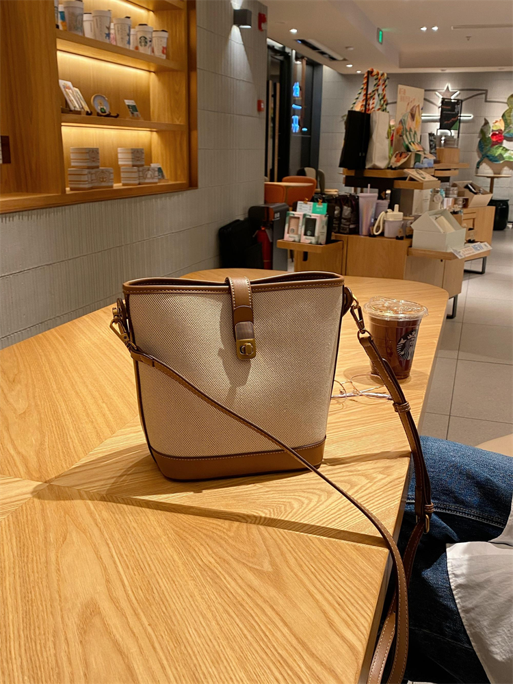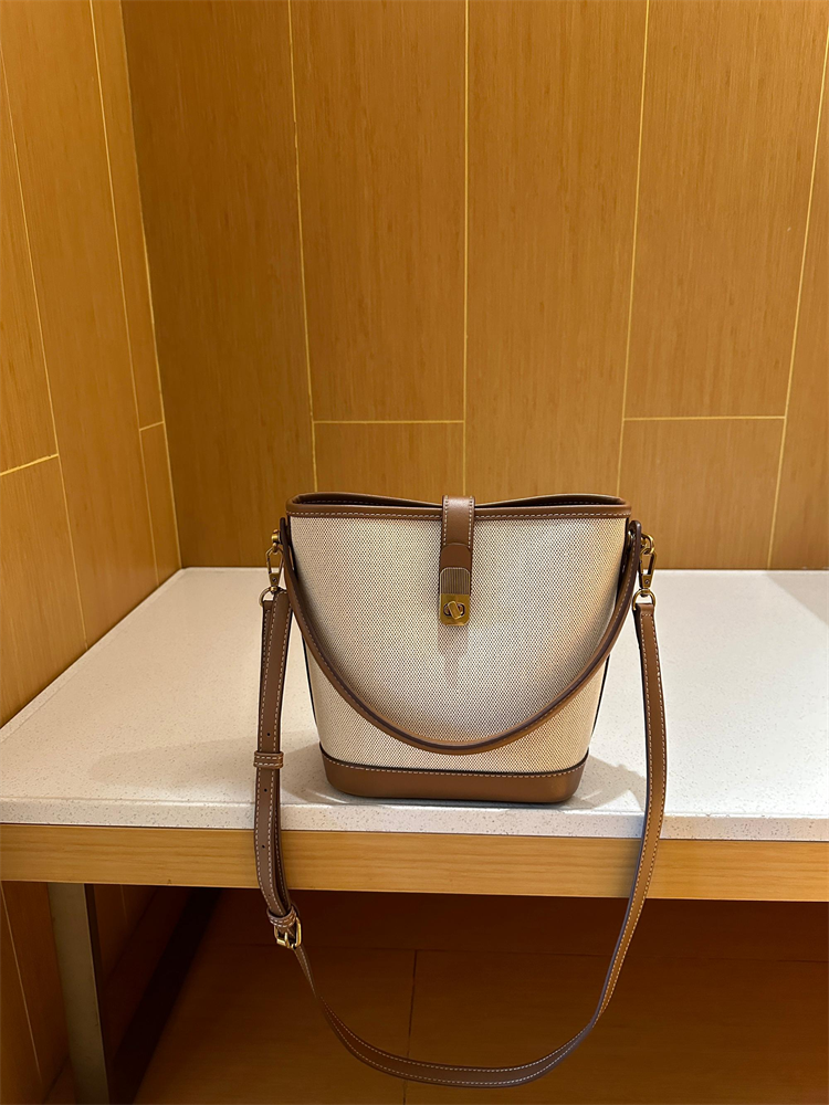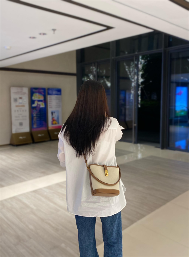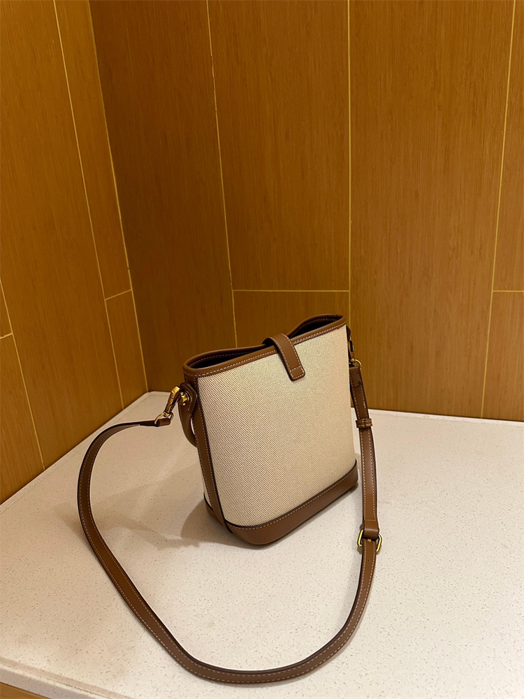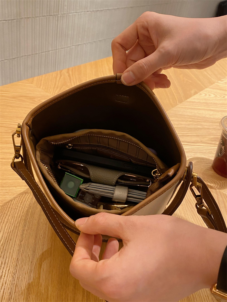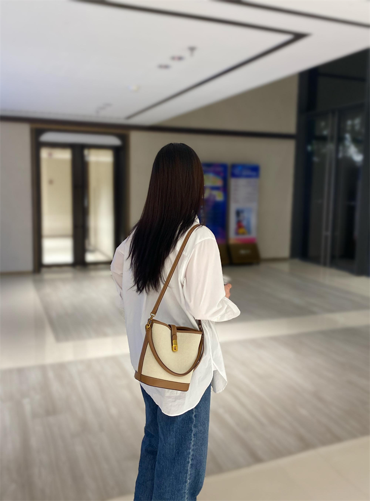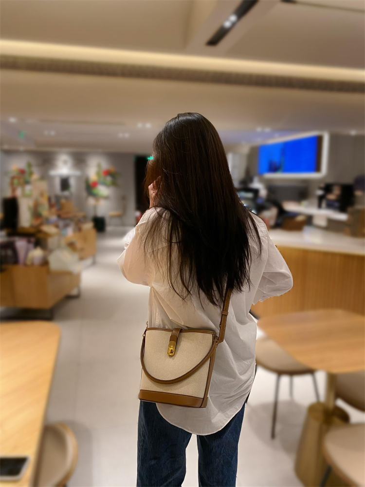 2025新款韩版小桶包帆布拼色包中包小众高级感单肩斜挎包