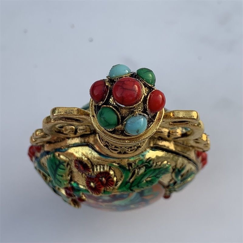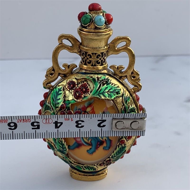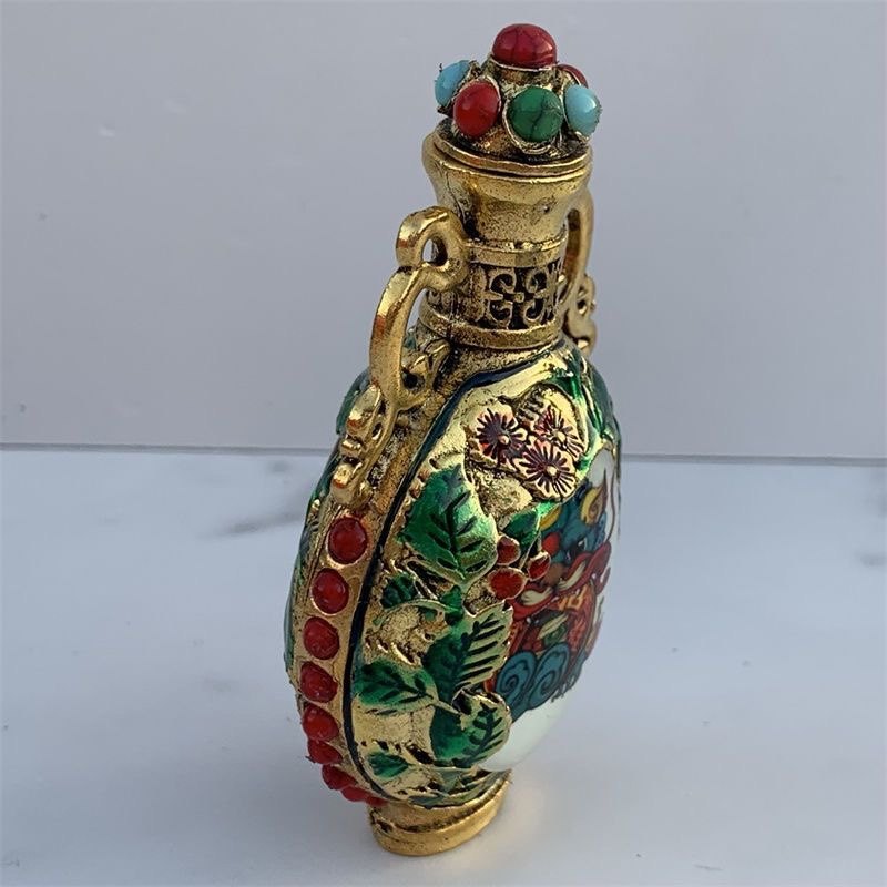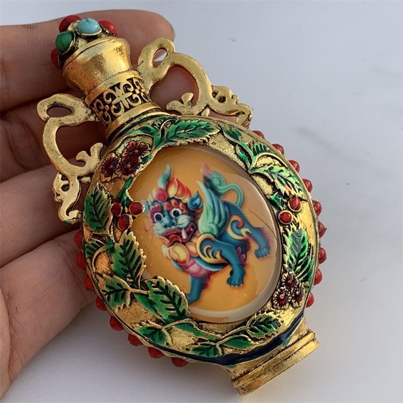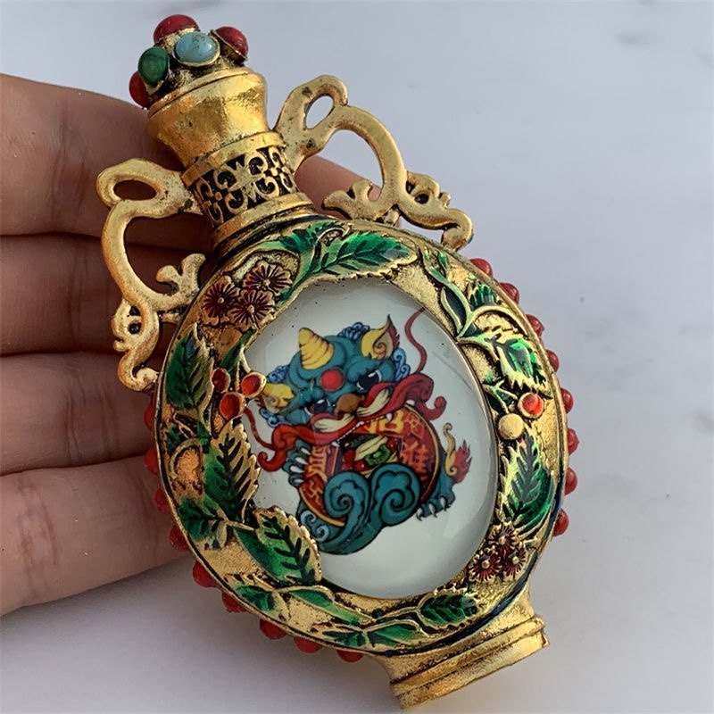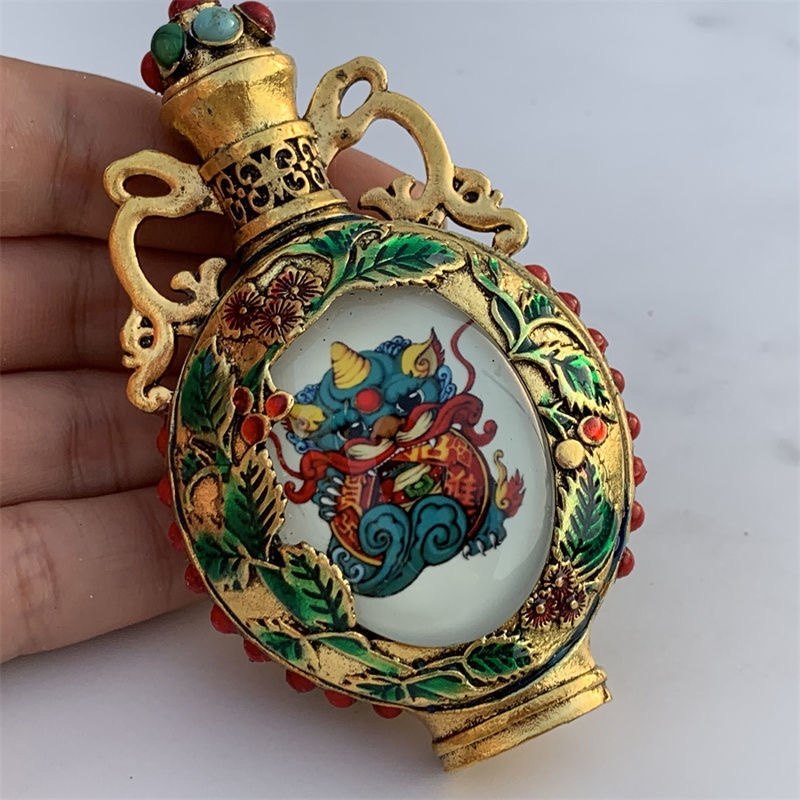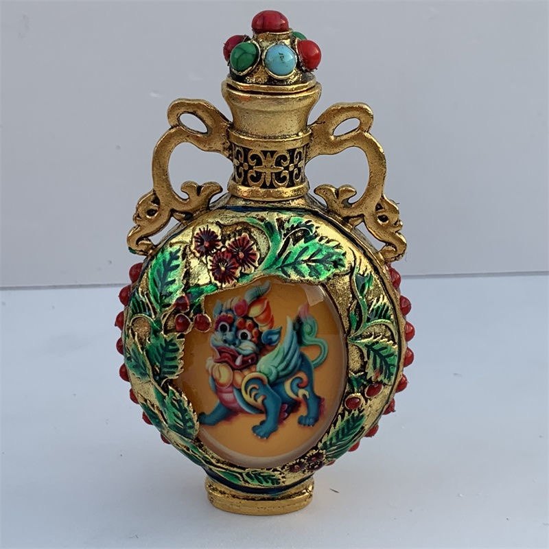 Nueva y antigua botella de rapé pintada de doble cara de cobre puro, botella de rapé luminosa Kirin, artículos antiguos, juego para fumar, regalo de alta gama