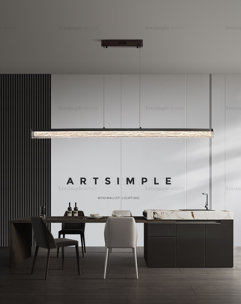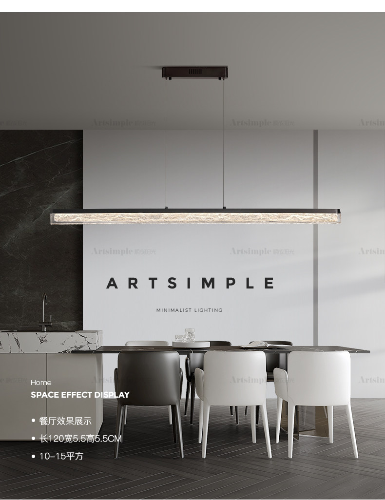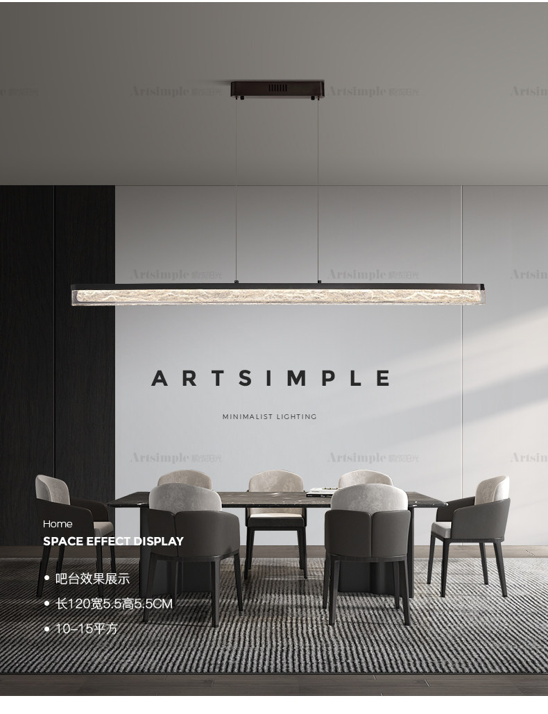 Lámpara de araña de restaurante minimalista italiana totalmente de cobre, moderna, sencilla, ligera, lujosa y de alta gama, mesa de comedor, isla, protección para los ojos, tira de luz larga