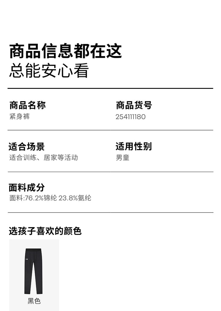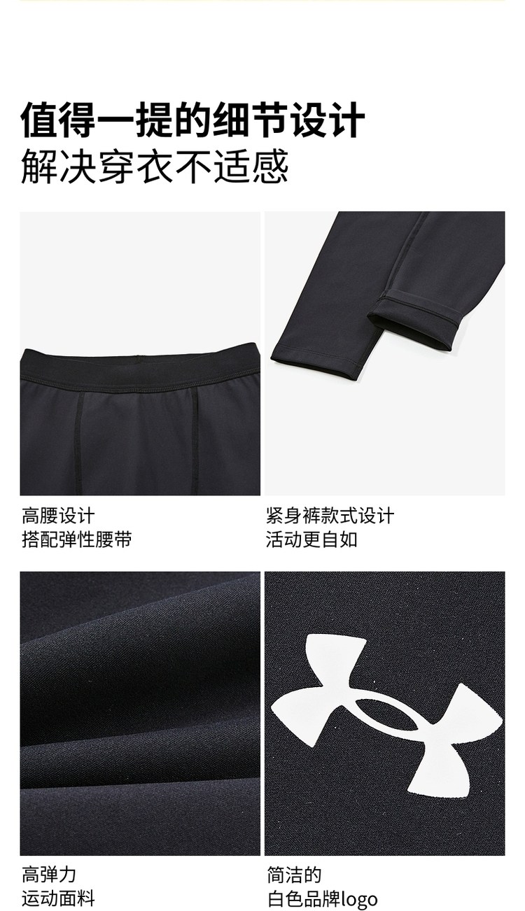 安德玛童装儿童紧身训练长裤篮球打底裤男大童休闲户外骑行运动裤