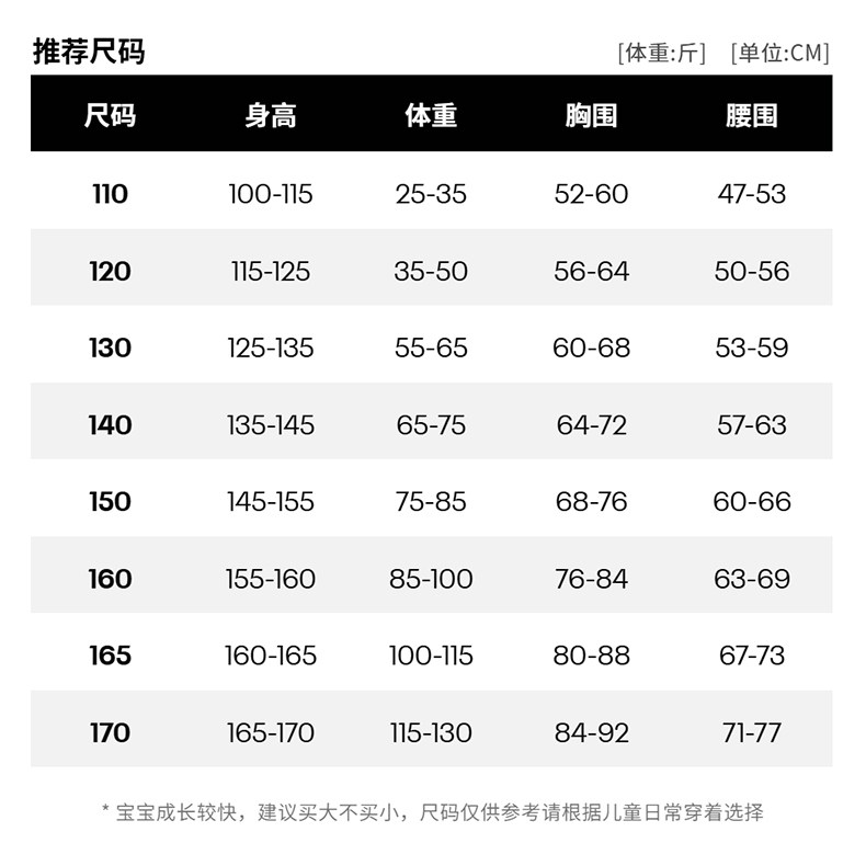 China (cm) 160-165/84-86 165-170 / 88-90 167-172 / 92-96 168-173 / 98-102 170-176 / 106-110