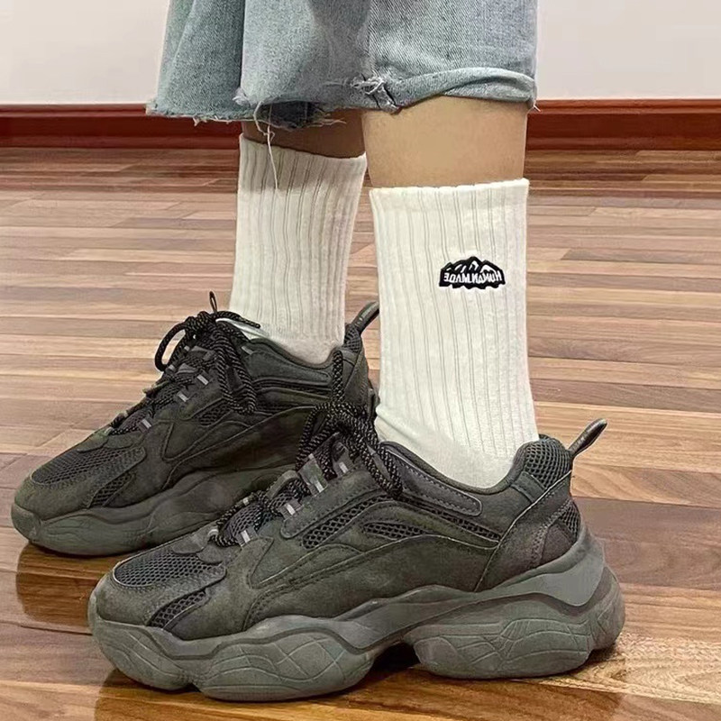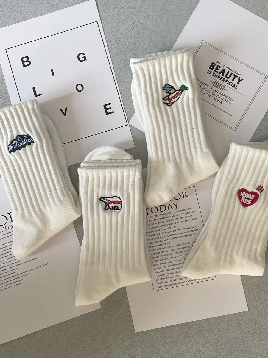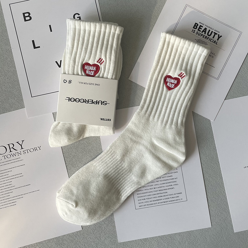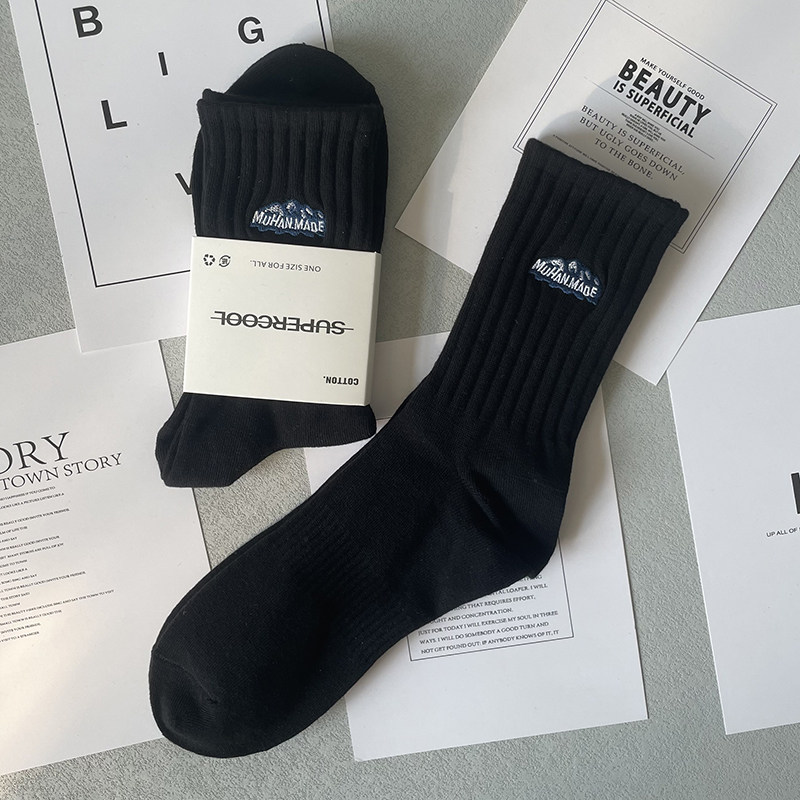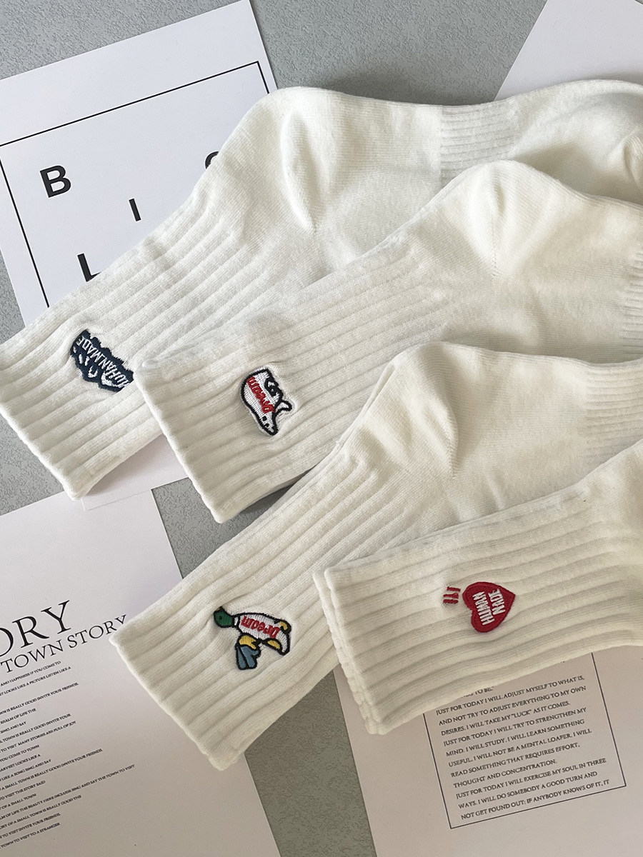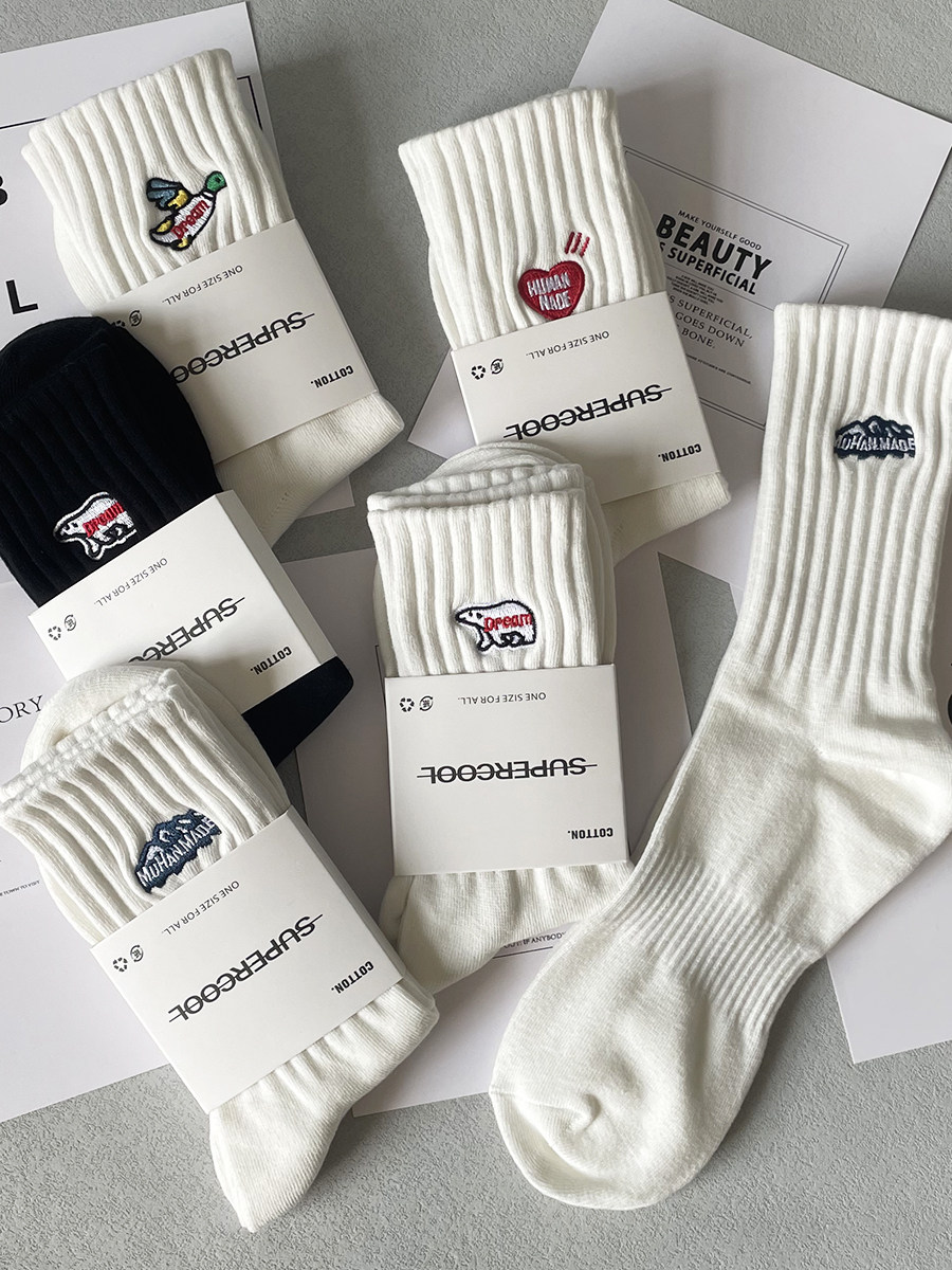日本5双袜子男女纯棉防臭中筒袜情侣刺绣学生百搭ins运动长筒袜潮