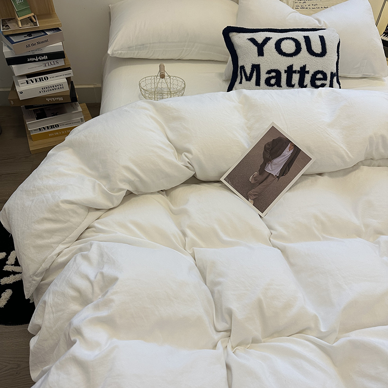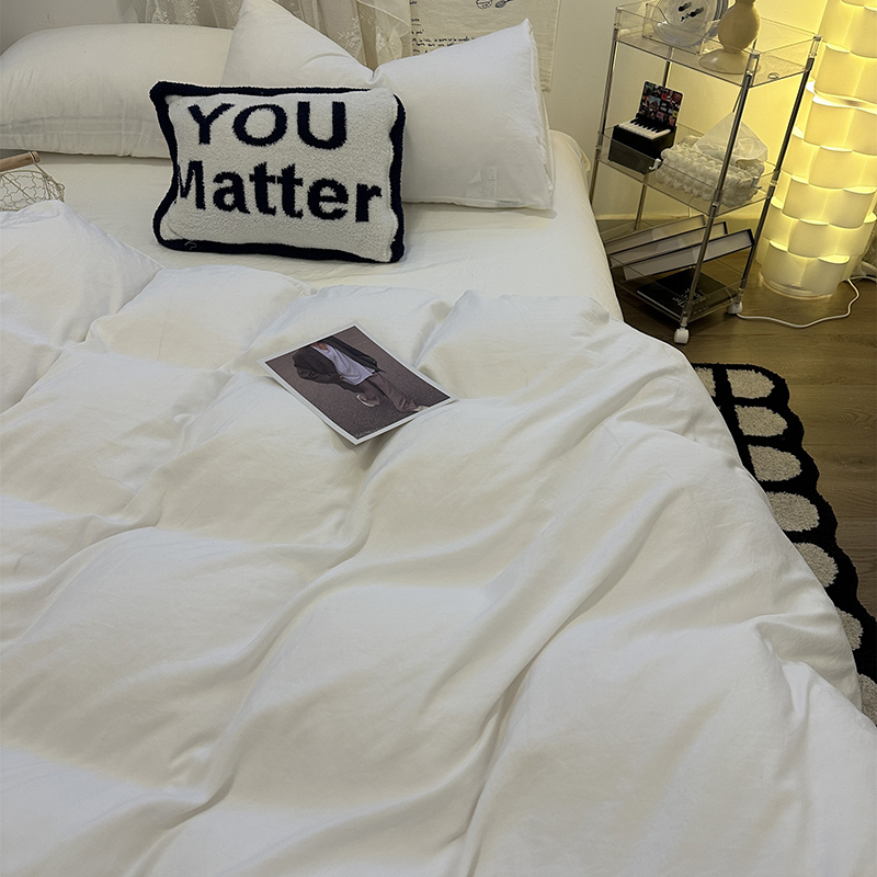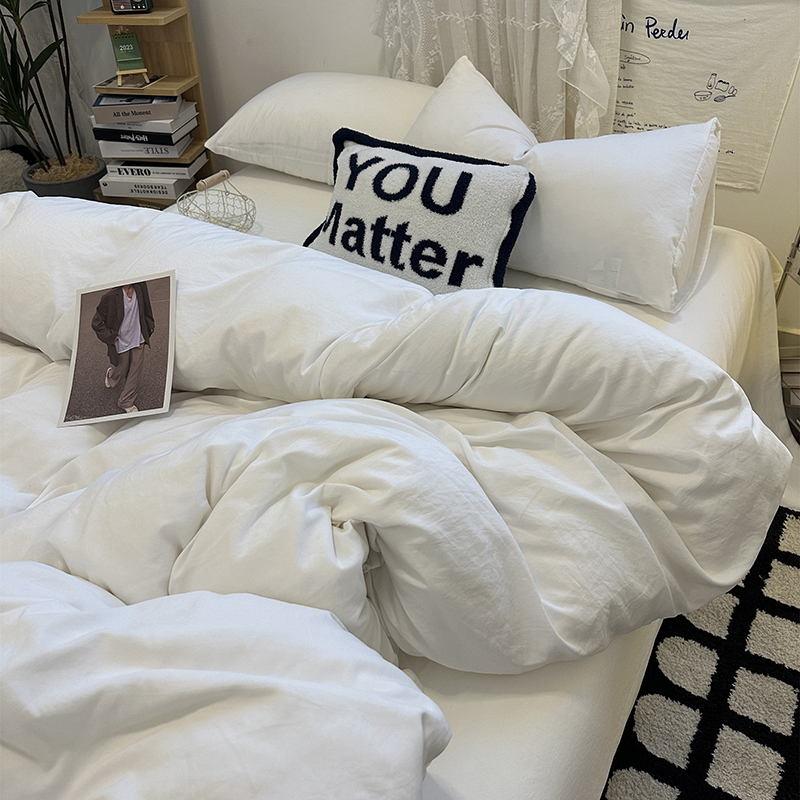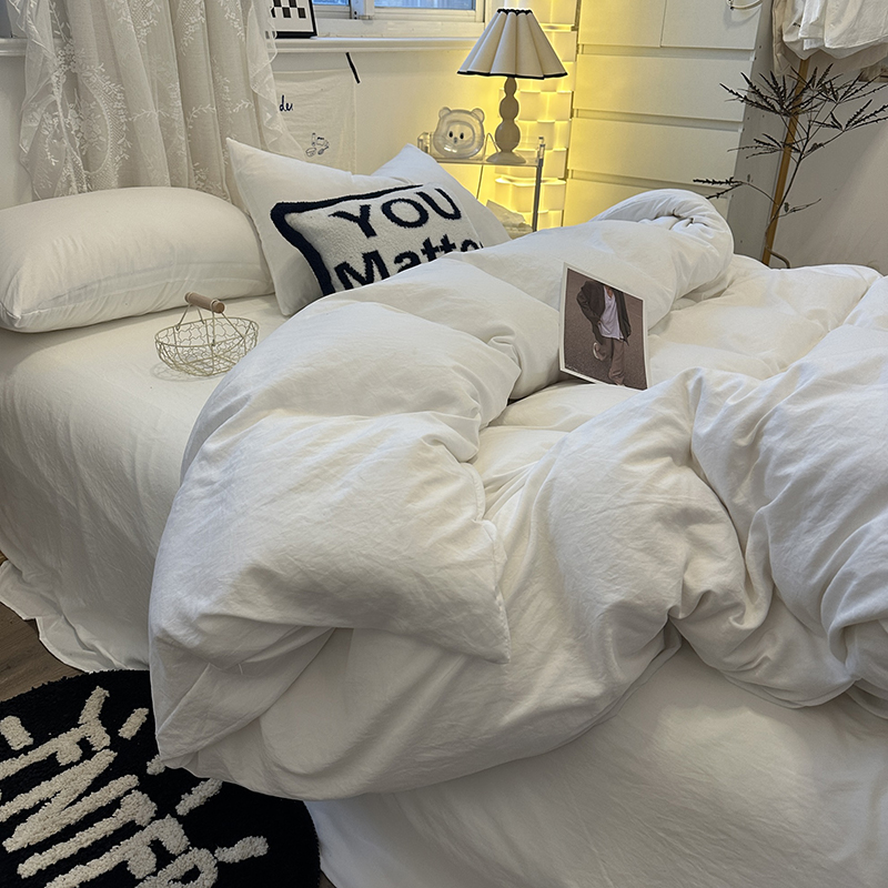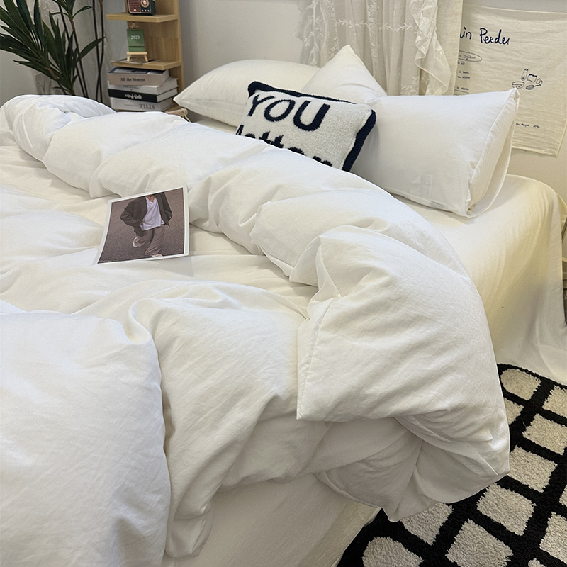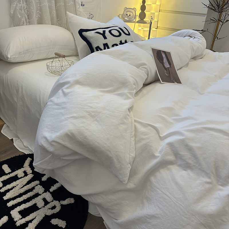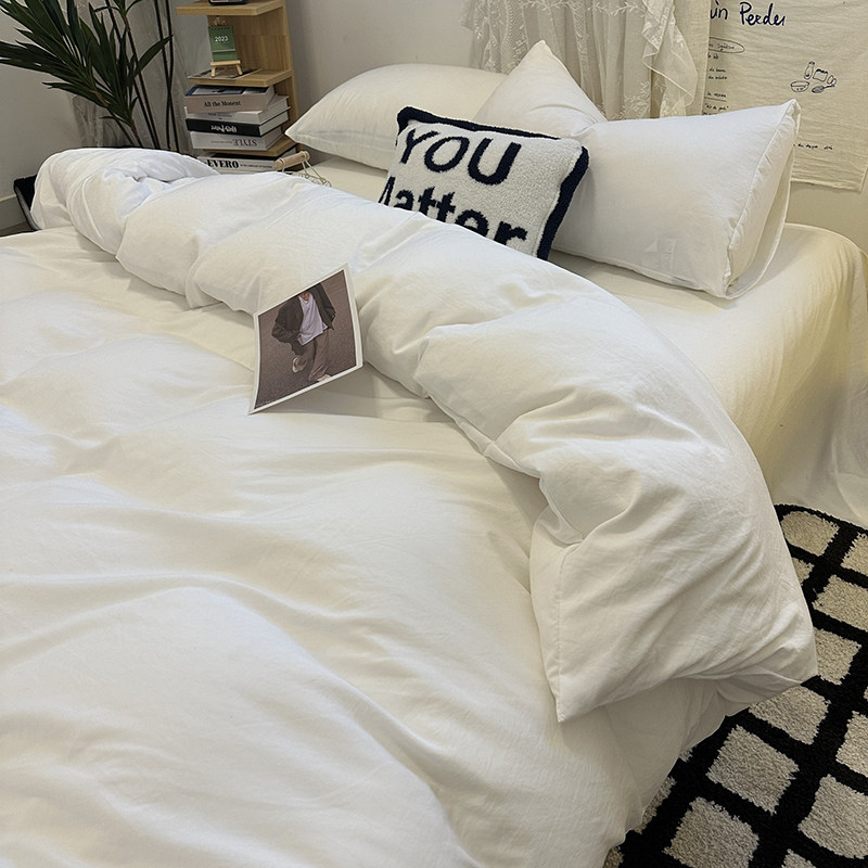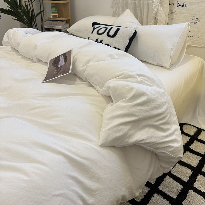 酒店宾馆床单四件套民宿床上用品白色被套水洗棉纯白色单人三件套