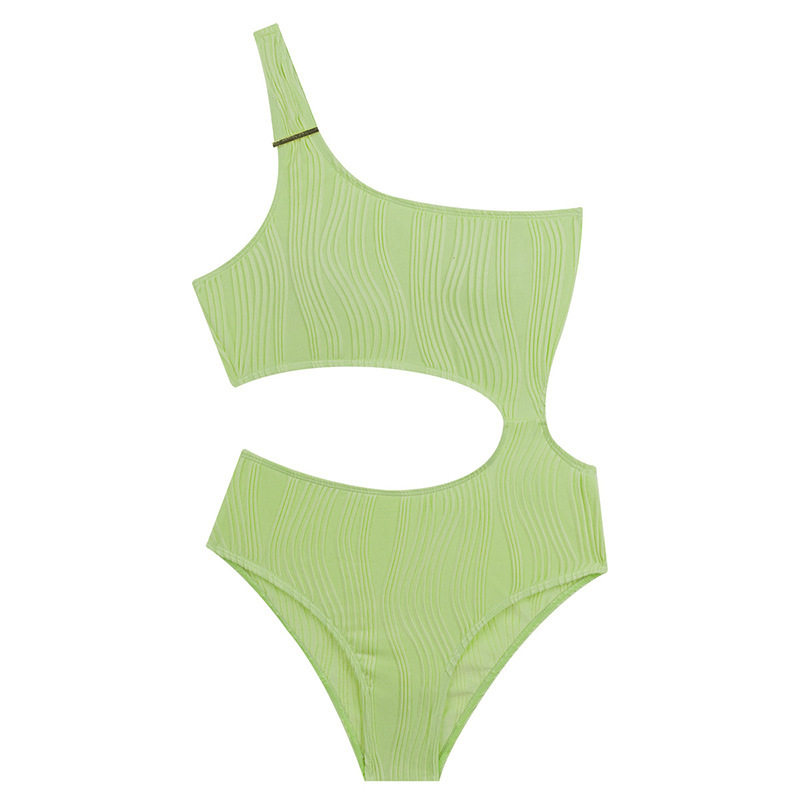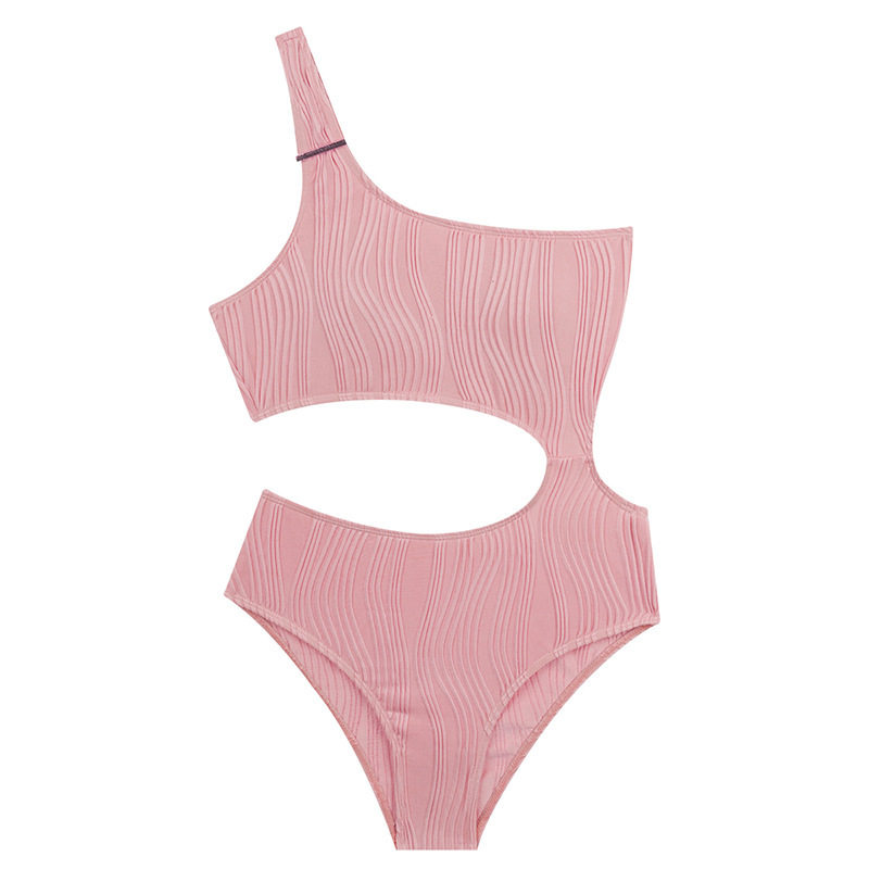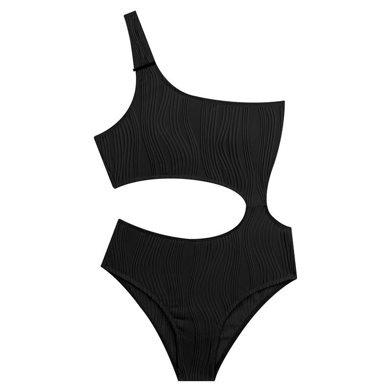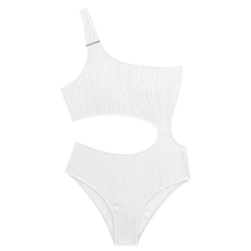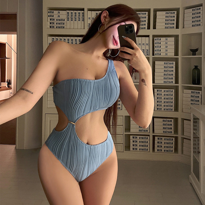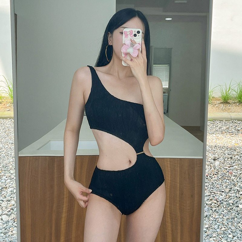 高级感连体斜肩比基尼泳衣女士性感纯欲露腰度假泡温泉装2025新款