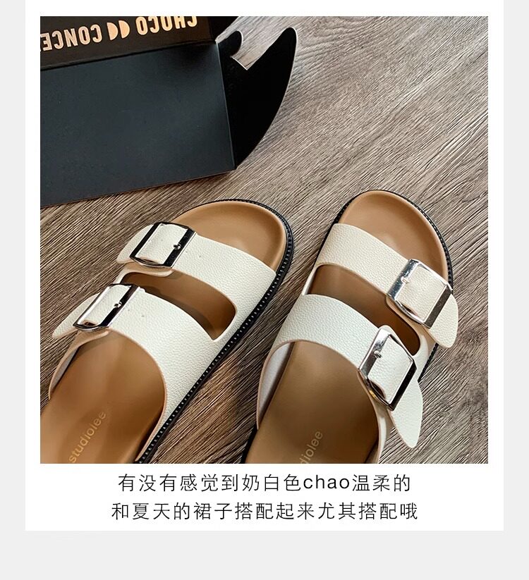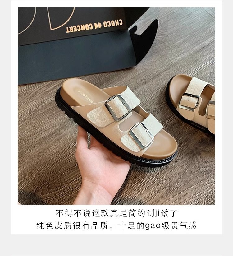 拖鞋女夏外穿时尚2025新款仙女风配裙子高级感厚底一字拖勃肯凉鞋