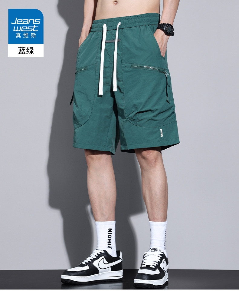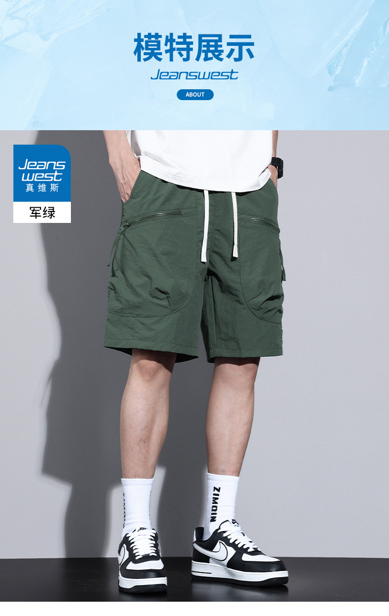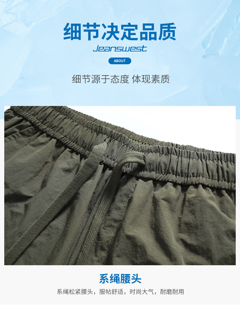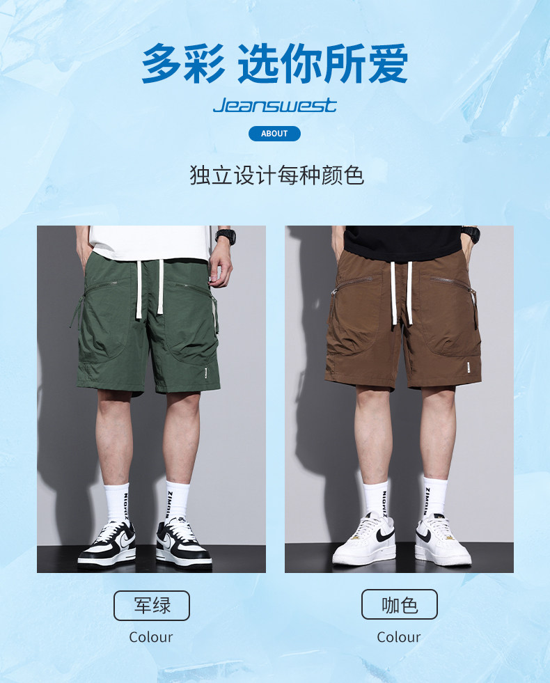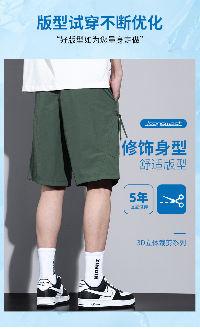 Jeanswest Workwear Casual Shorts for Men, Summer Thin Loose Fit Sports Large Size Quick-Drying Ice Silk Five-Point Mid-Length Pants