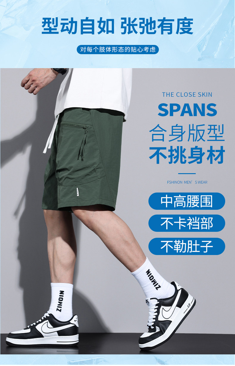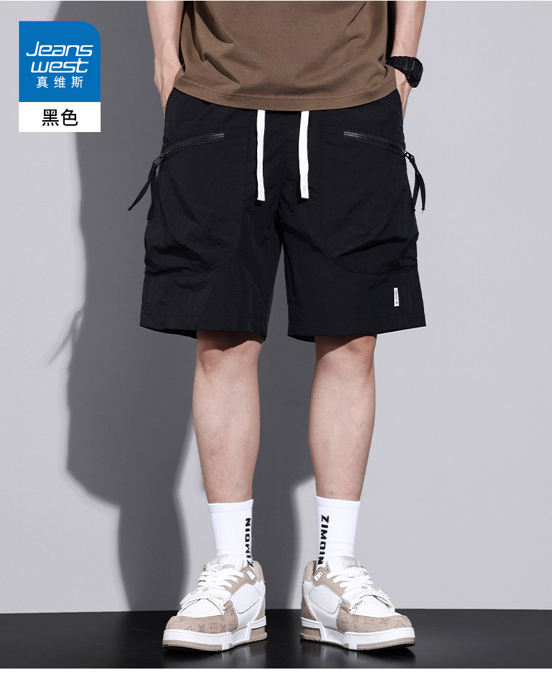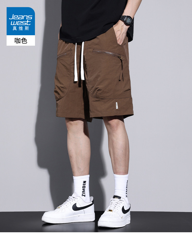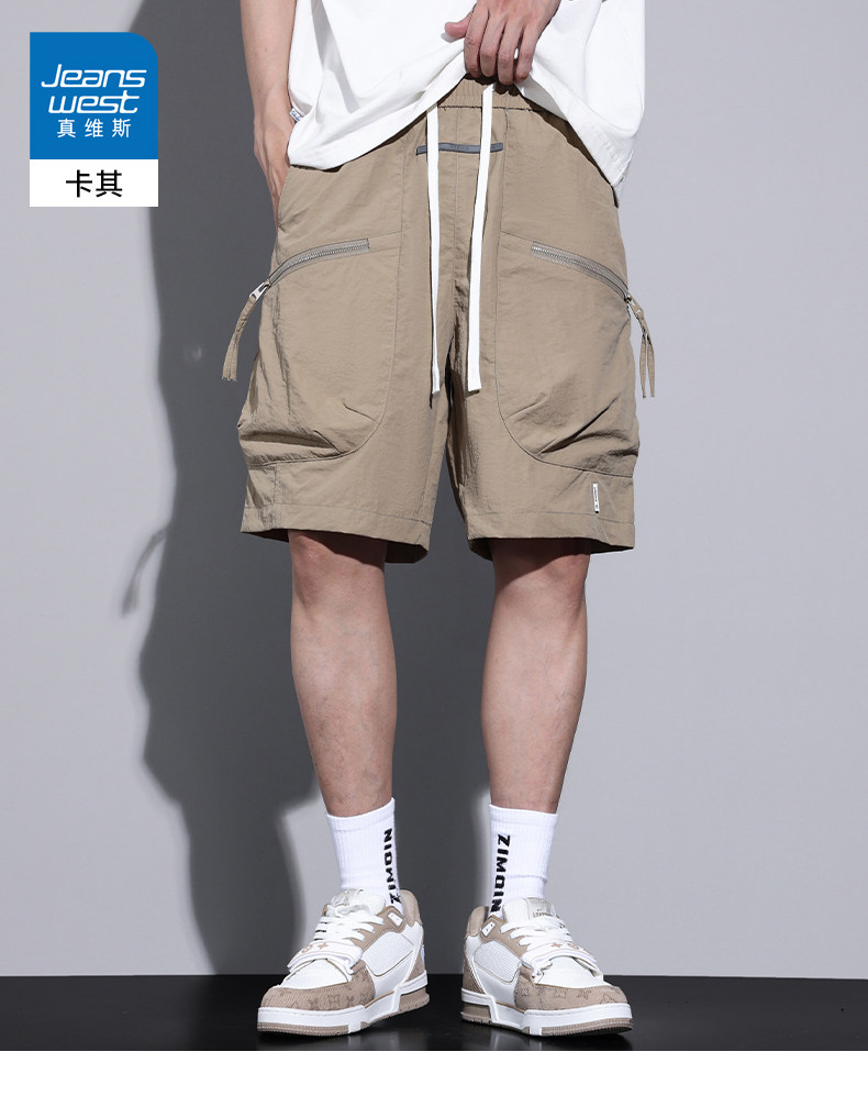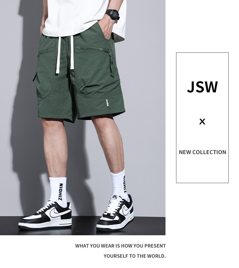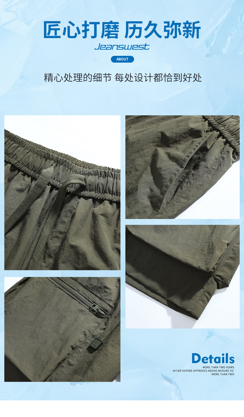 Jeanswest Workwear Casual Shorts for Men, Summer Thin Loose Fit Sports Large Size Quick-Drying Ice Silk Five-Point Mid-Length Pants