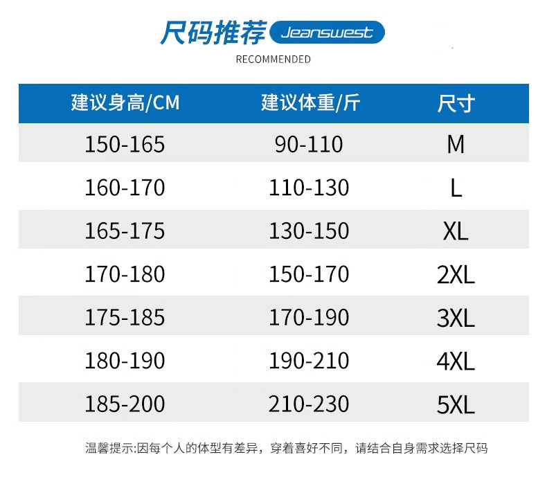China (cm) 165 / 88-90 170 / 96-98 175 / 108-110 180 / 118-122 185 / 126-130