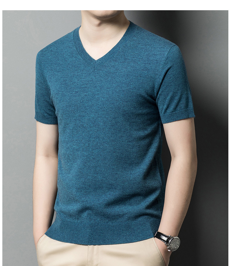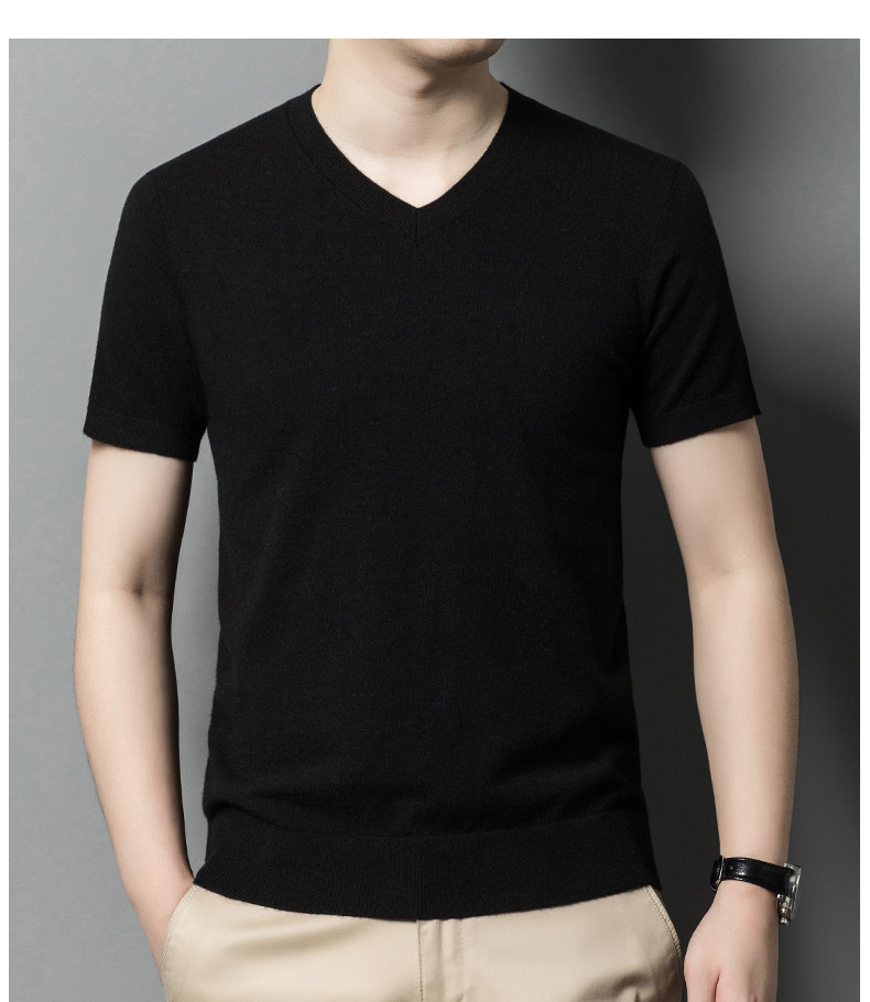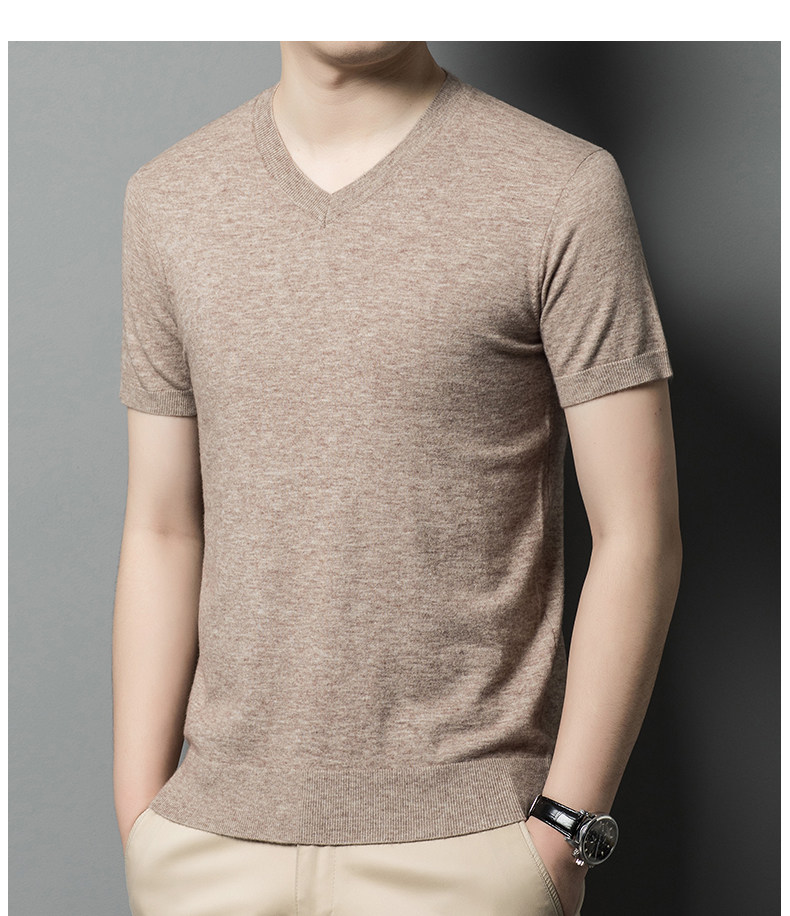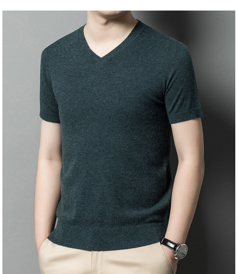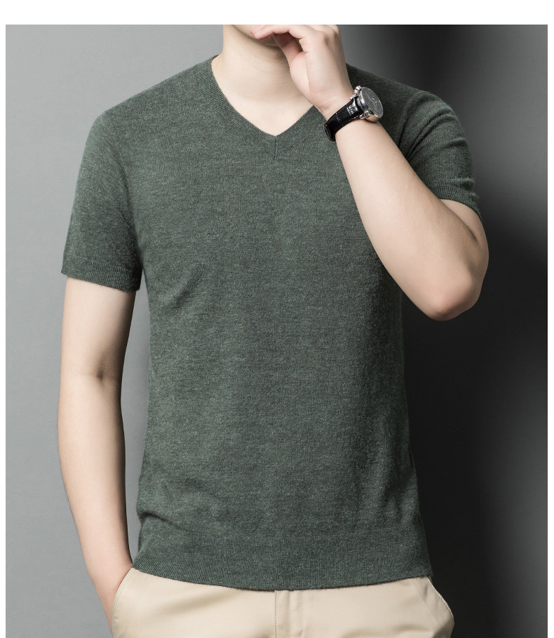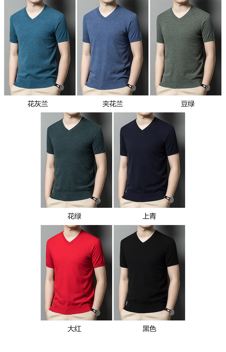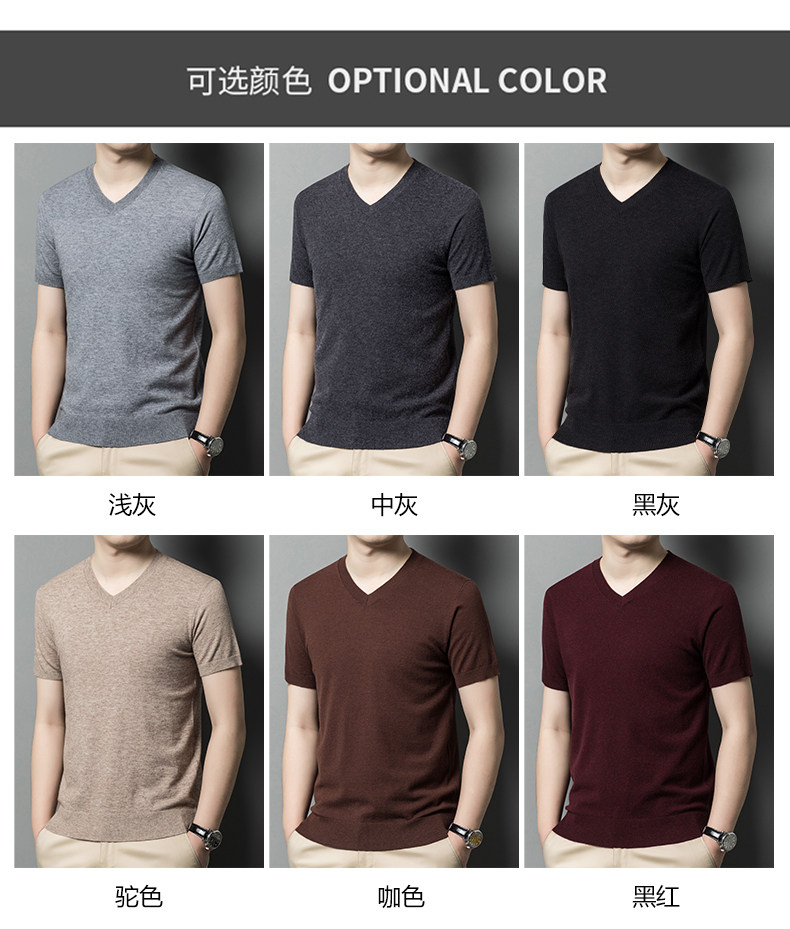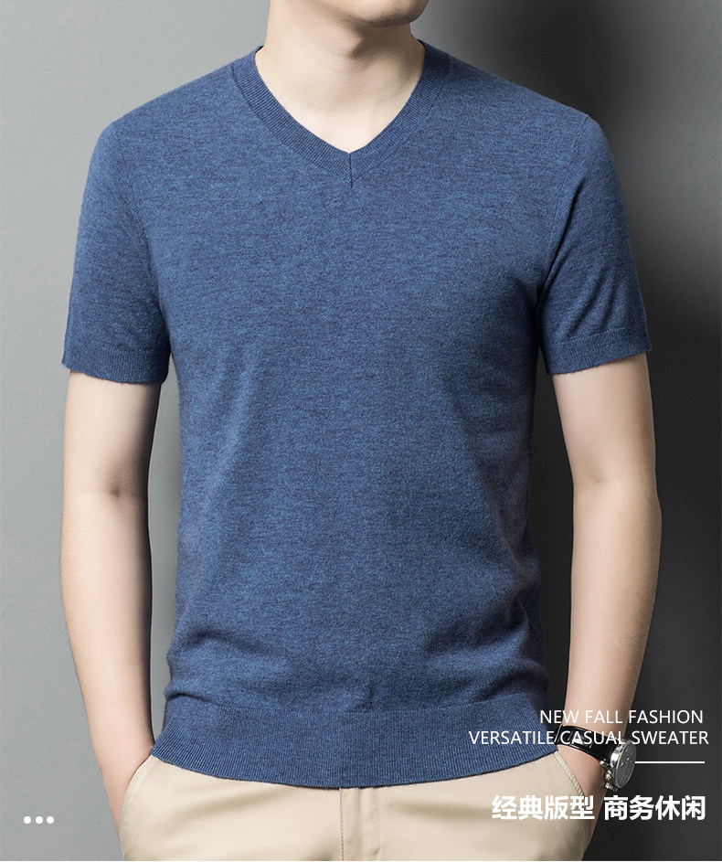 2025新款濮院羊毛衫男商务高端V领短袖毛衣男士半袖打底羊绒衫薄
