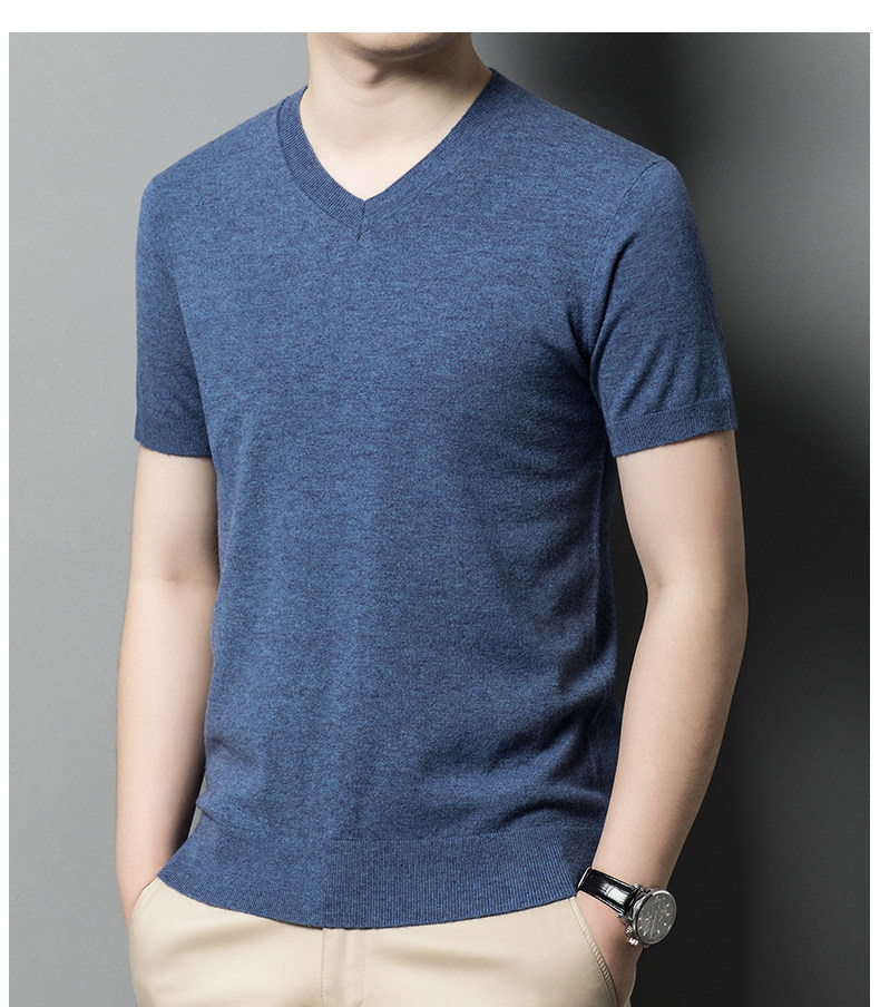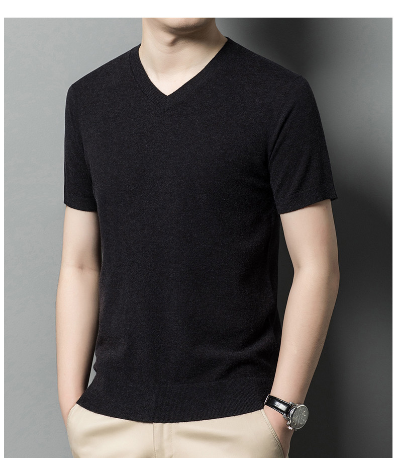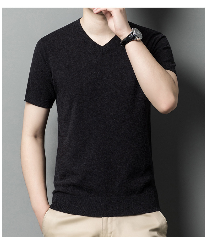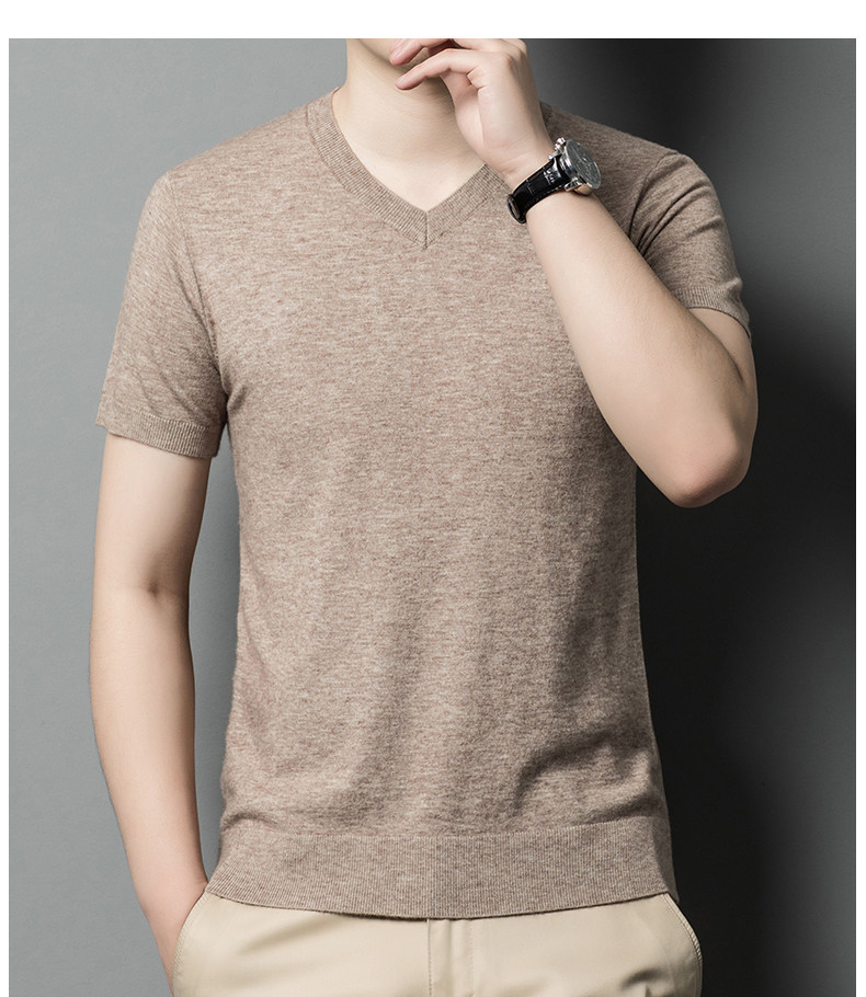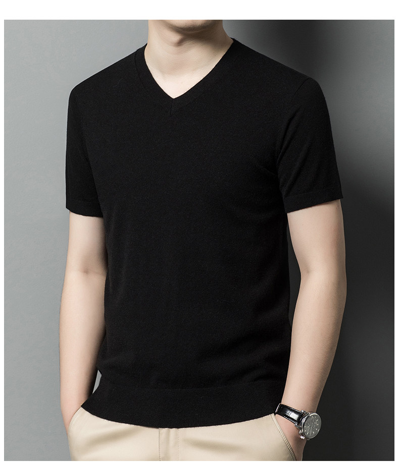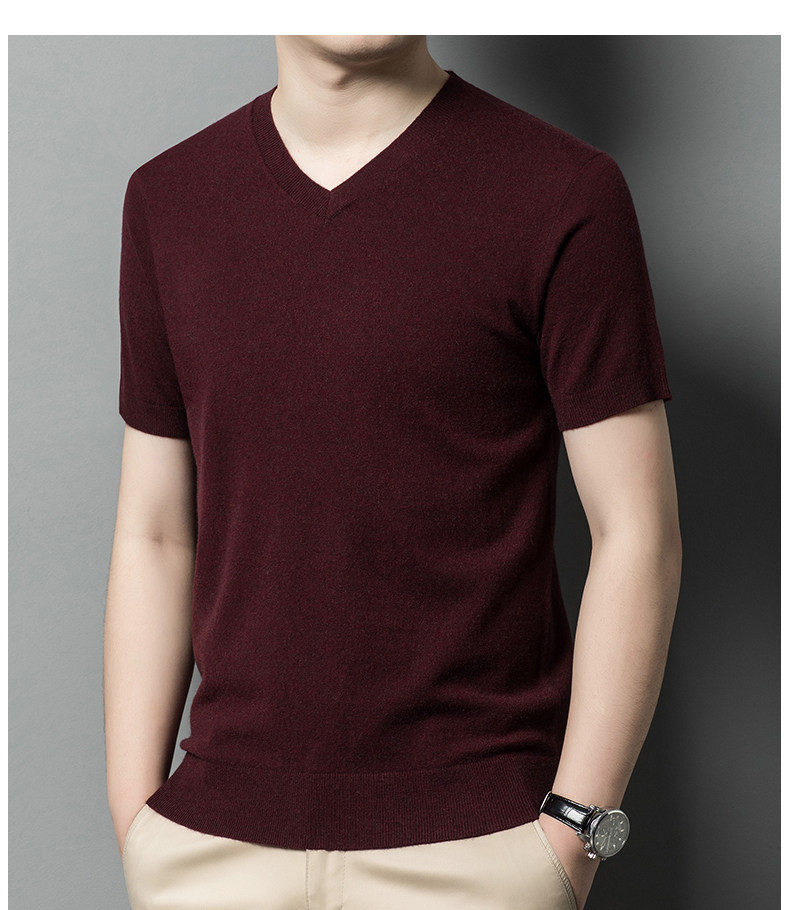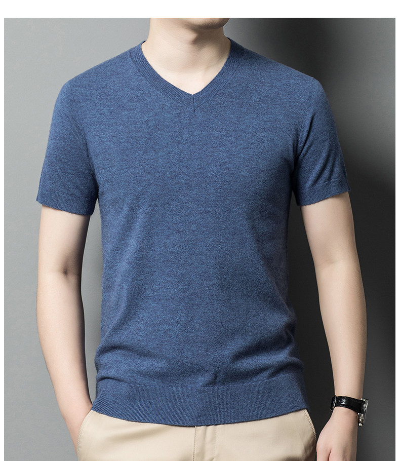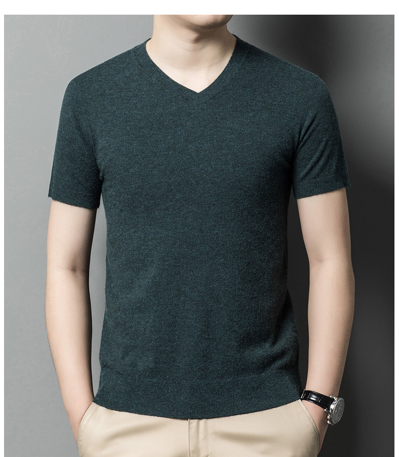 2025新款濮院羊毛衫男商务高端V领短袖毛衣男士半袖打底羊绒衫薄